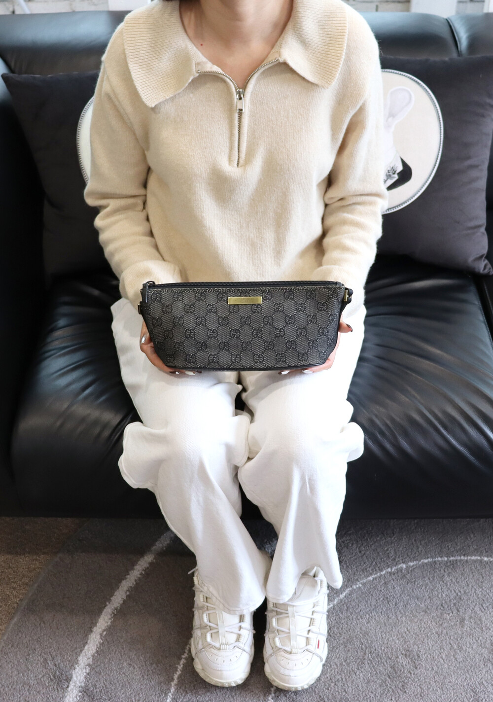 부드러운 구찌 시그니처 자가드 캔버스 바디와 중앙의