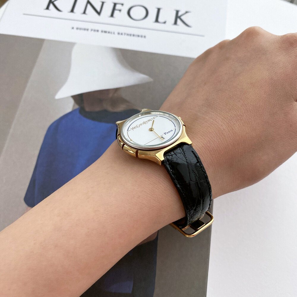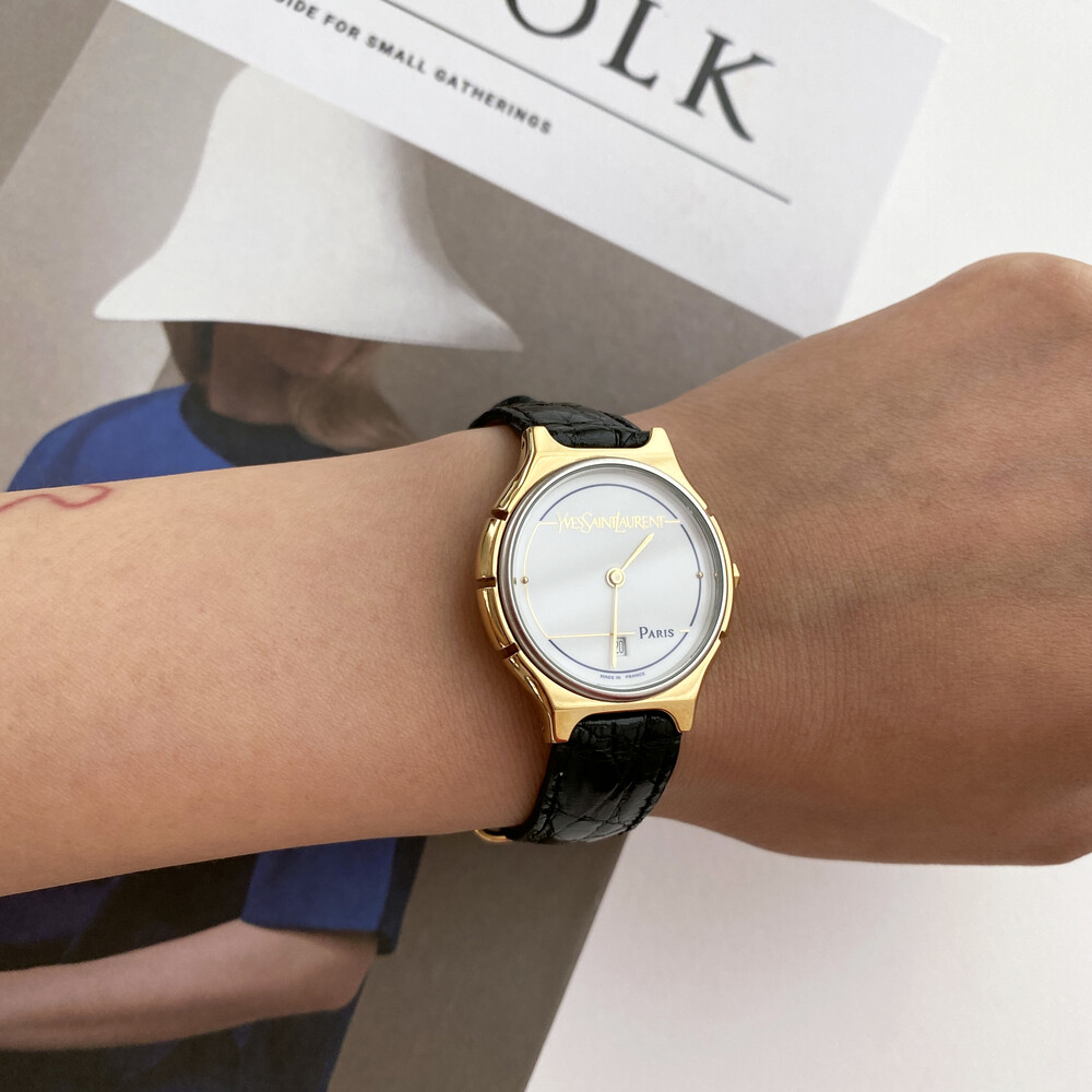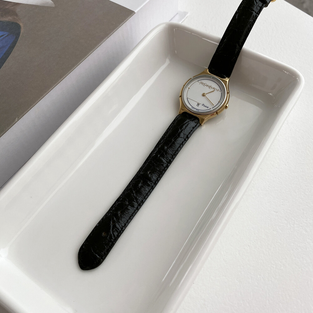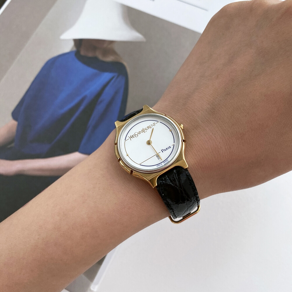 화이트 다이얼 위를 장식하는 입생로랑 로고가 매력적인 모델입니다.