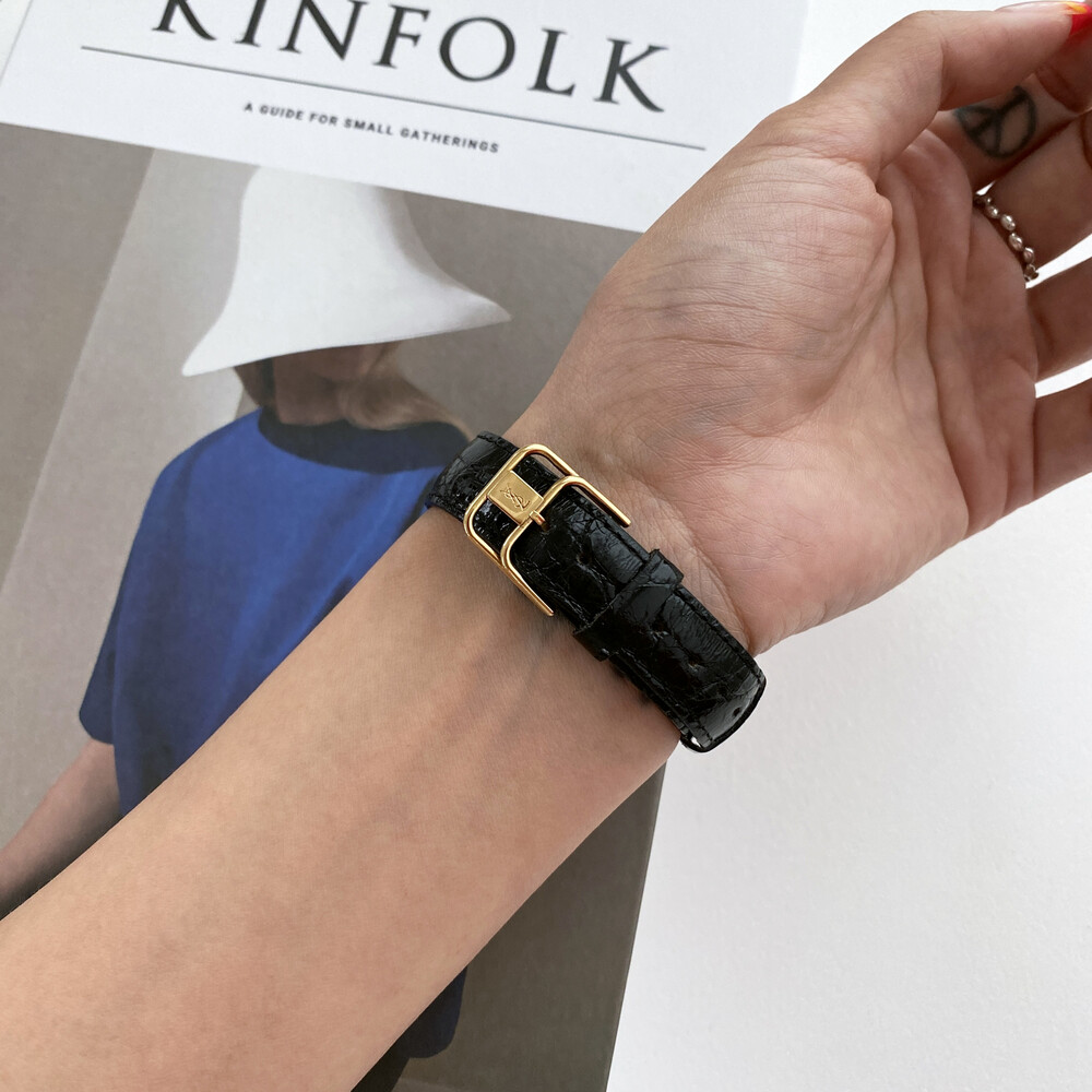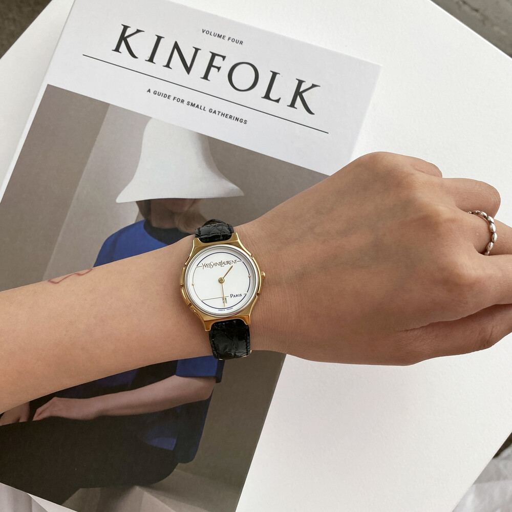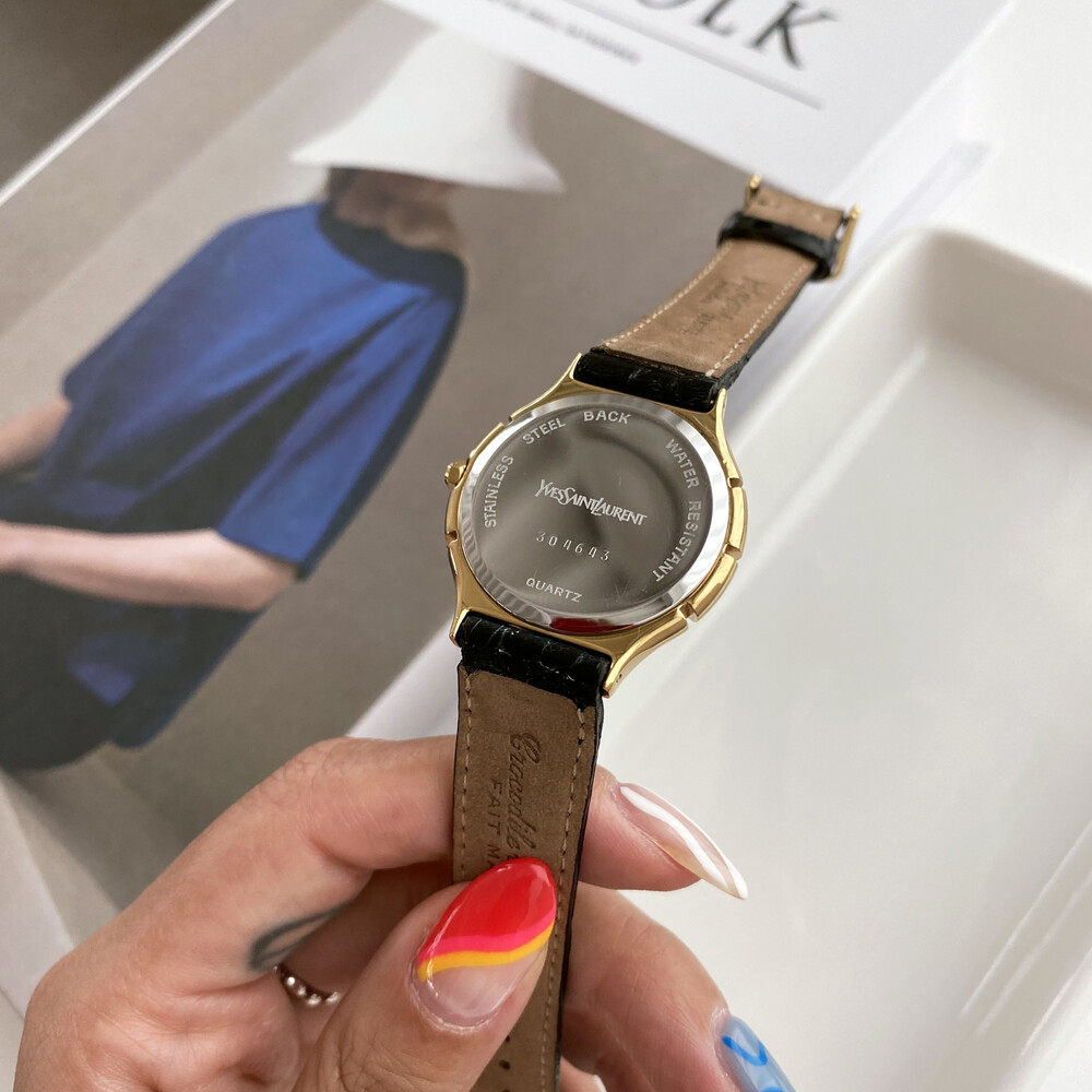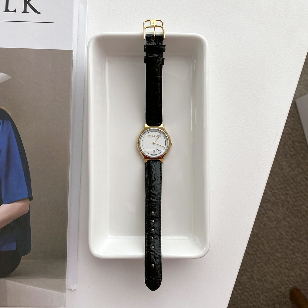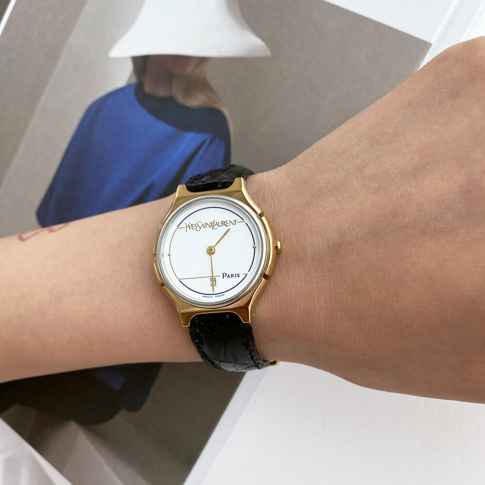 화이트 다이얼 위를 장식하는 입생로랑 로고가 매력적인 모델입니다.