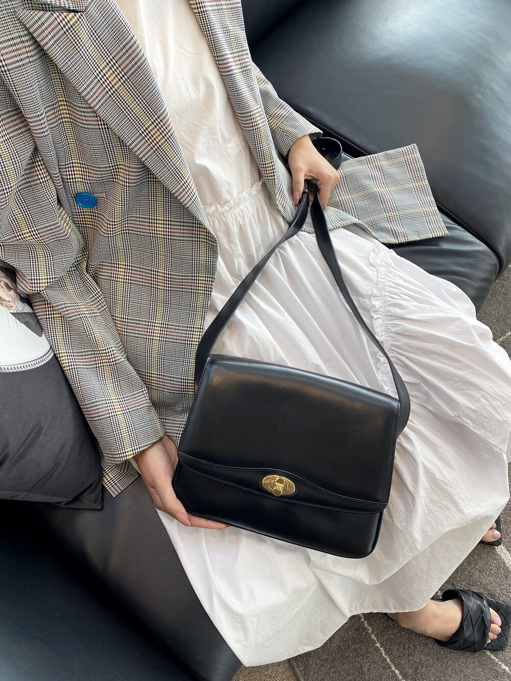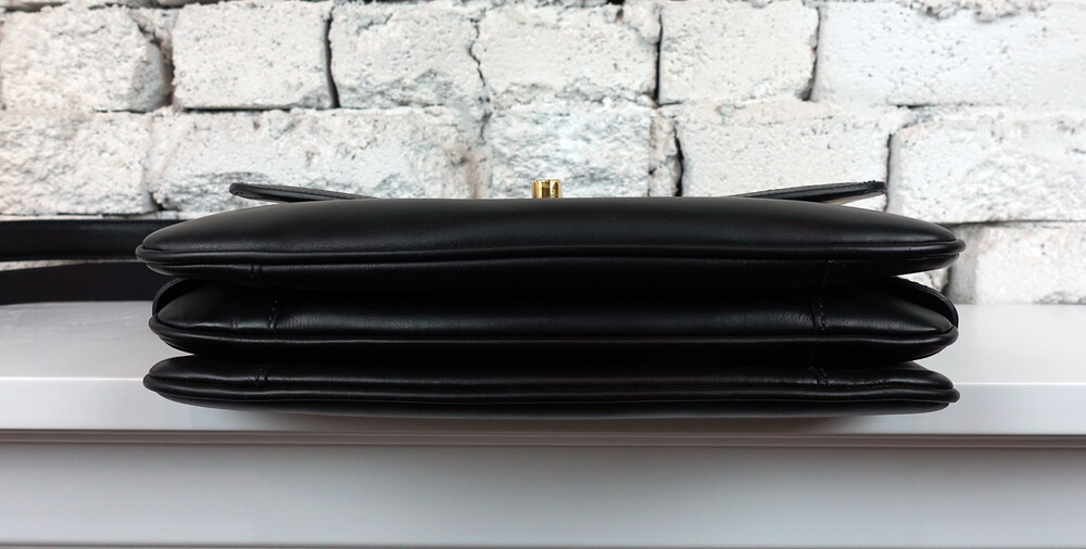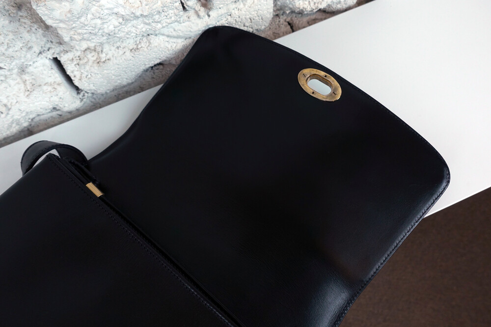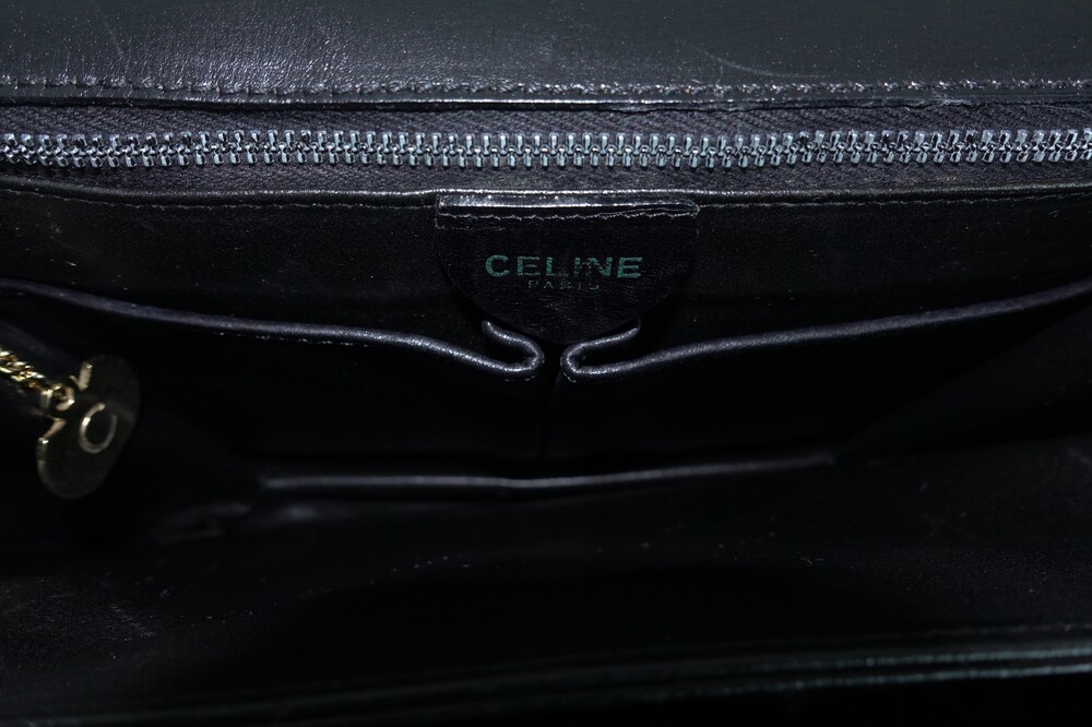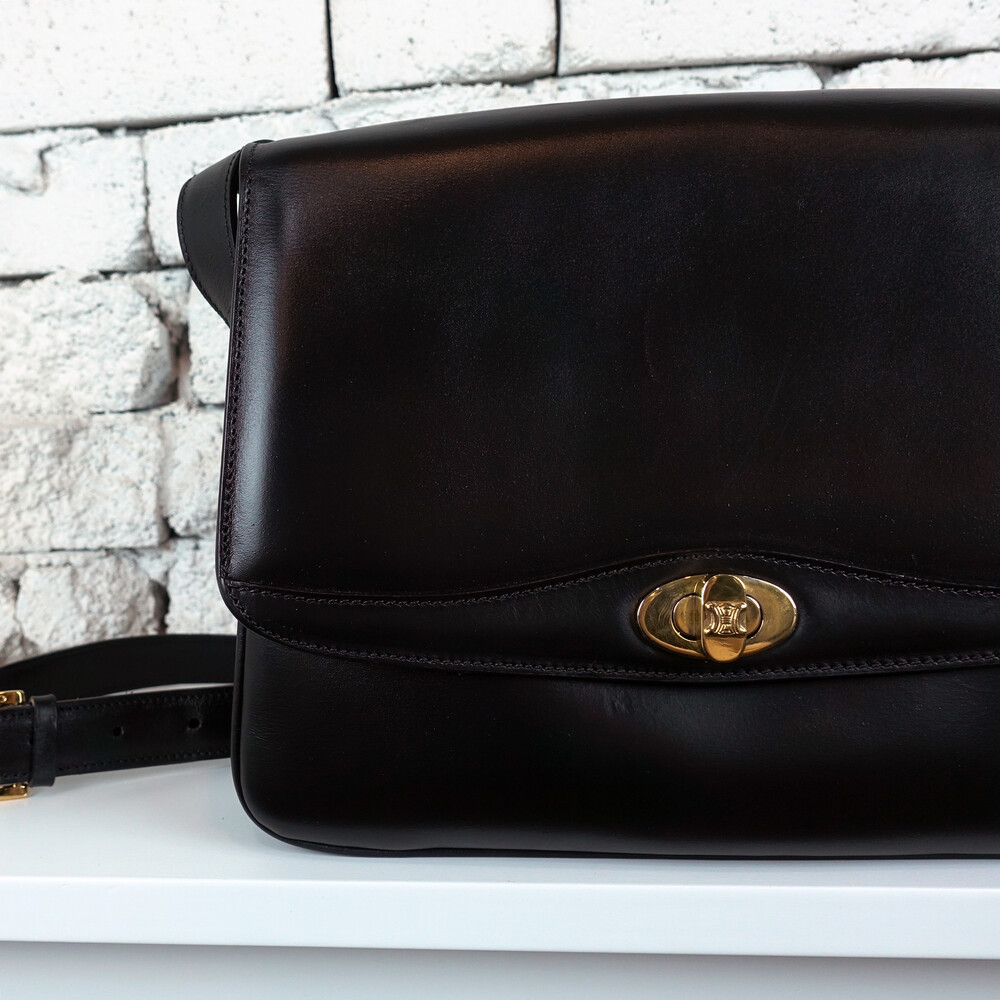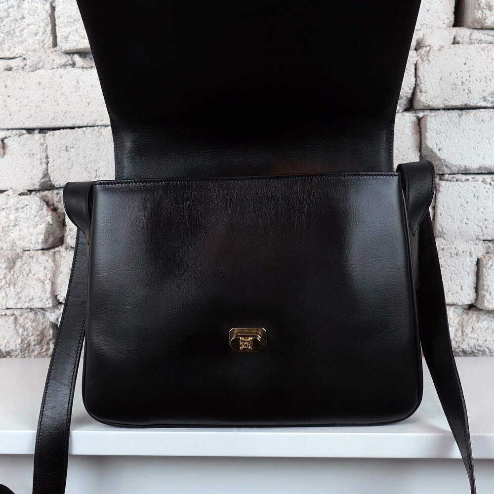 부드러운 블랙 가죽 바디와 중앙의 셀린느 트리오페 심볼이 매력적인 모델입니다.