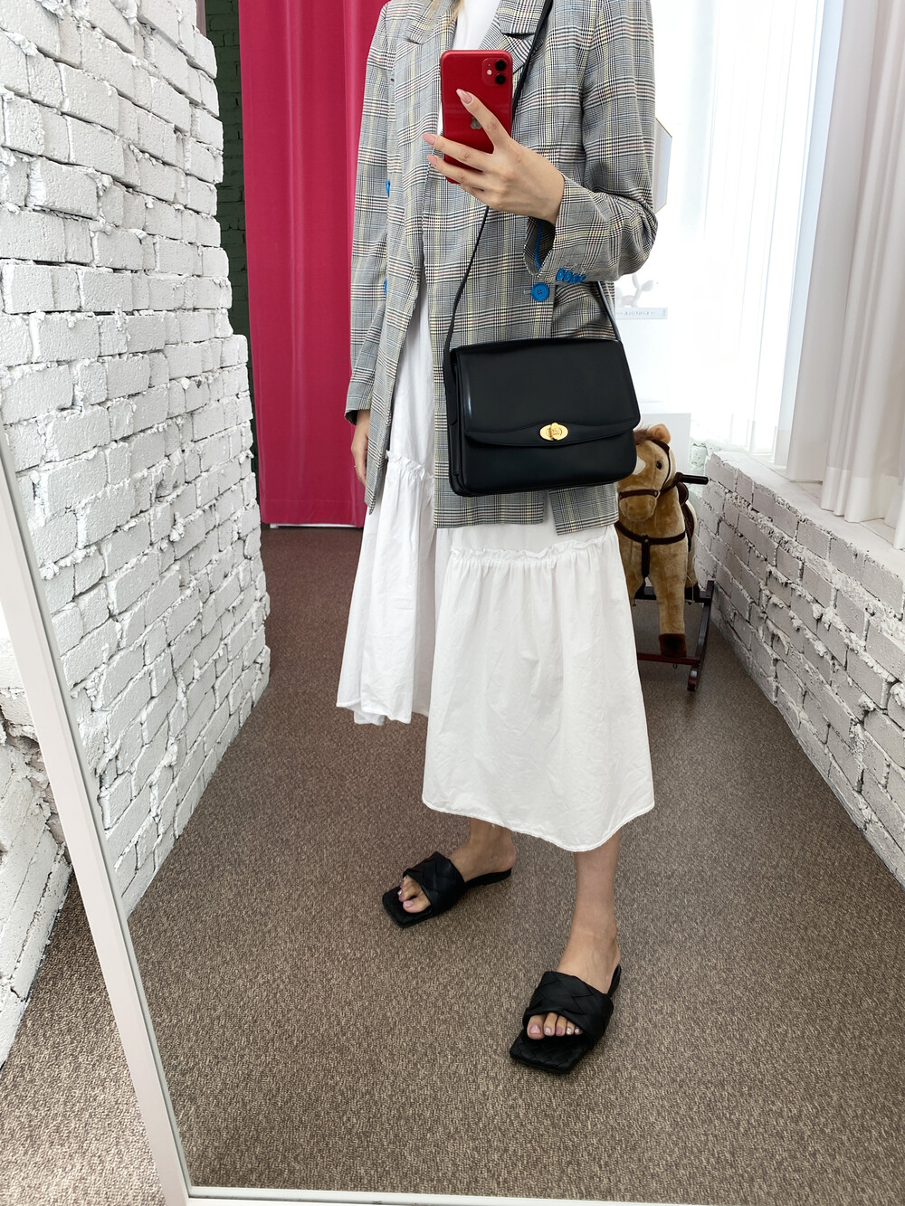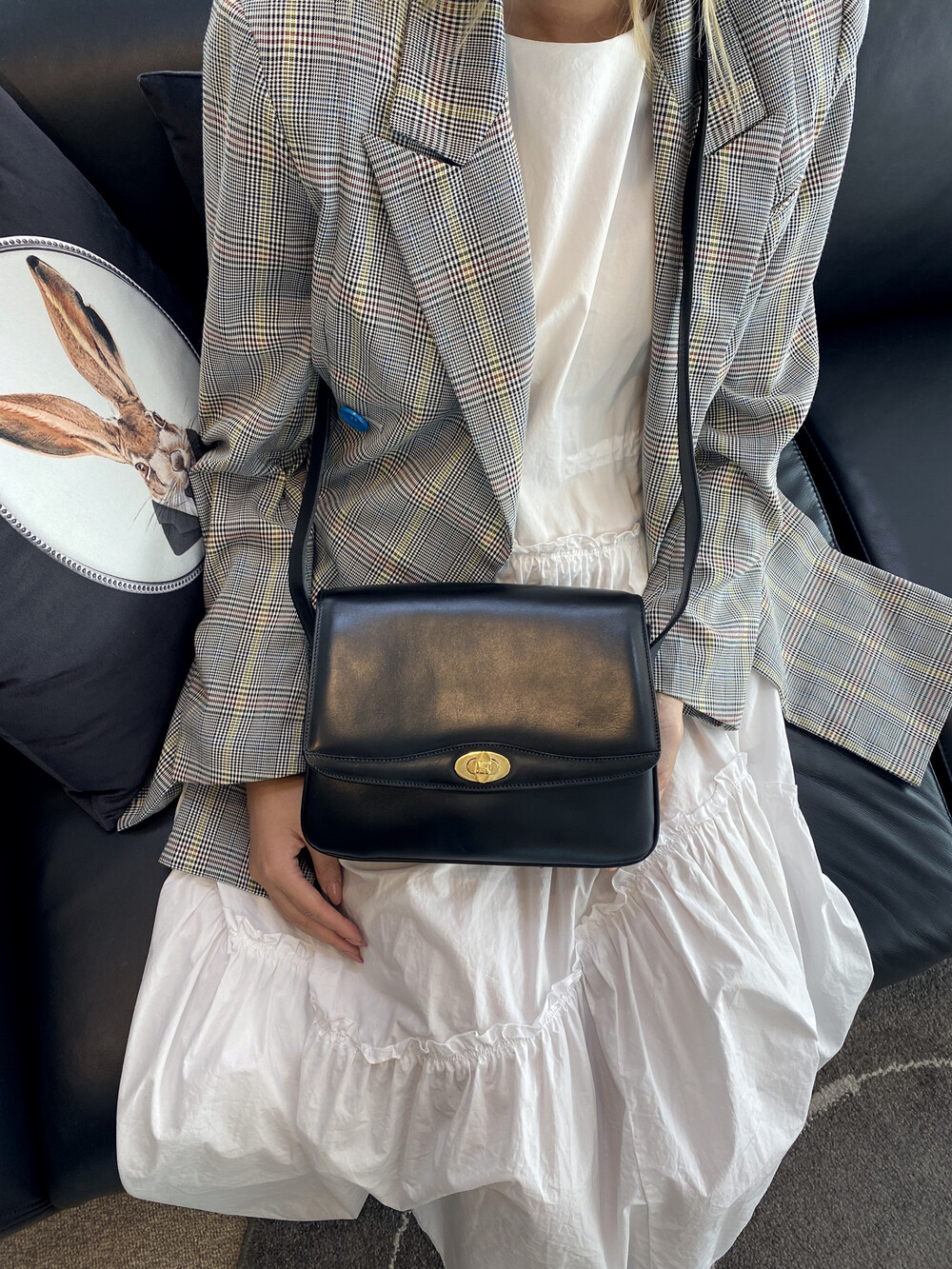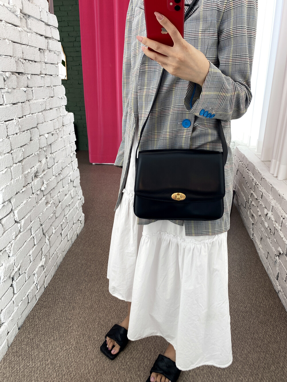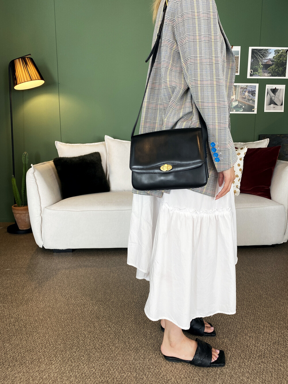 부드러운 블랙 가죽 바디와 중앙의 셀린느 트리오페 심볼이 매력적인 모델입니다.