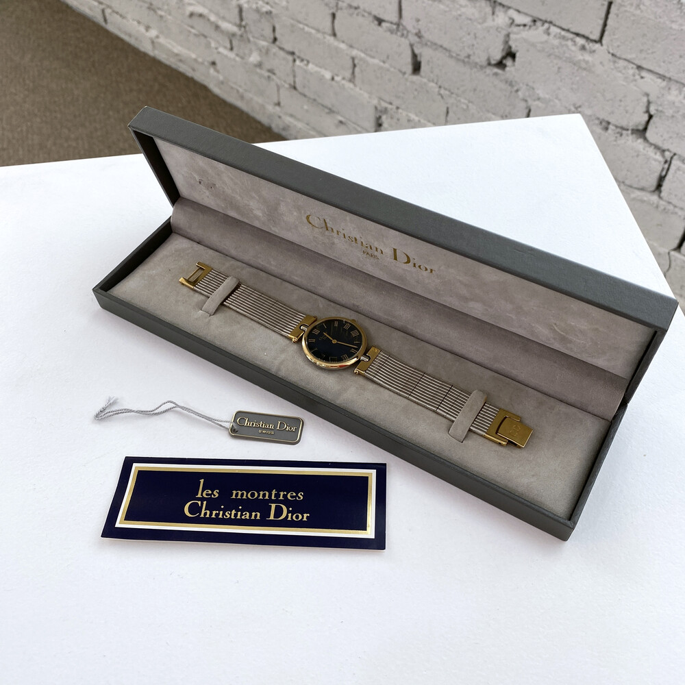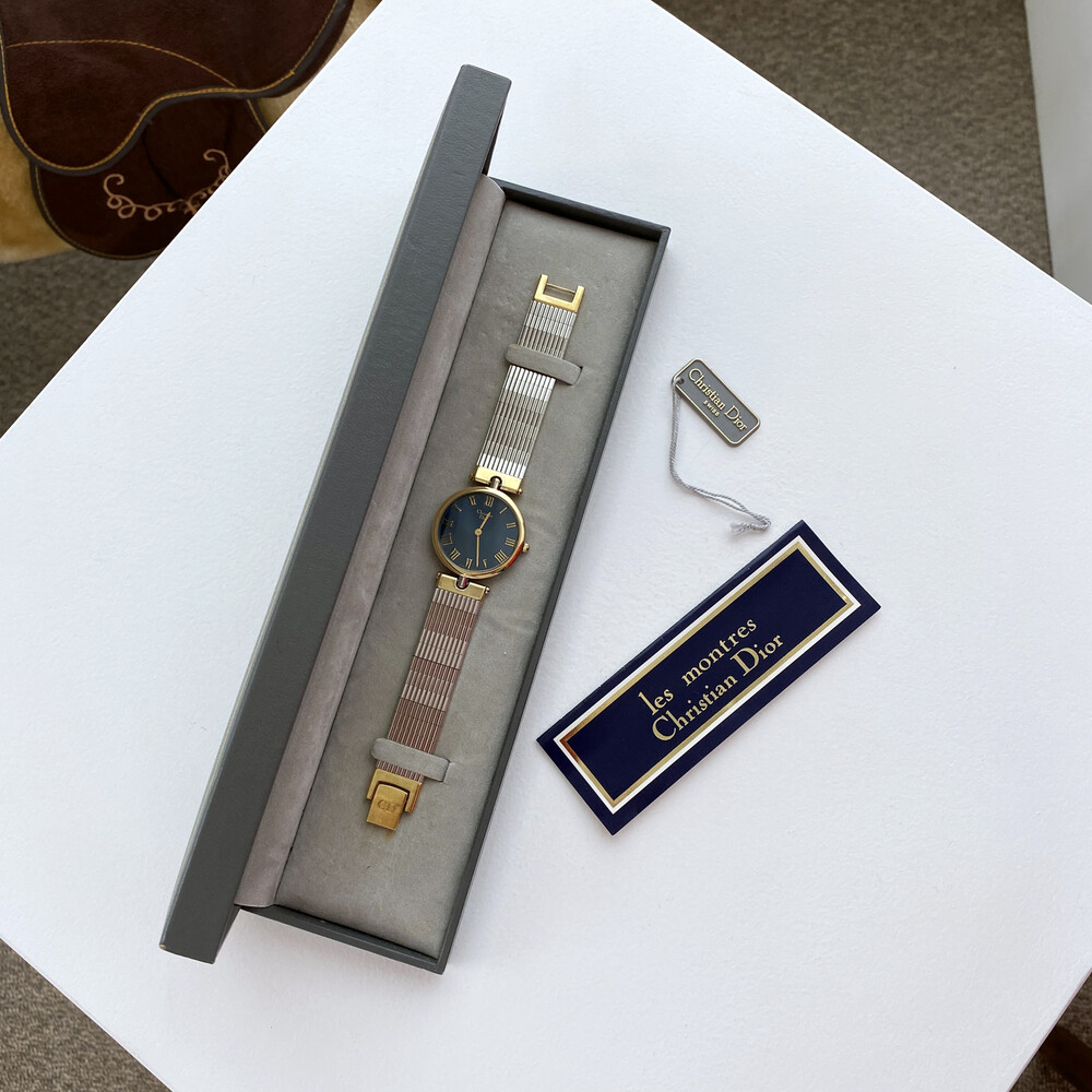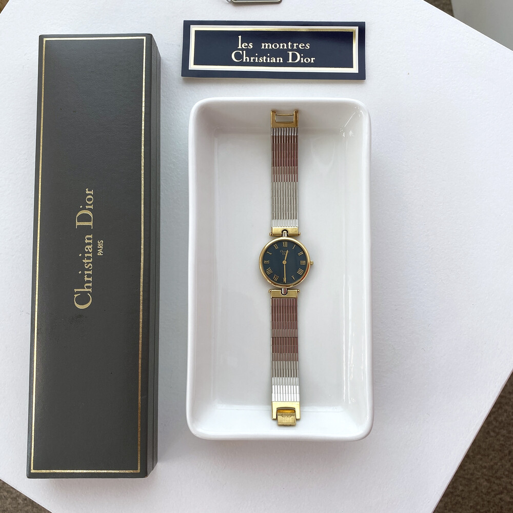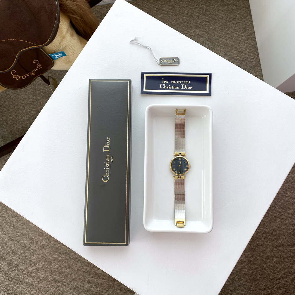 디올 시계 케이스, 라벨, 보증서가 포함된 제품입니다.