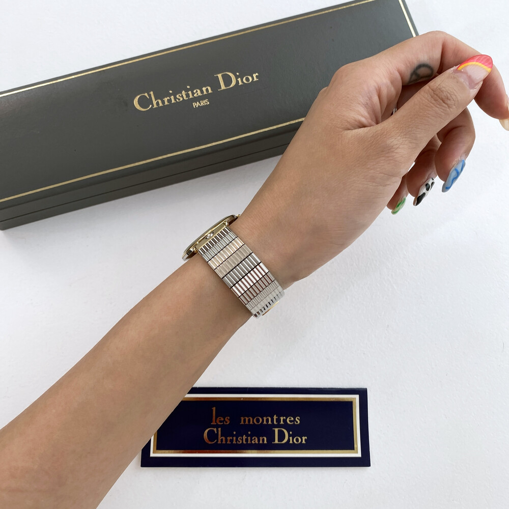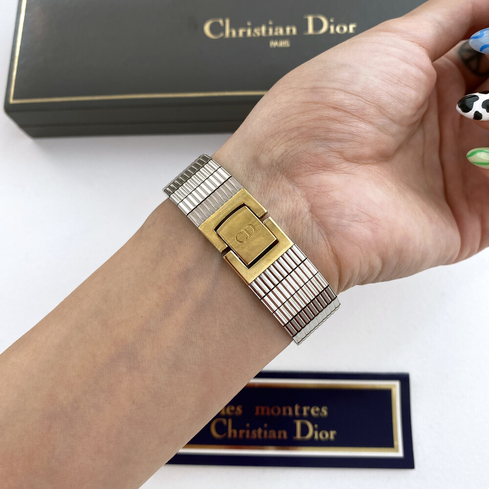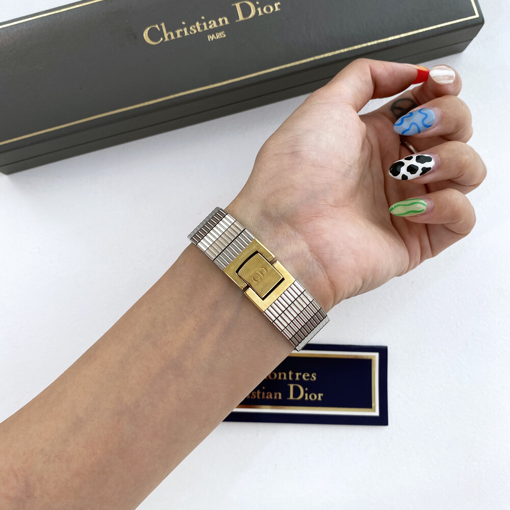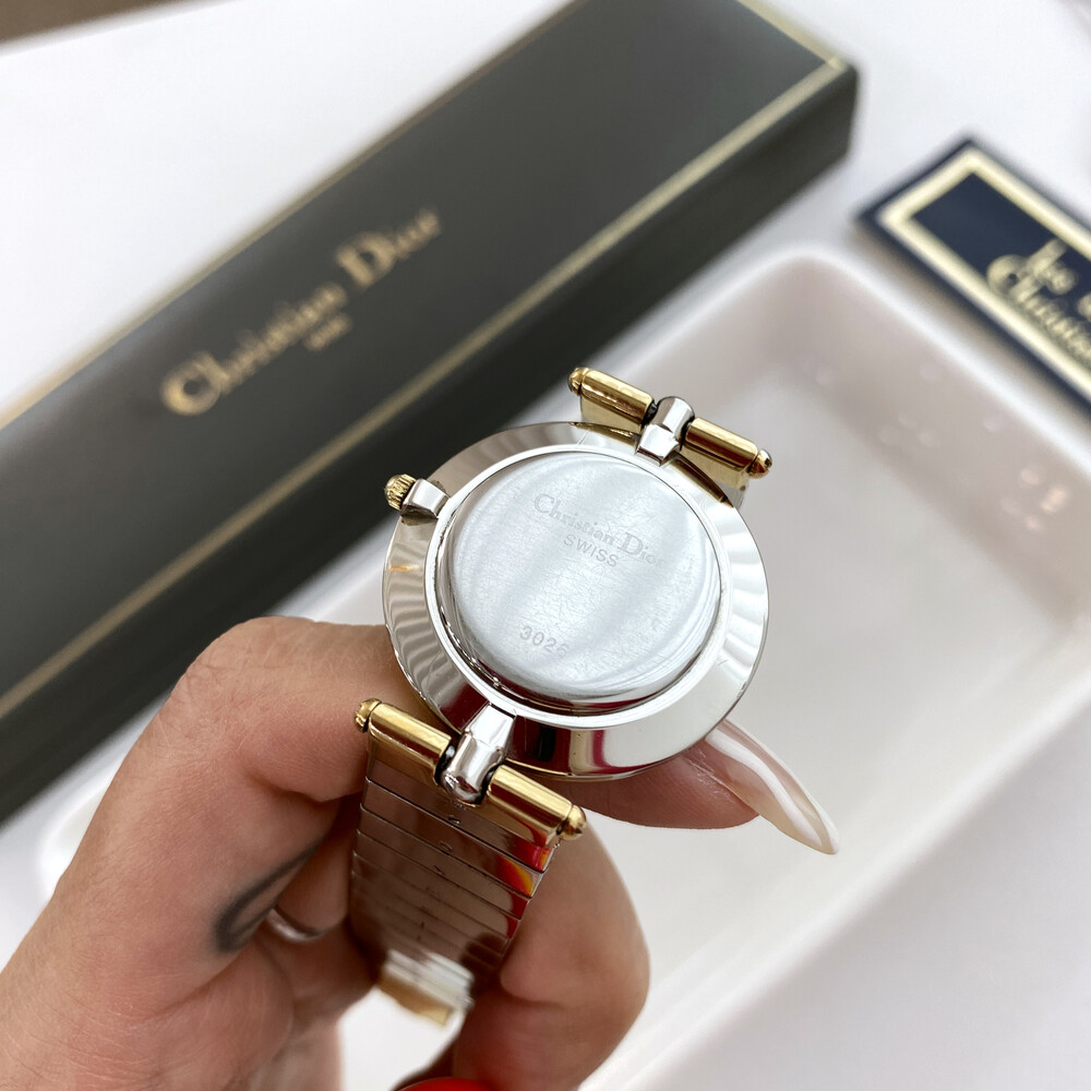 디올 시계 케이스, 라벨, 보증서가 포함된 제품입니다.