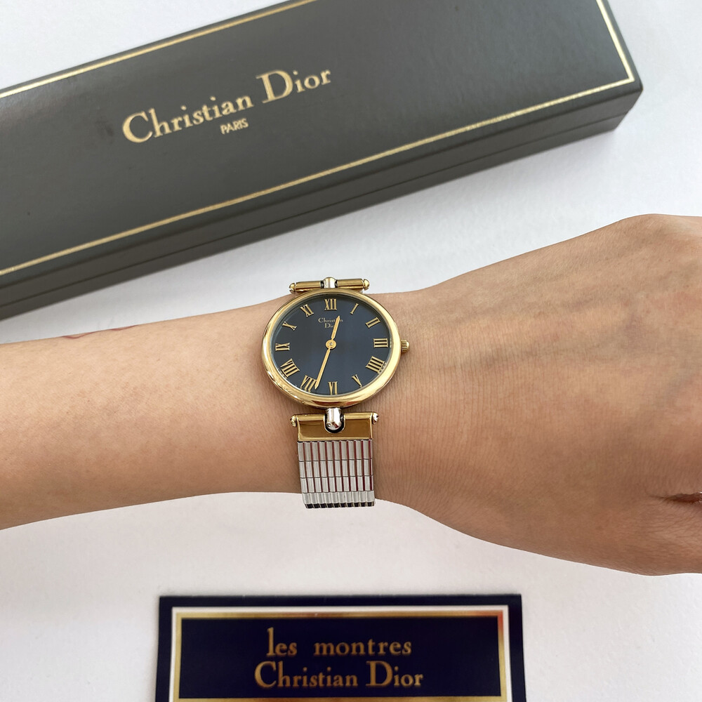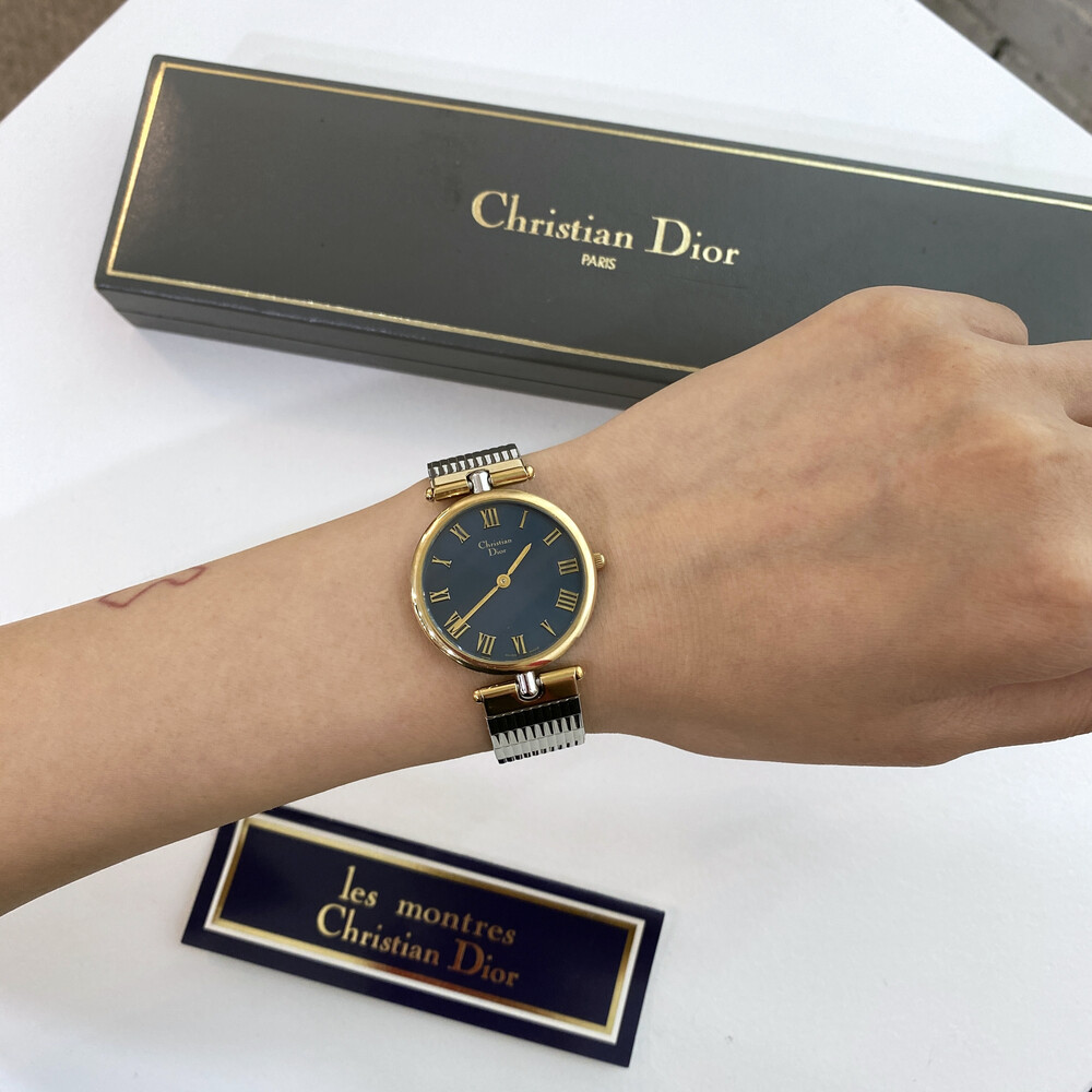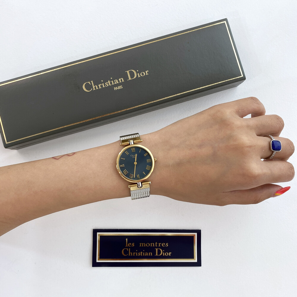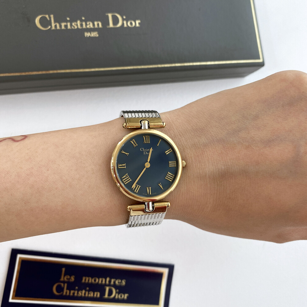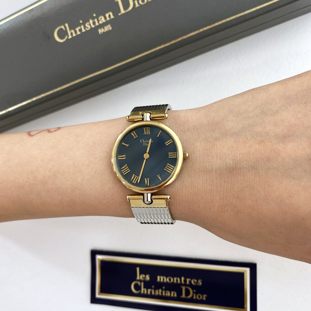 매력적인 블루 다이얼 위를 장식하는 로마 인덱스, 디올 로고가 매력적인 모델입니다.