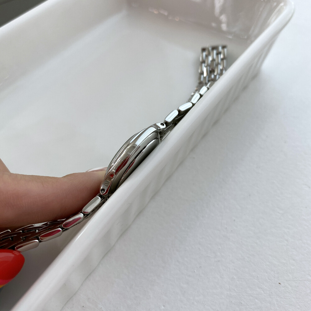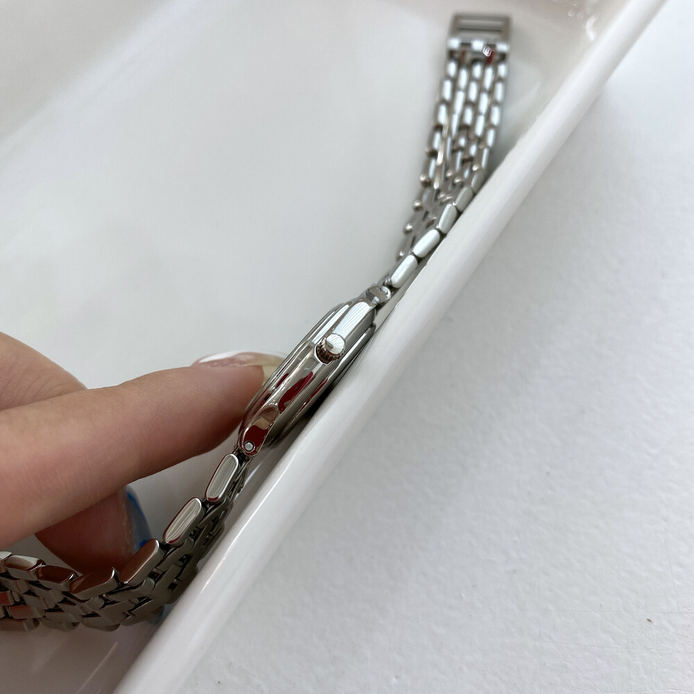 실버톤 케이스 와 다이얼 위를 장식하는 디올 로고가 매력적인 모델입니다.