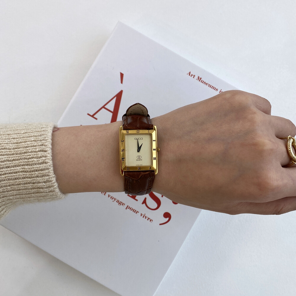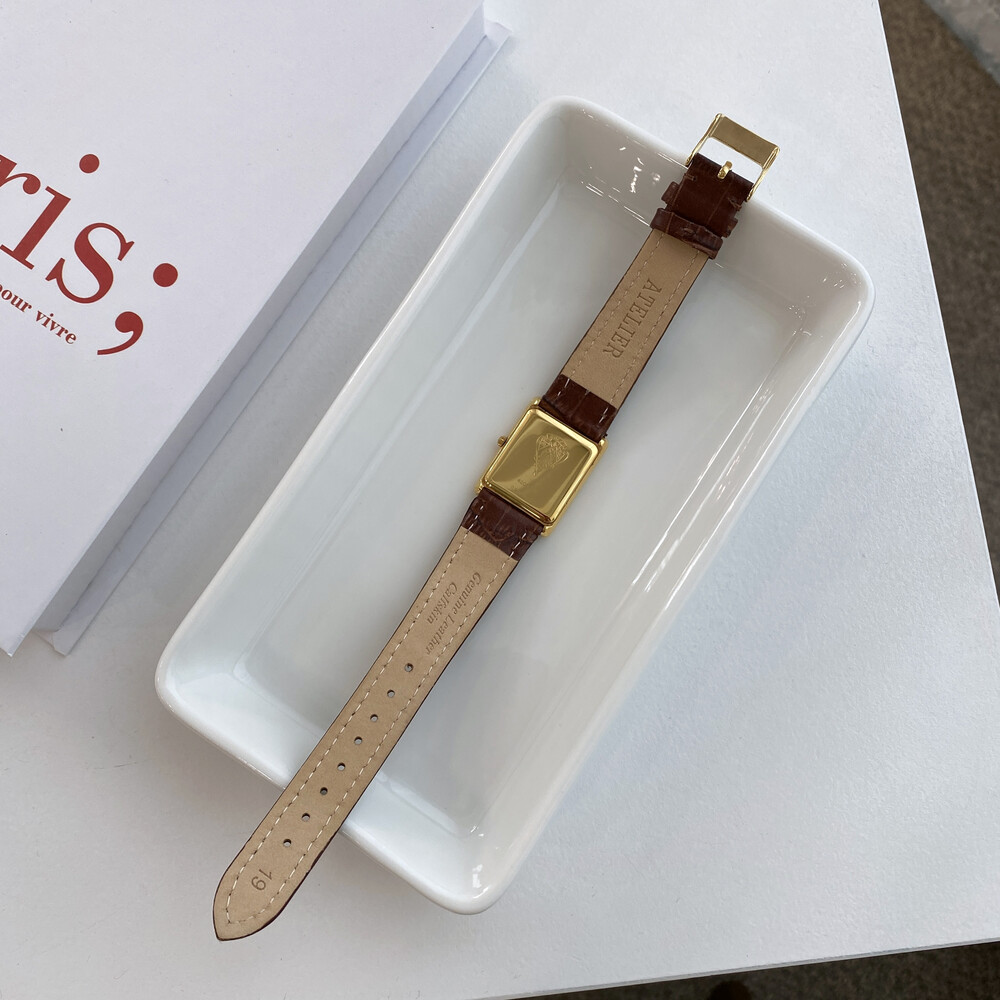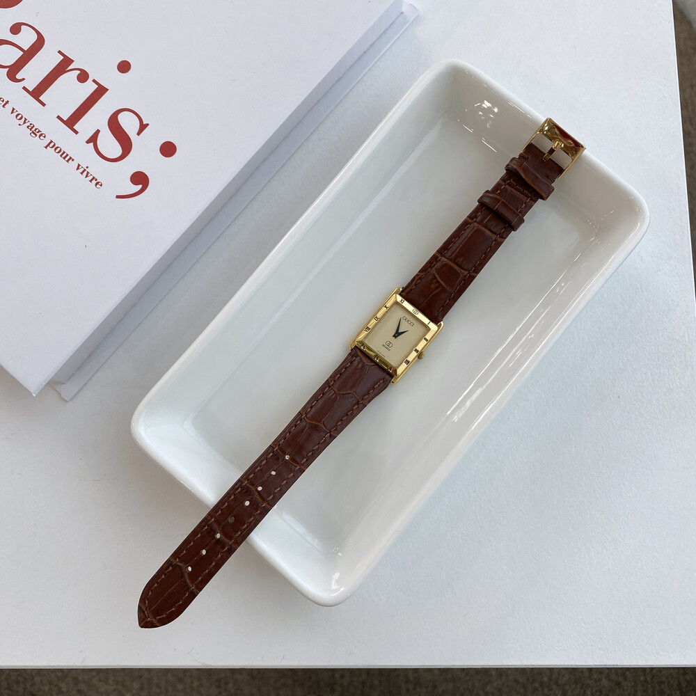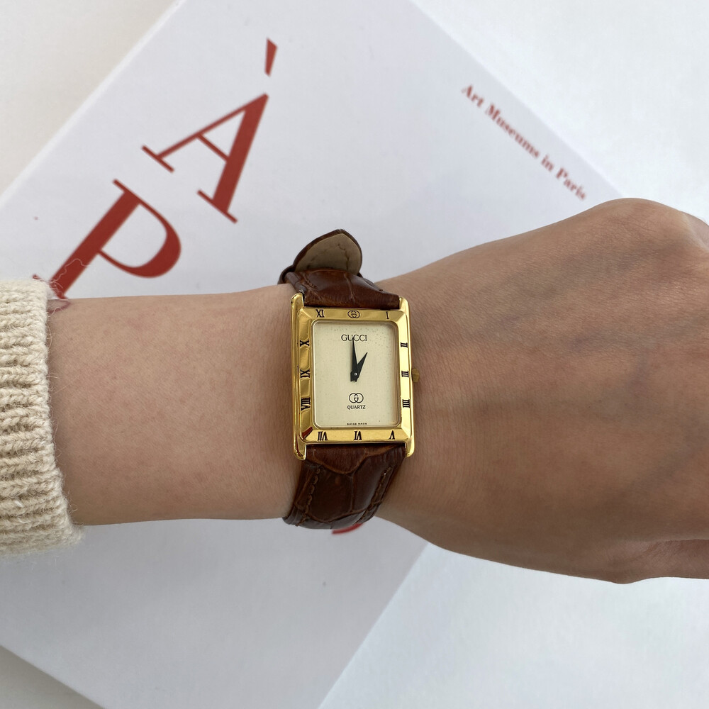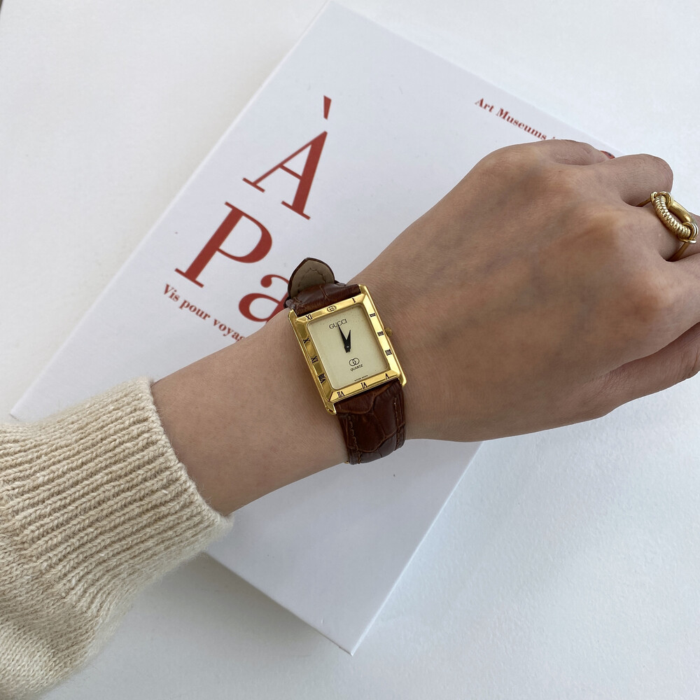 매력적인 스퀘어 케이스와 베젤 위를 장식하는 로마 숫자가 매력적인 모델입니다.