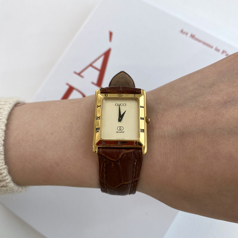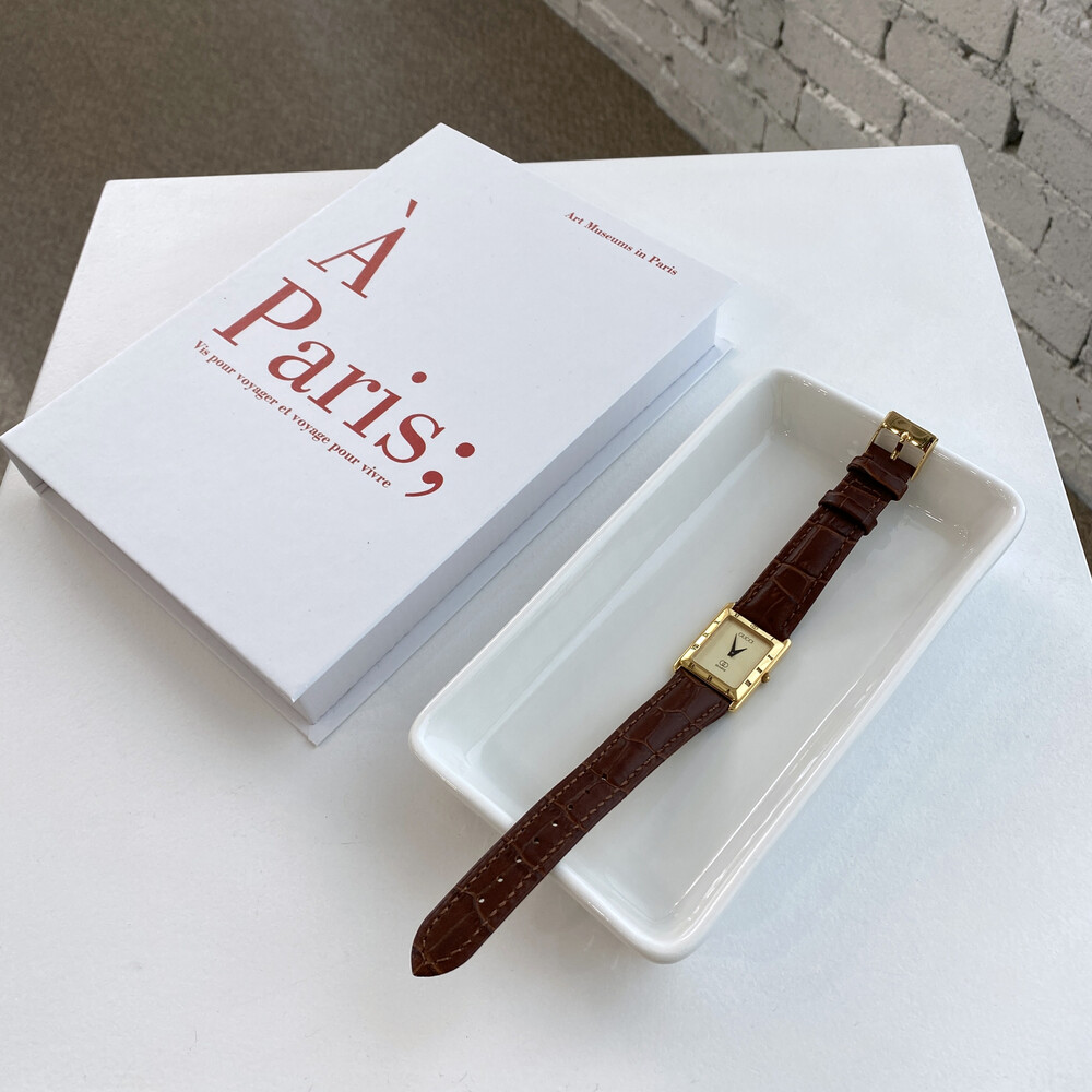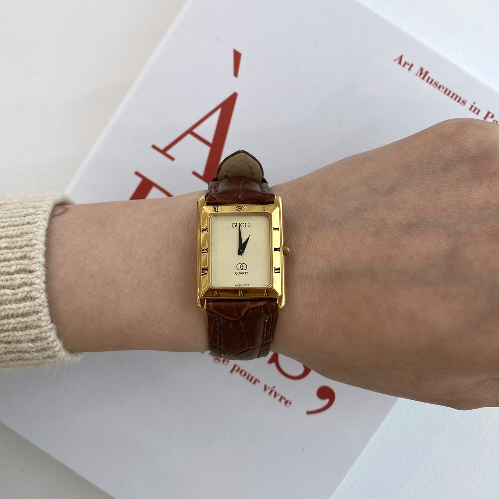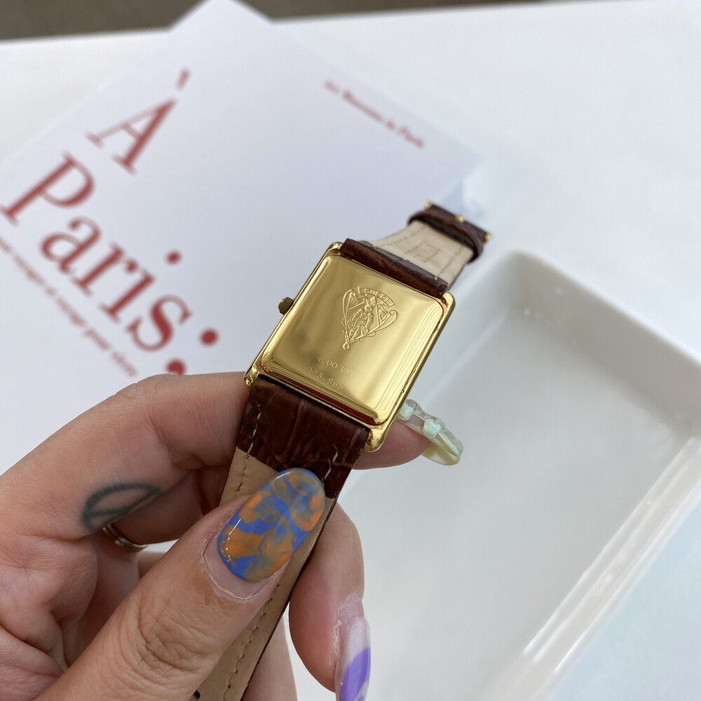 매력적인 스퀘어 케이스와 베젤 위를 장식하는 로마 숫자가 매력적인 모델입니다.