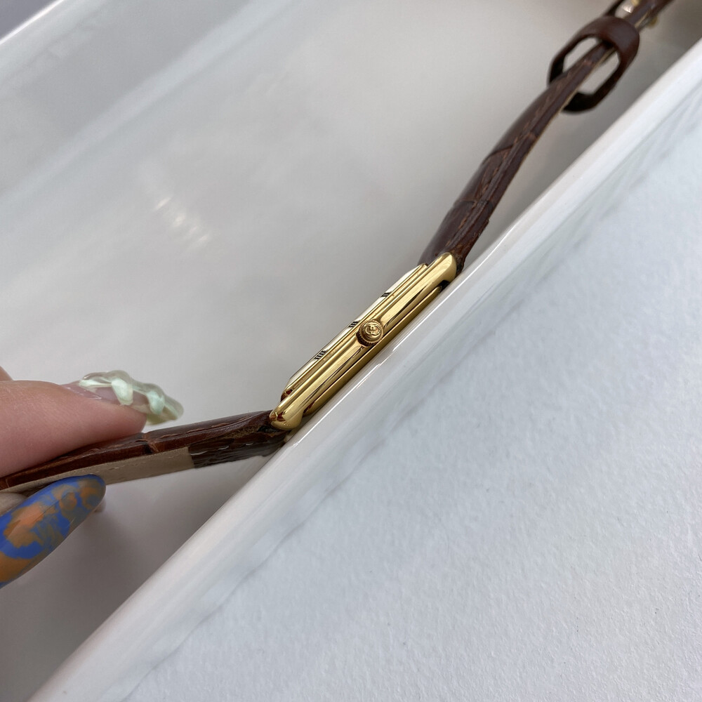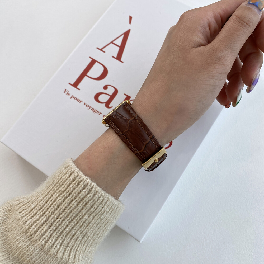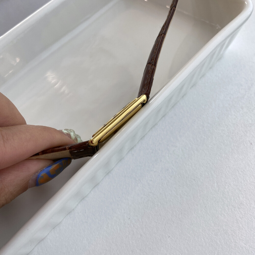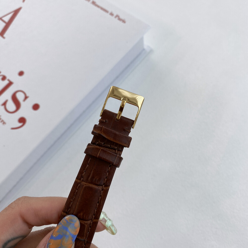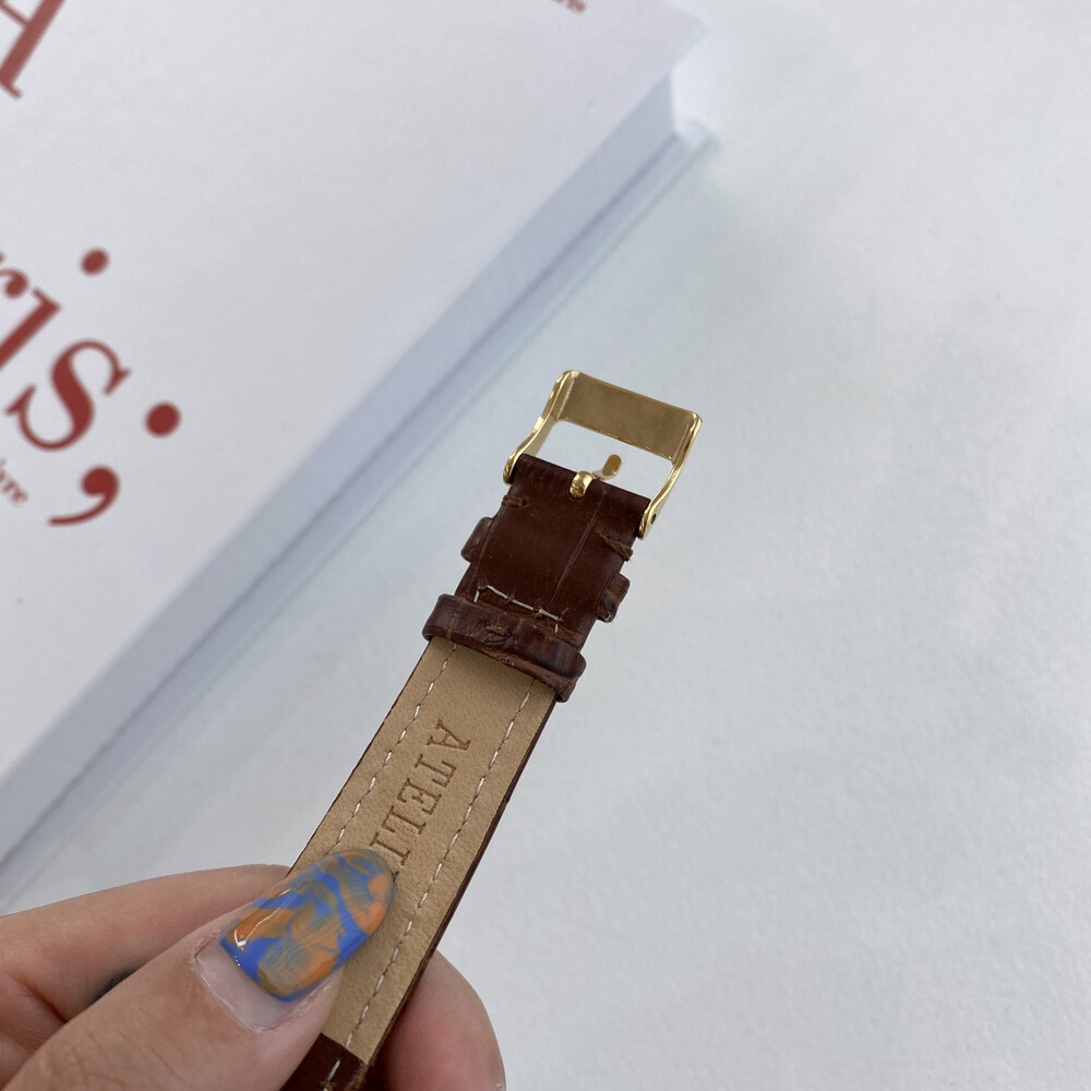 매력적인 스퀘어 케이스와 베젤 위를 장식하는 로마 숫자가 매력적인 모델입니다.