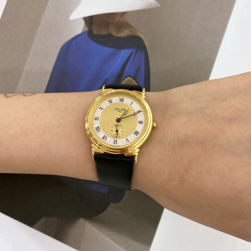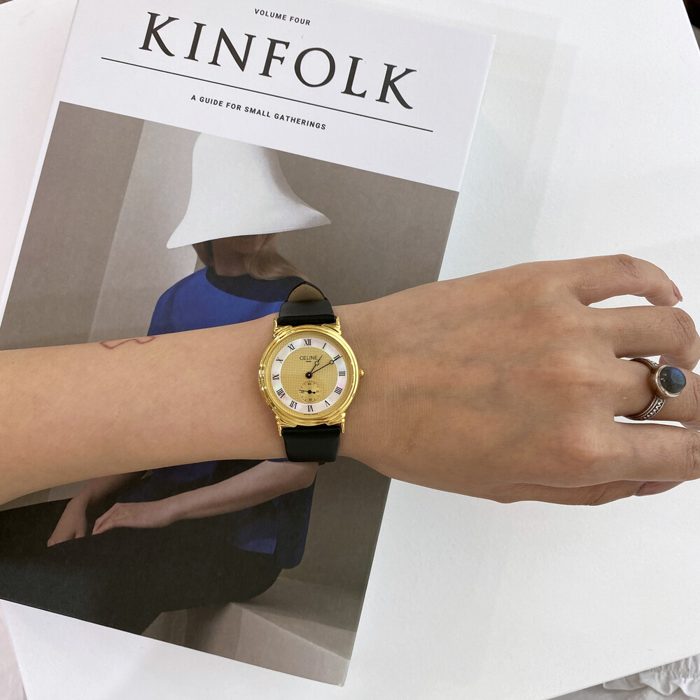 스위스에서 생산된 쿼츠 무브먼트로 제작된 빈티지 셀린느 시계입니다.