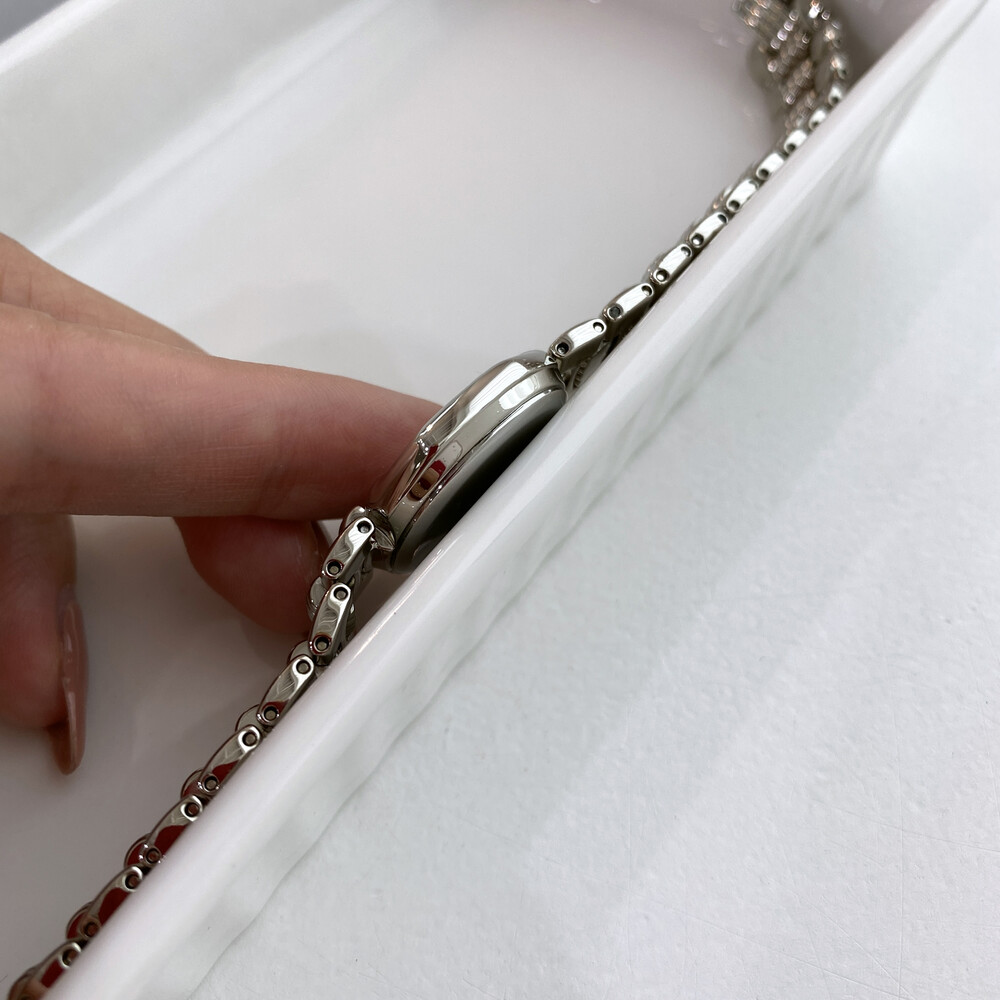 옥타곤 타입의 실버 케이스와 투톤 다이얼 위의 로마 인덱스, 디올 CD 로고가