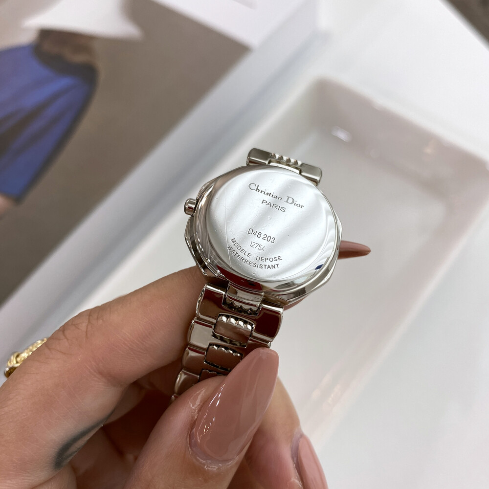 여성용으로 제작된 빈티지 디올 시계이며 스위스에서 생산된 쿼츠 무브먼트로 제작되었습니다.