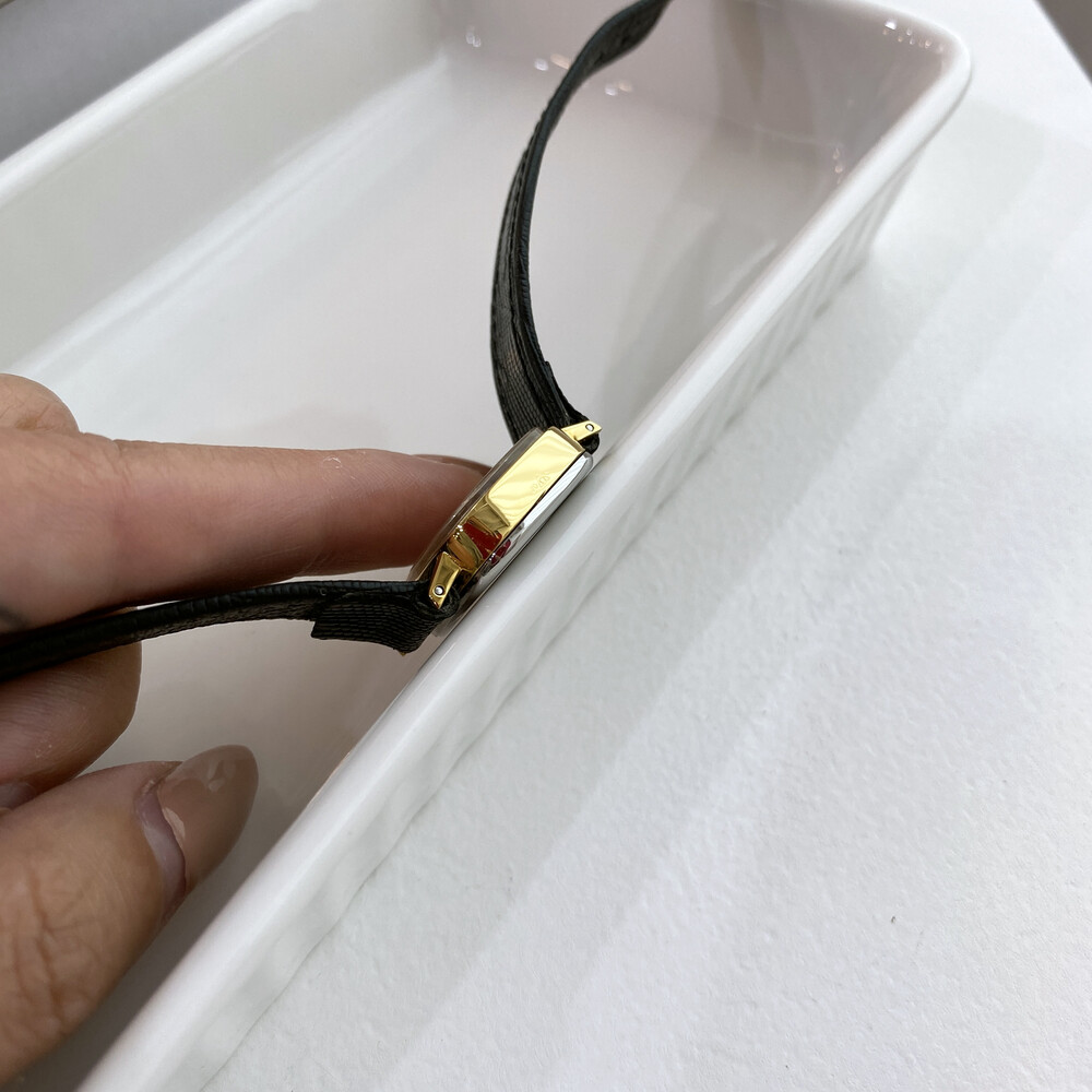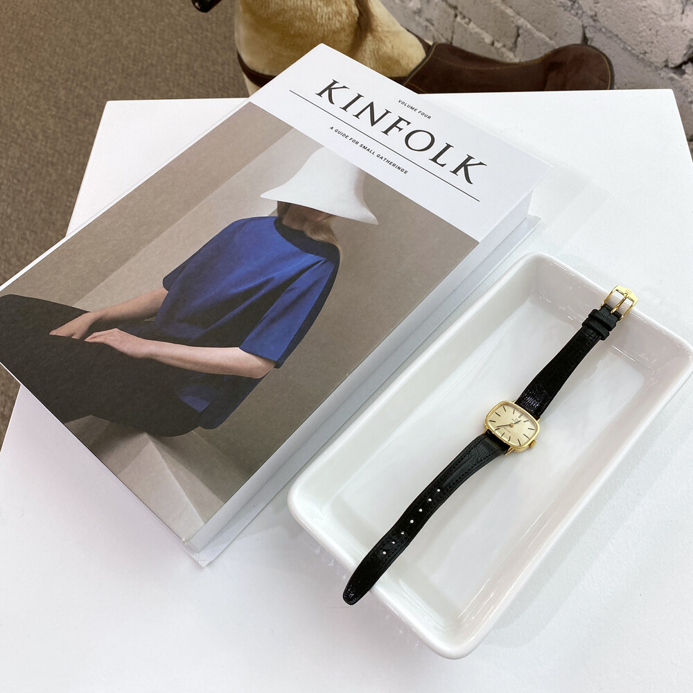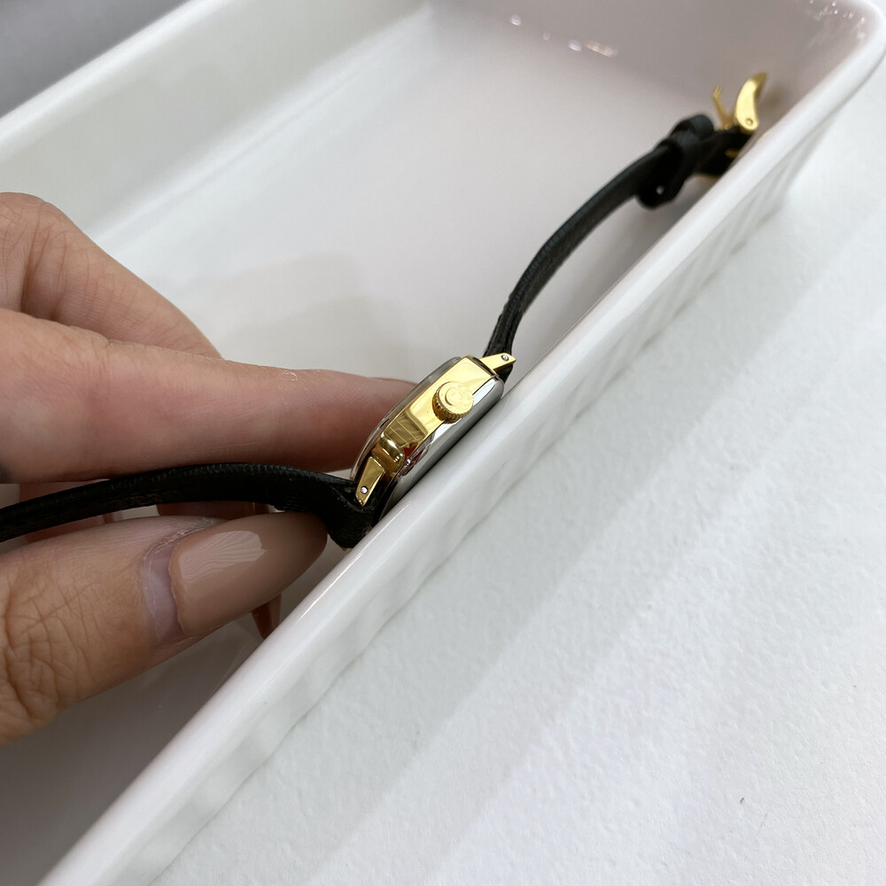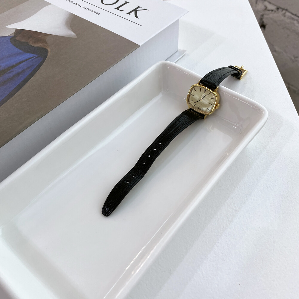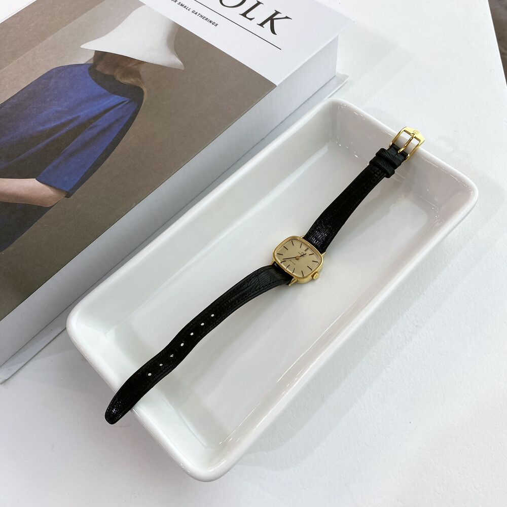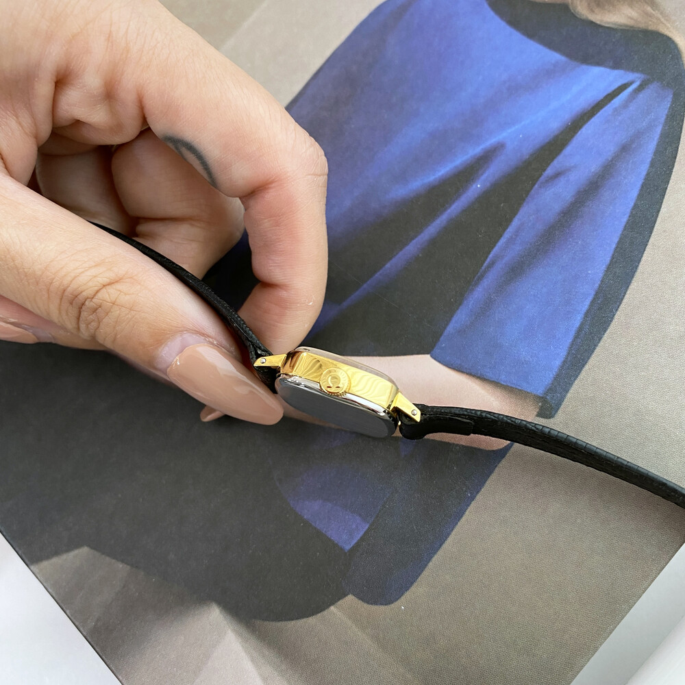 골드 톤 스퀘어 타입의 바디와 볼록한 돔 형태의 운모 글라스,