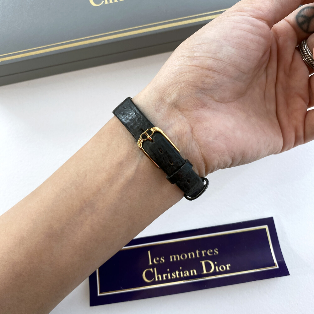 여성용으로 제작된 디올 시계이며 스위스 쿼츠 무브먼트로 제작되었습니다.
