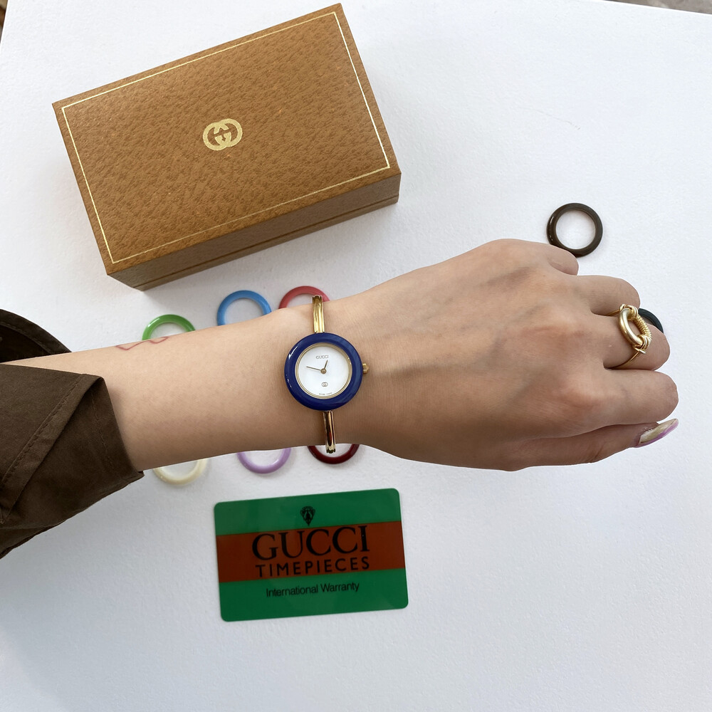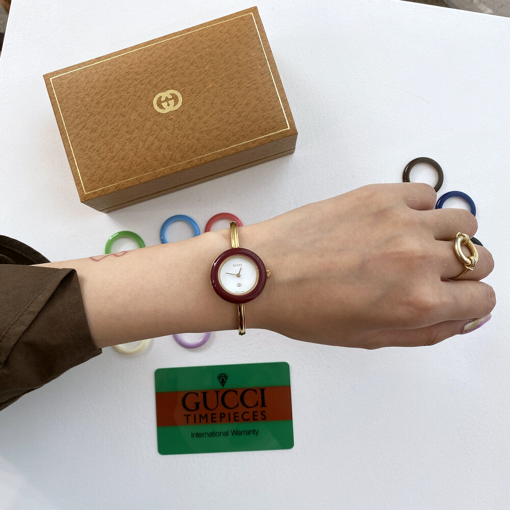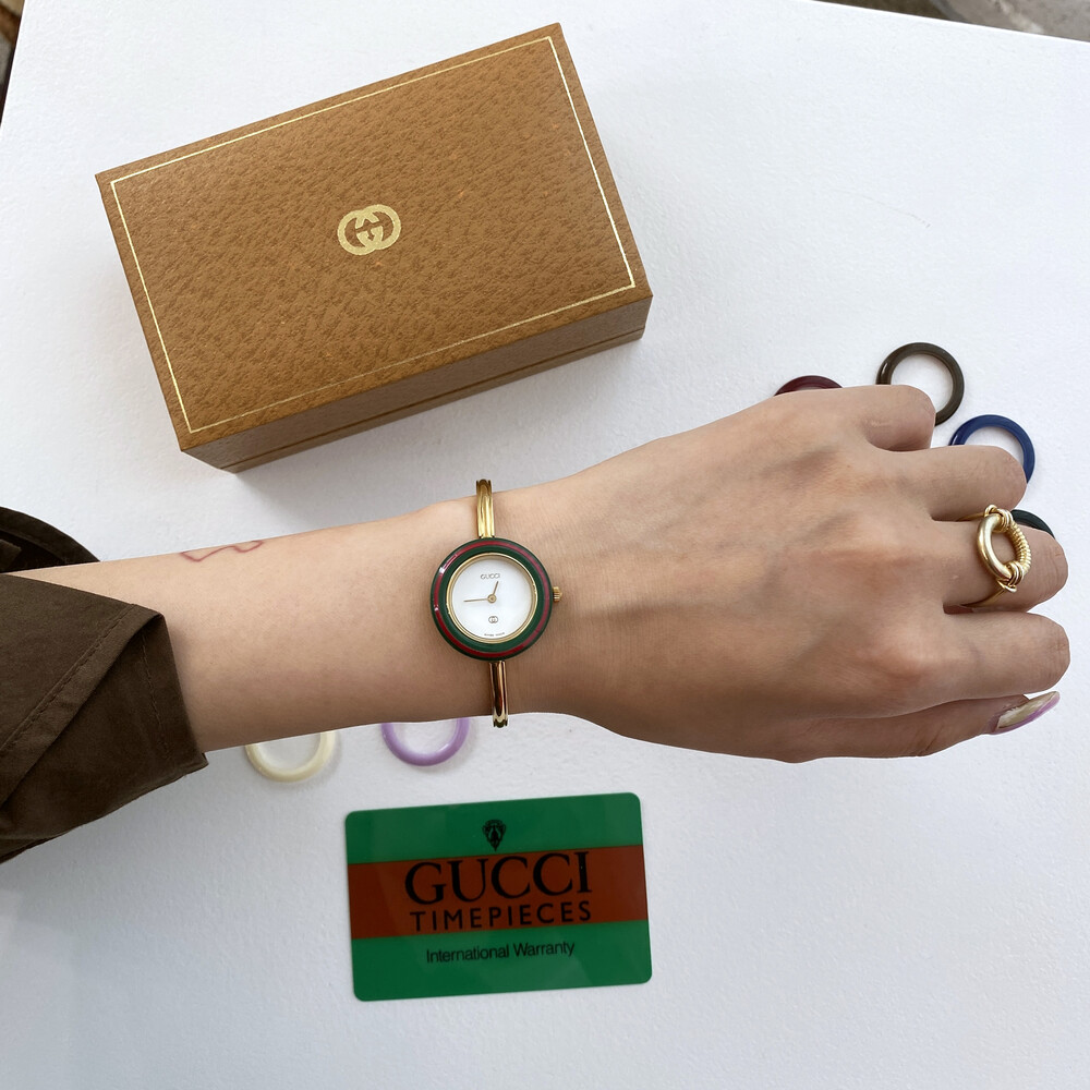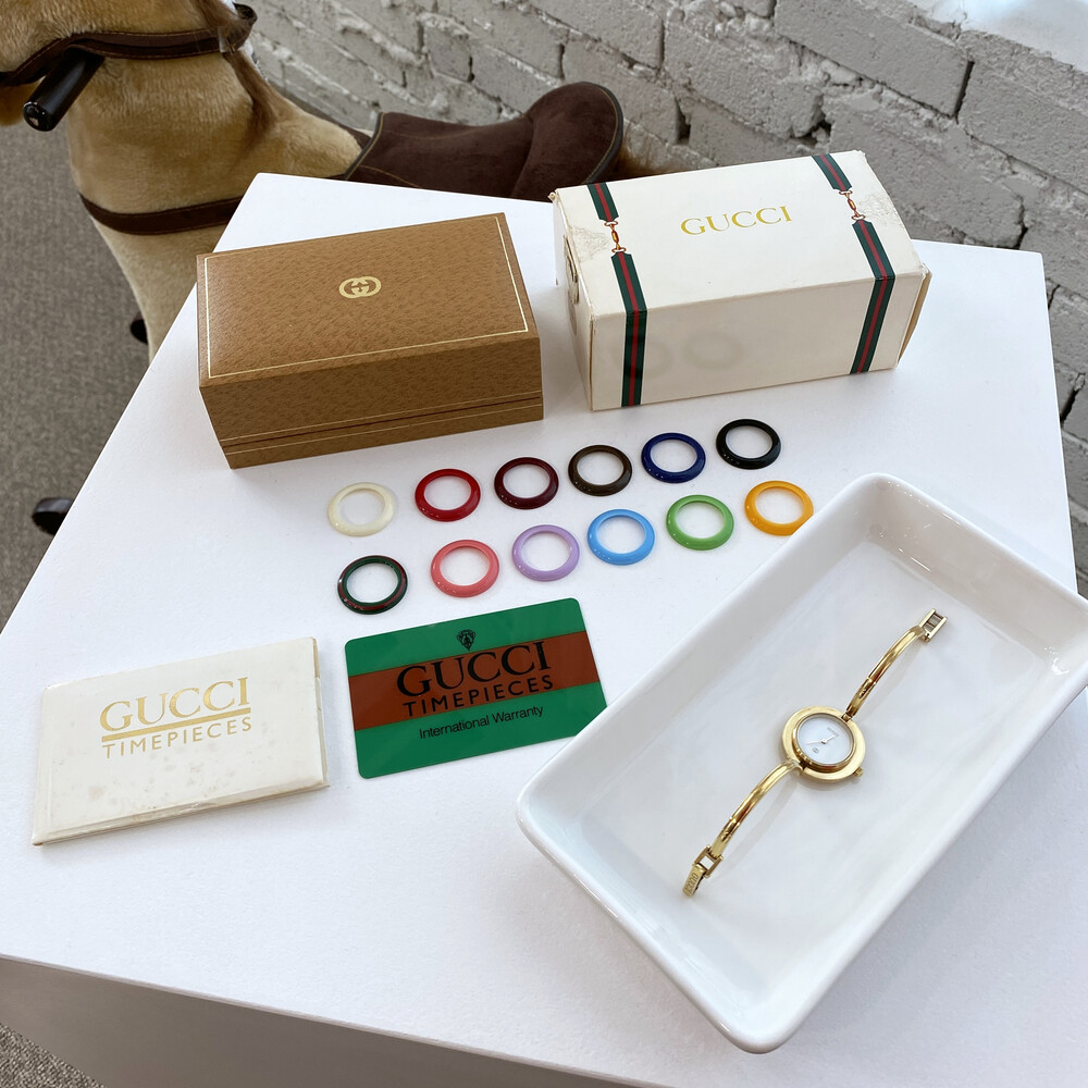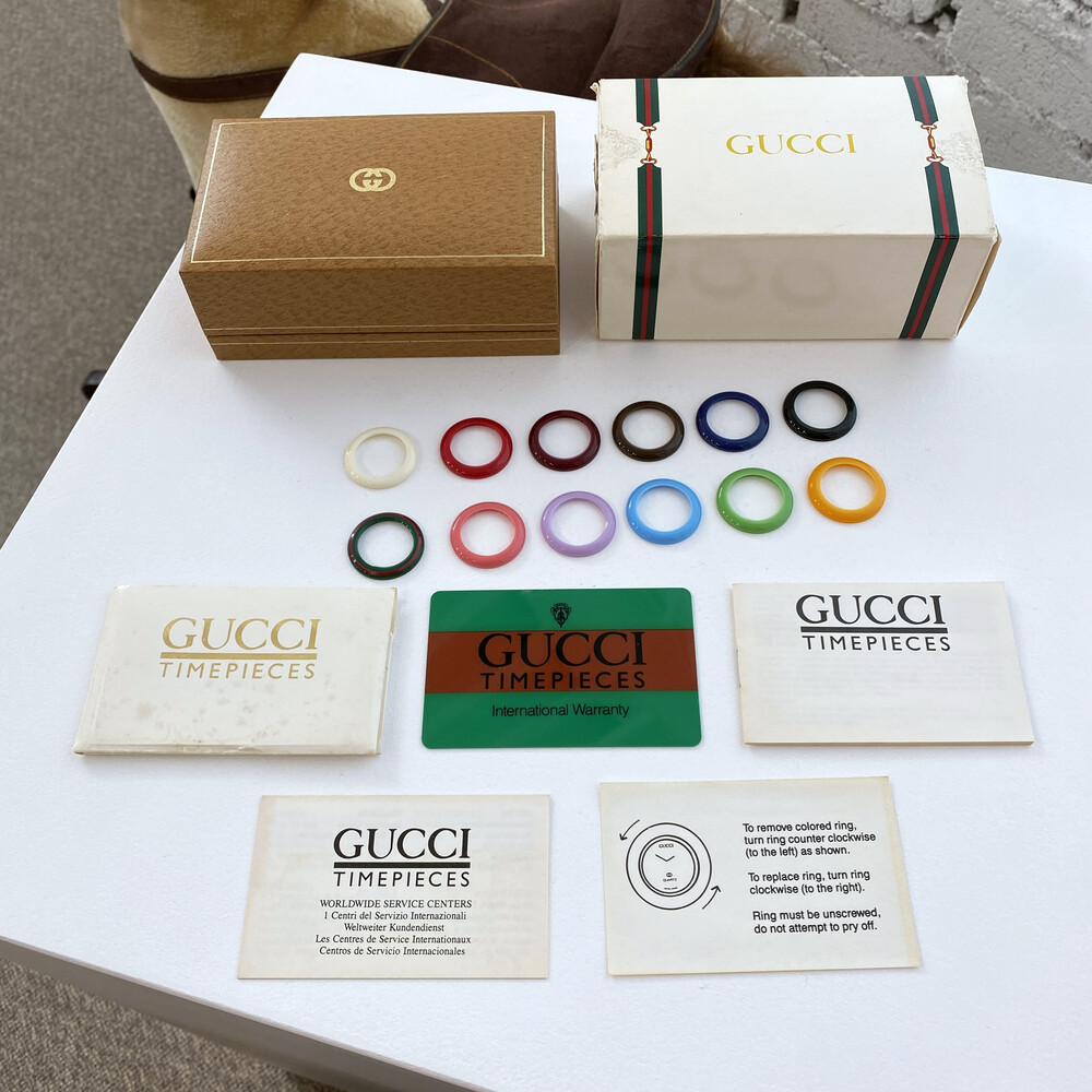 구찌 시계 케이스, 박스, 베젤, 개런티 카드, 사용설명서, 서비스센터 카드가 포함된 제품입니다.