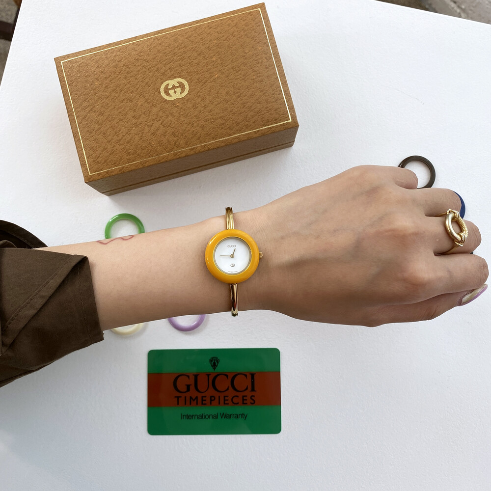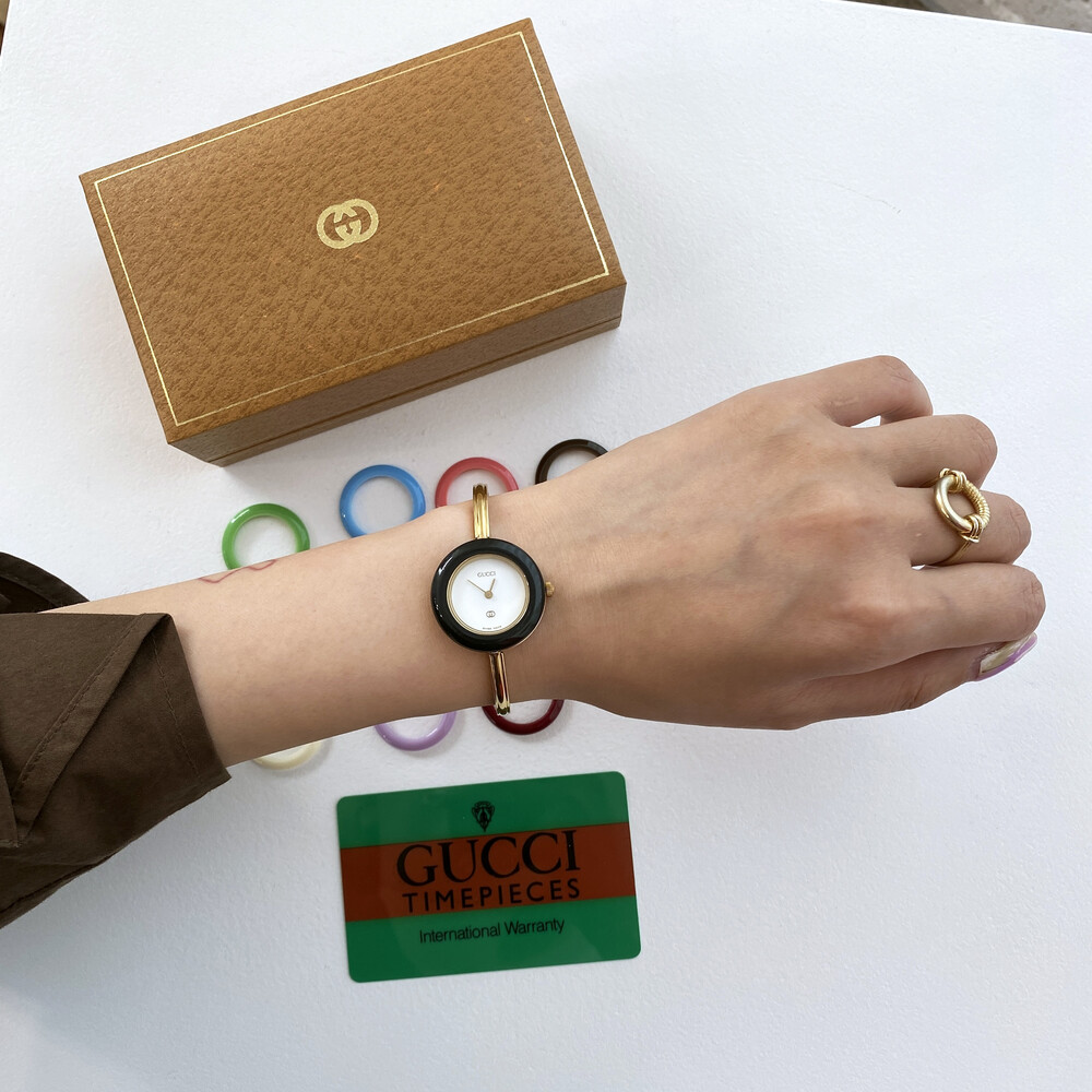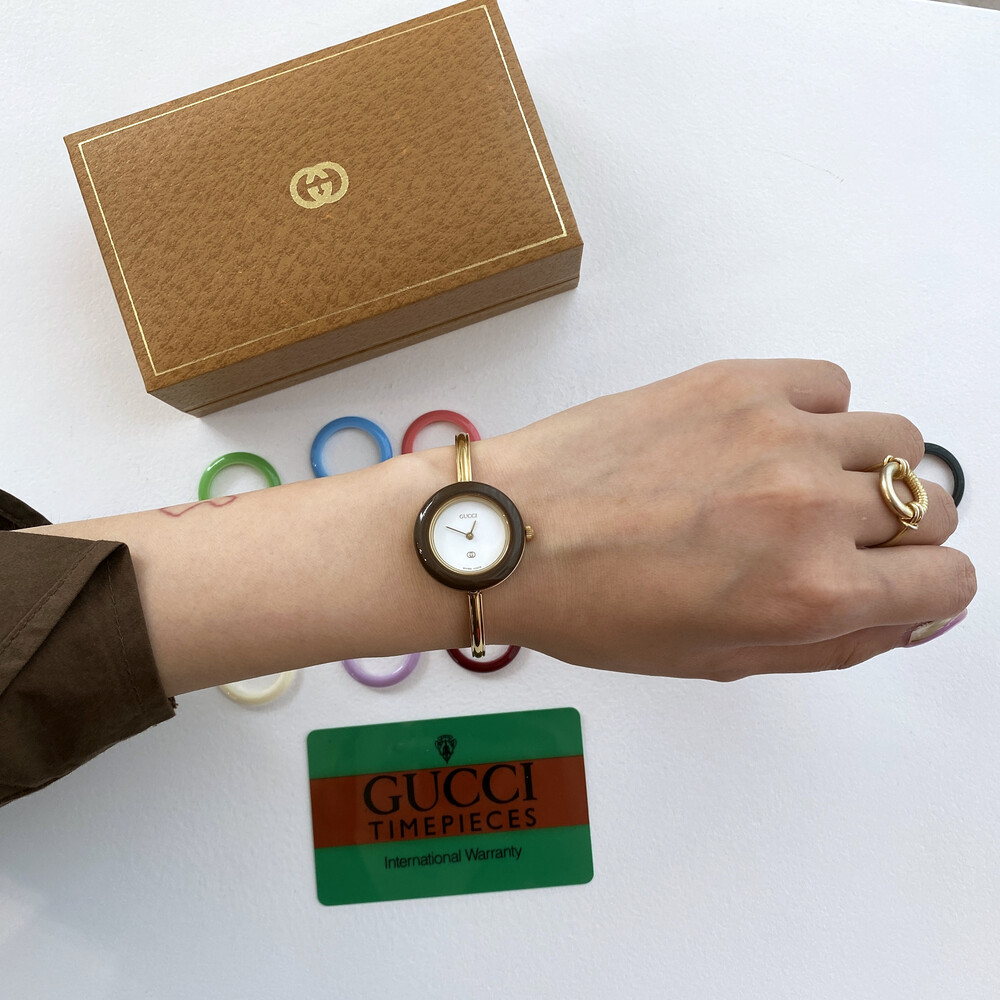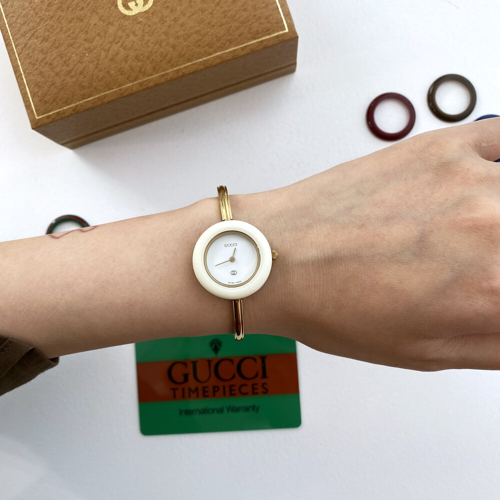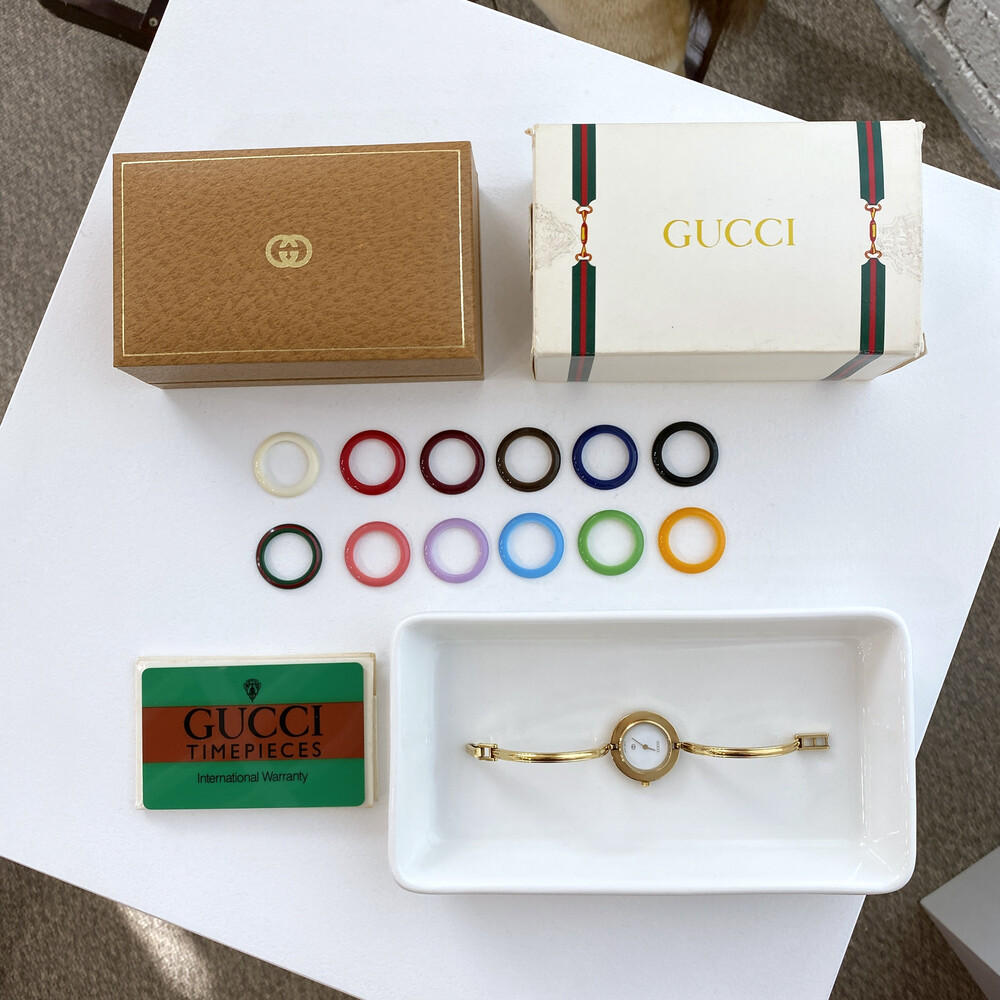 구찌 시계 케이스, 박스, 베젤, 개런티 카드, 사용설명서, 서비스센터 카드가 포함된 제품입니다.