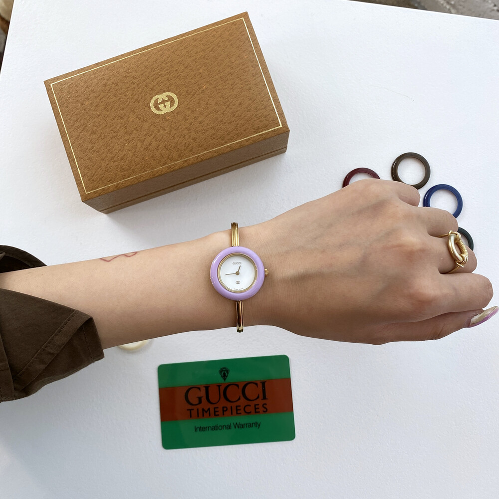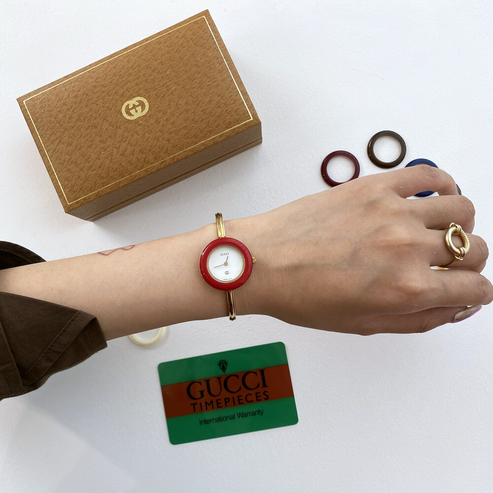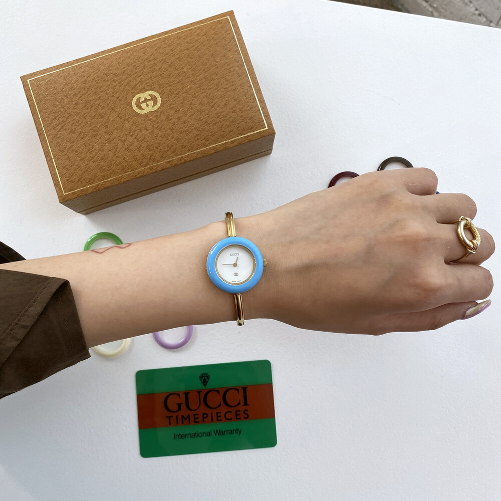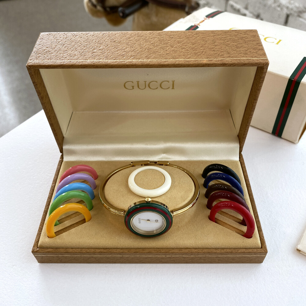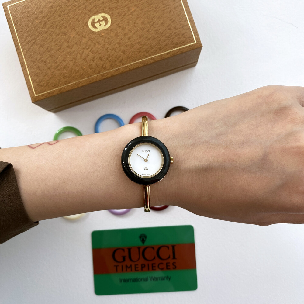 구찌 시계 케이스, 박스, 베젤, 개런티 카드, 사용설명서, 서비스센터 카드가 포함된 제품입니다.