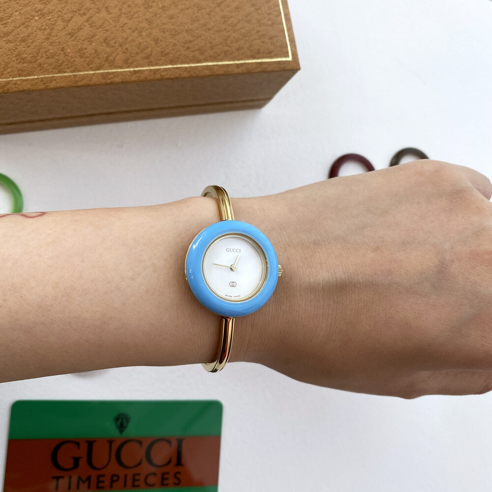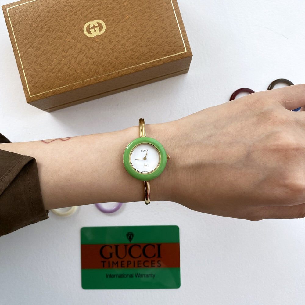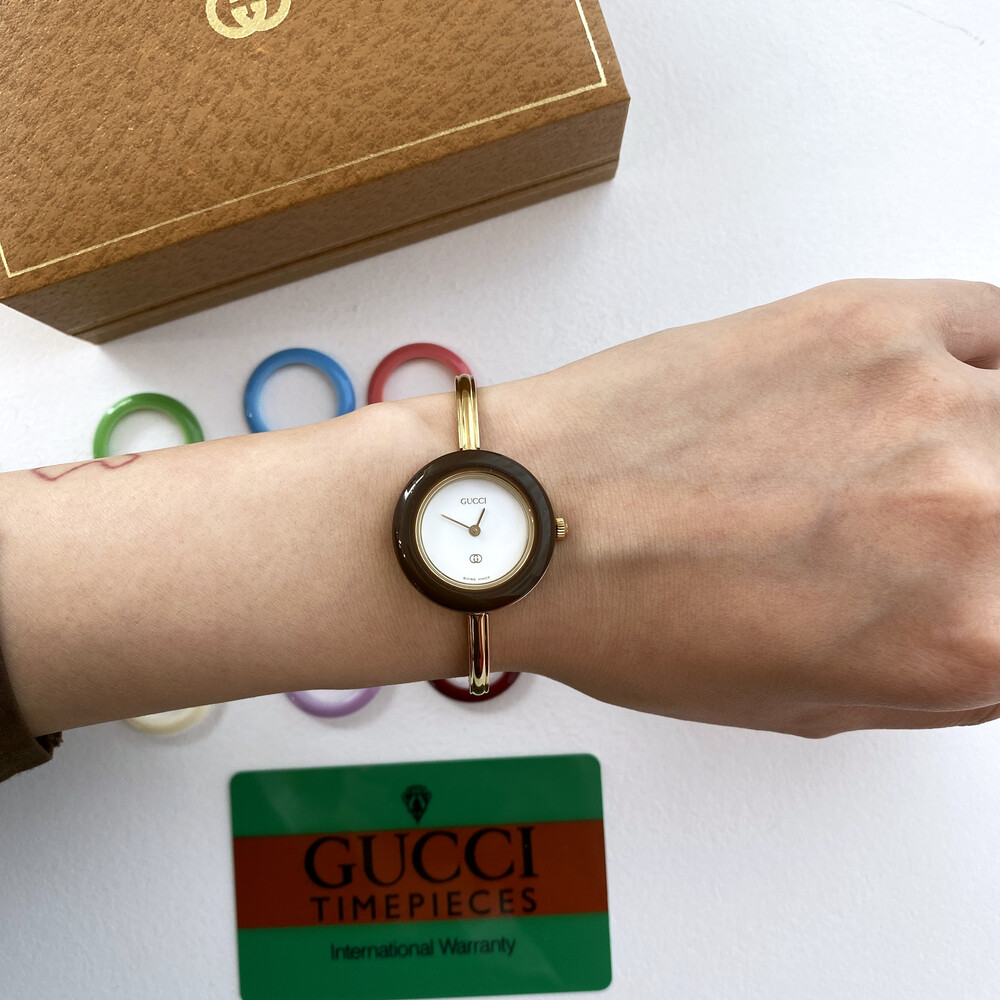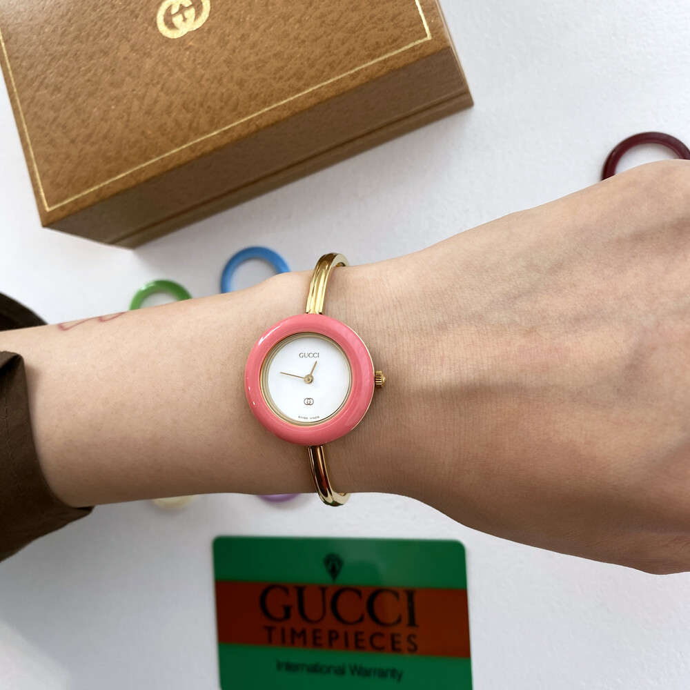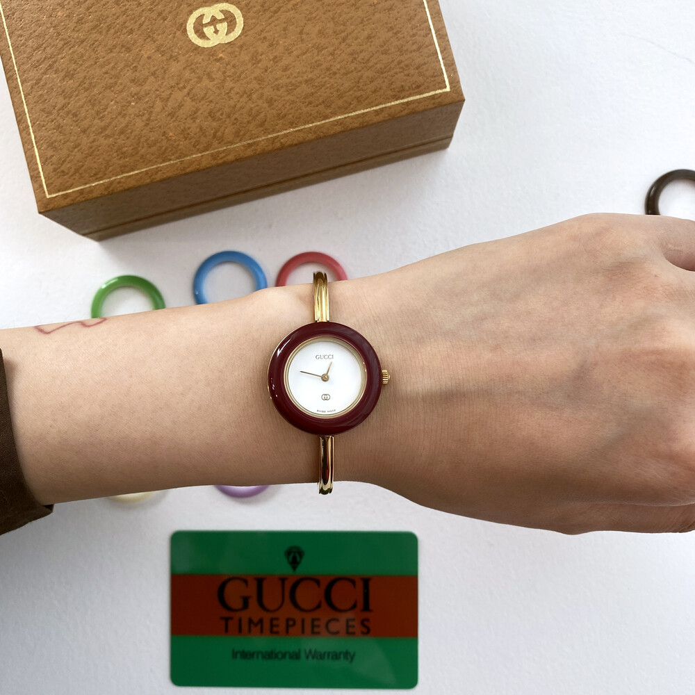 구찌 시계 케이스, 박스, 베젤, 개런티 카드, 사용설명서, 서비스센터 카드가 포함된 제품입니다.