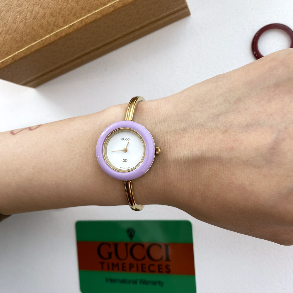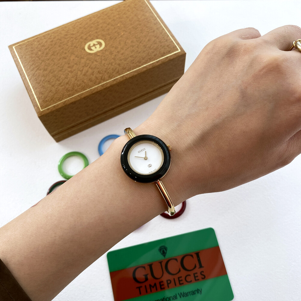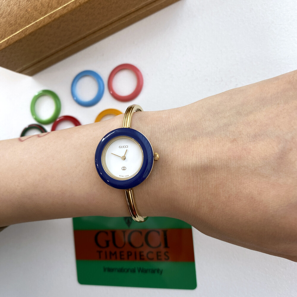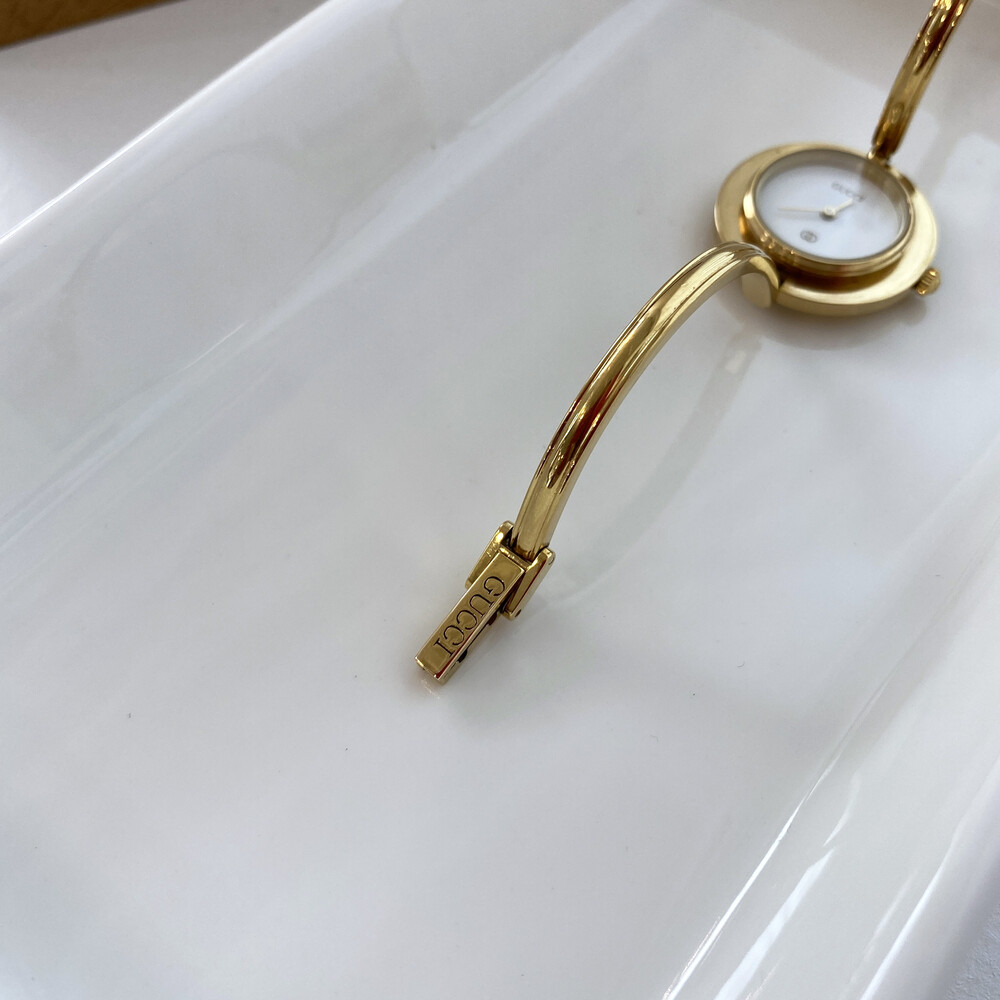 여성 구찌 시계로 스위스에서 쿼츠 무브먼트로 제작된 모델입니다.