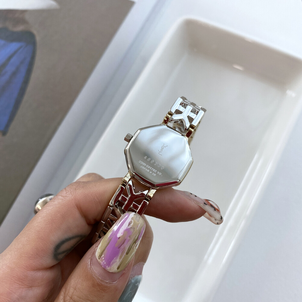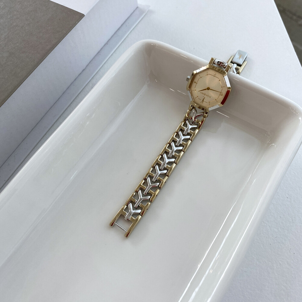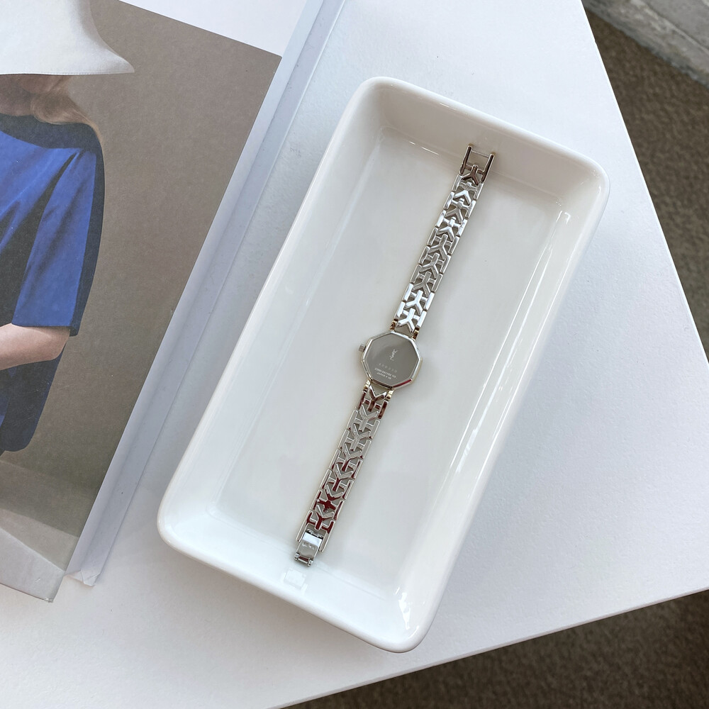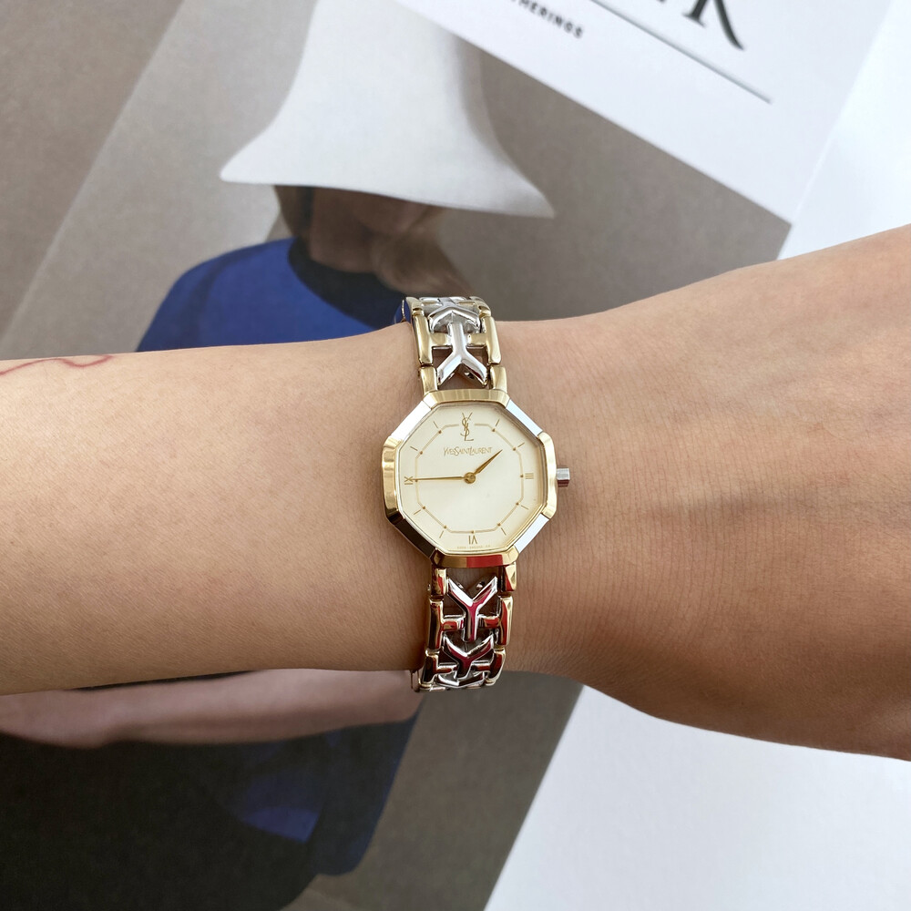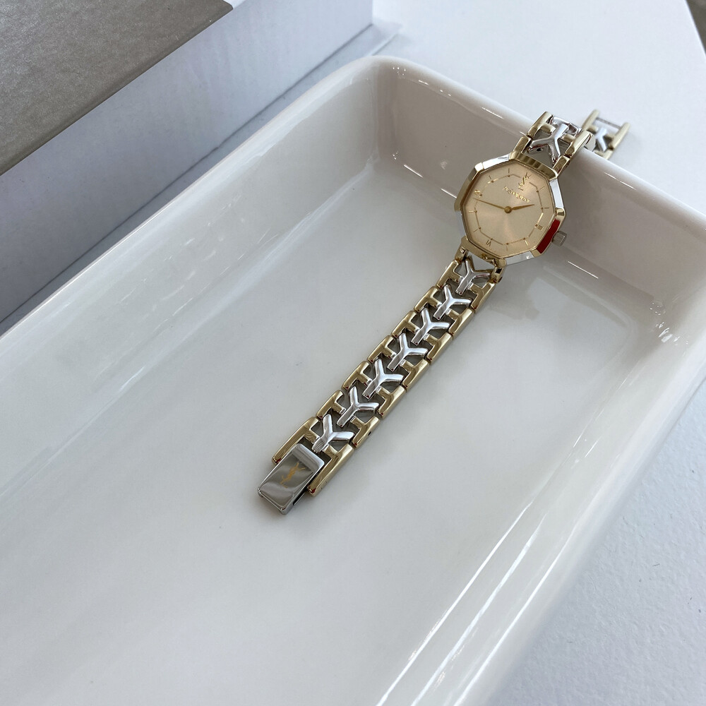 매력적인 옥타곤 타입의 케이스와 샴페인 톤의 다이얼 위를 장식하는 YSL 로고가 매력적인 모델입니다.