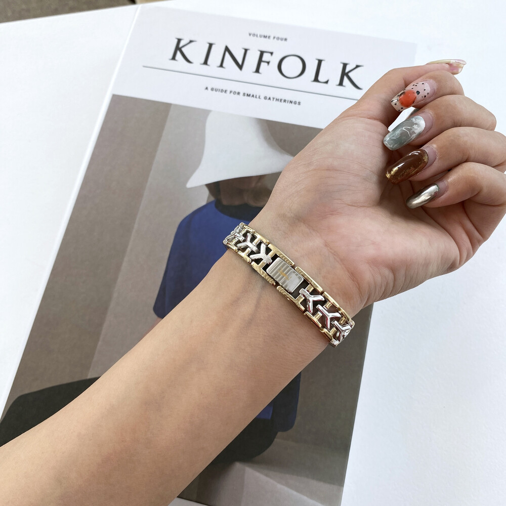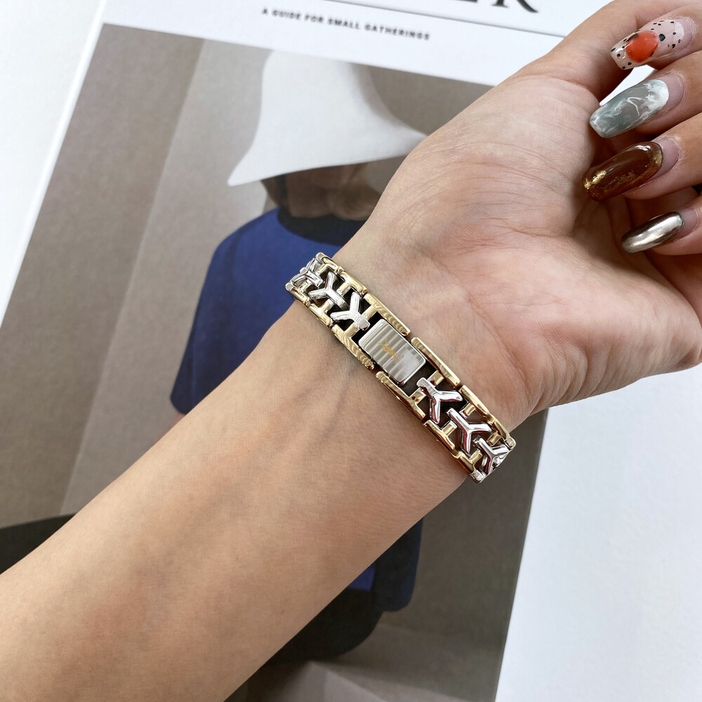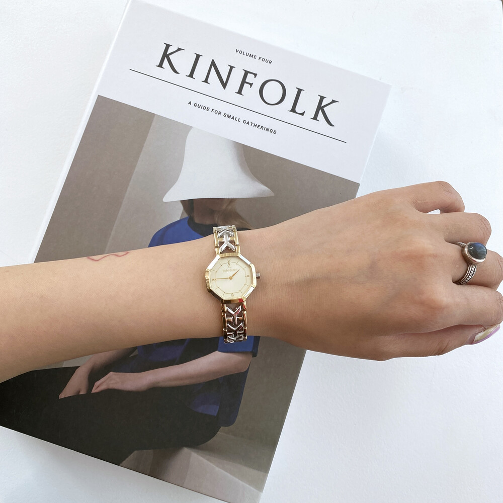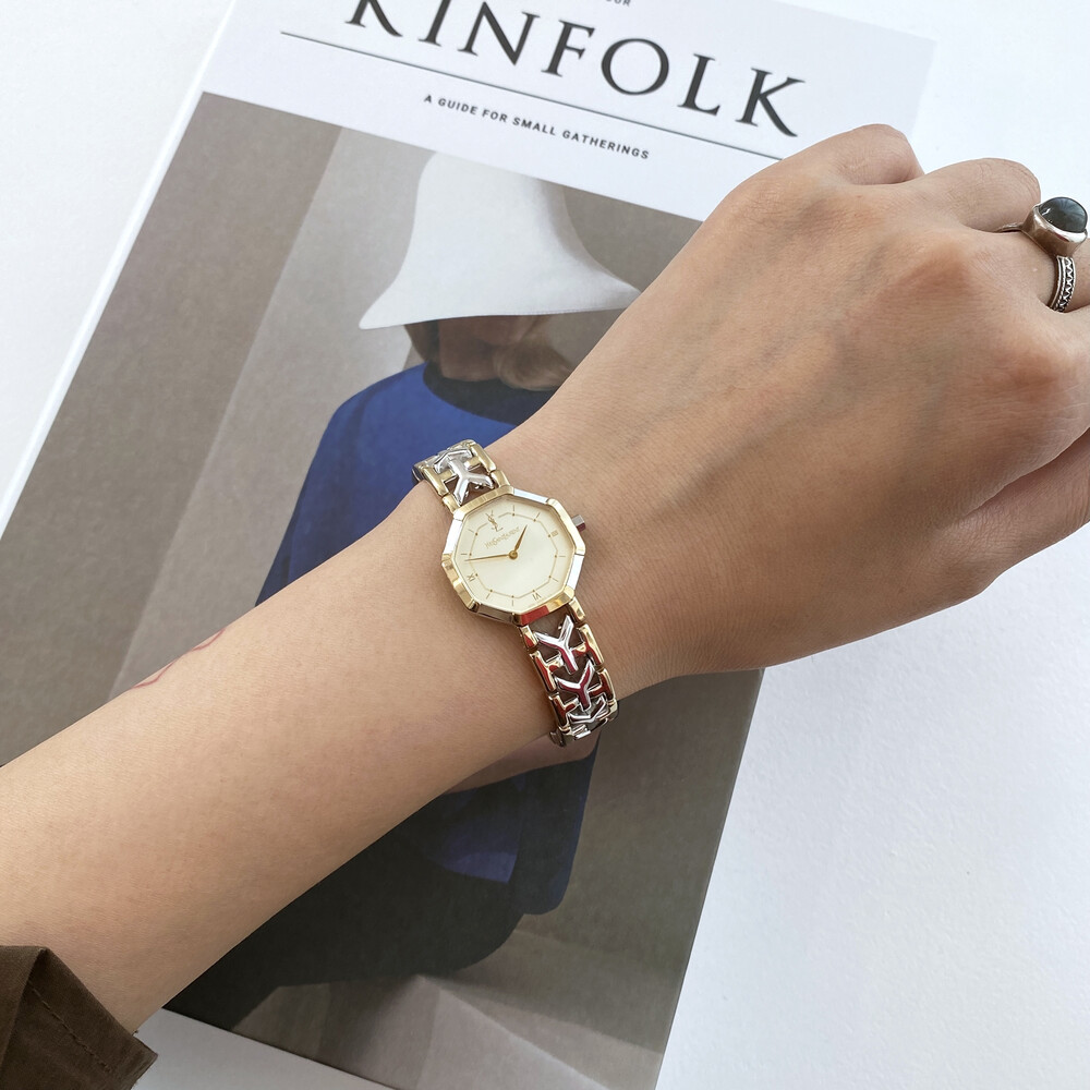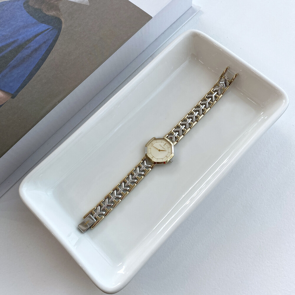 매력적인 옥타곤 타입의 케이스와 샴페인 톤의 다이얼 위를 장식하는 YSL 로고가 매력적인 모델입니다.