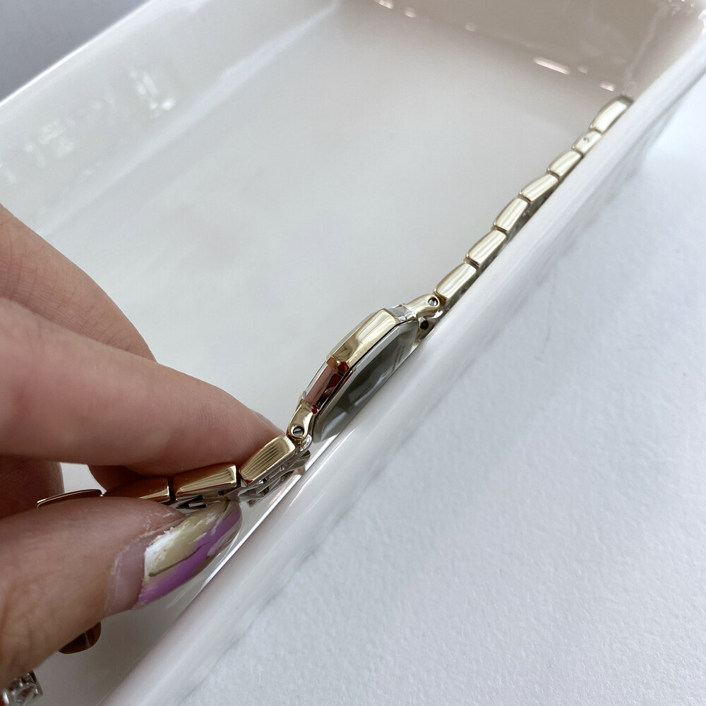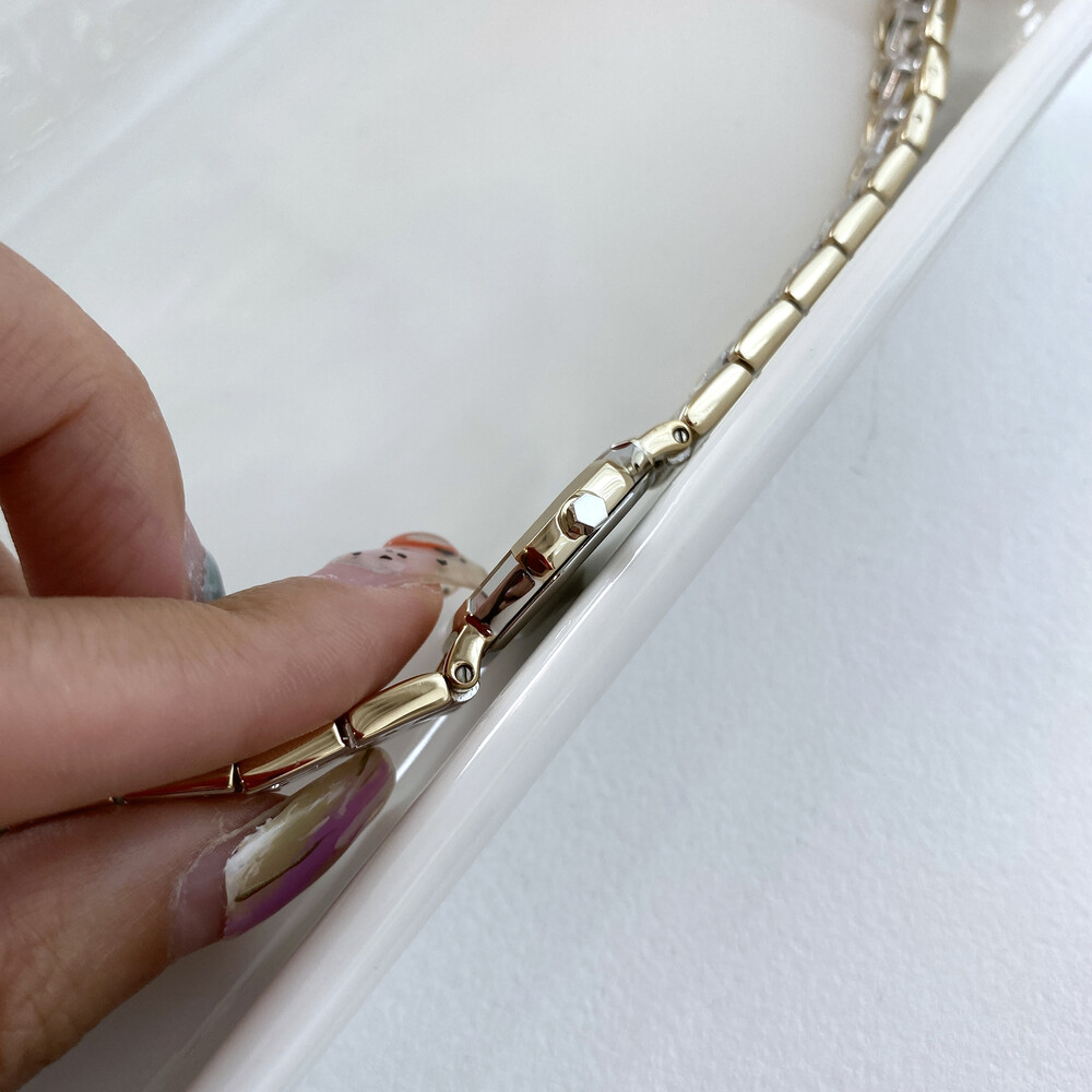 여성용으로 제작된 생로랑 시계이며 쿼츠 무브먼트로 제작되었습니다.