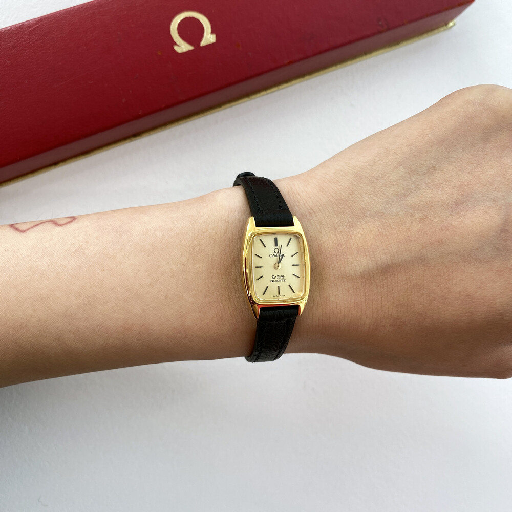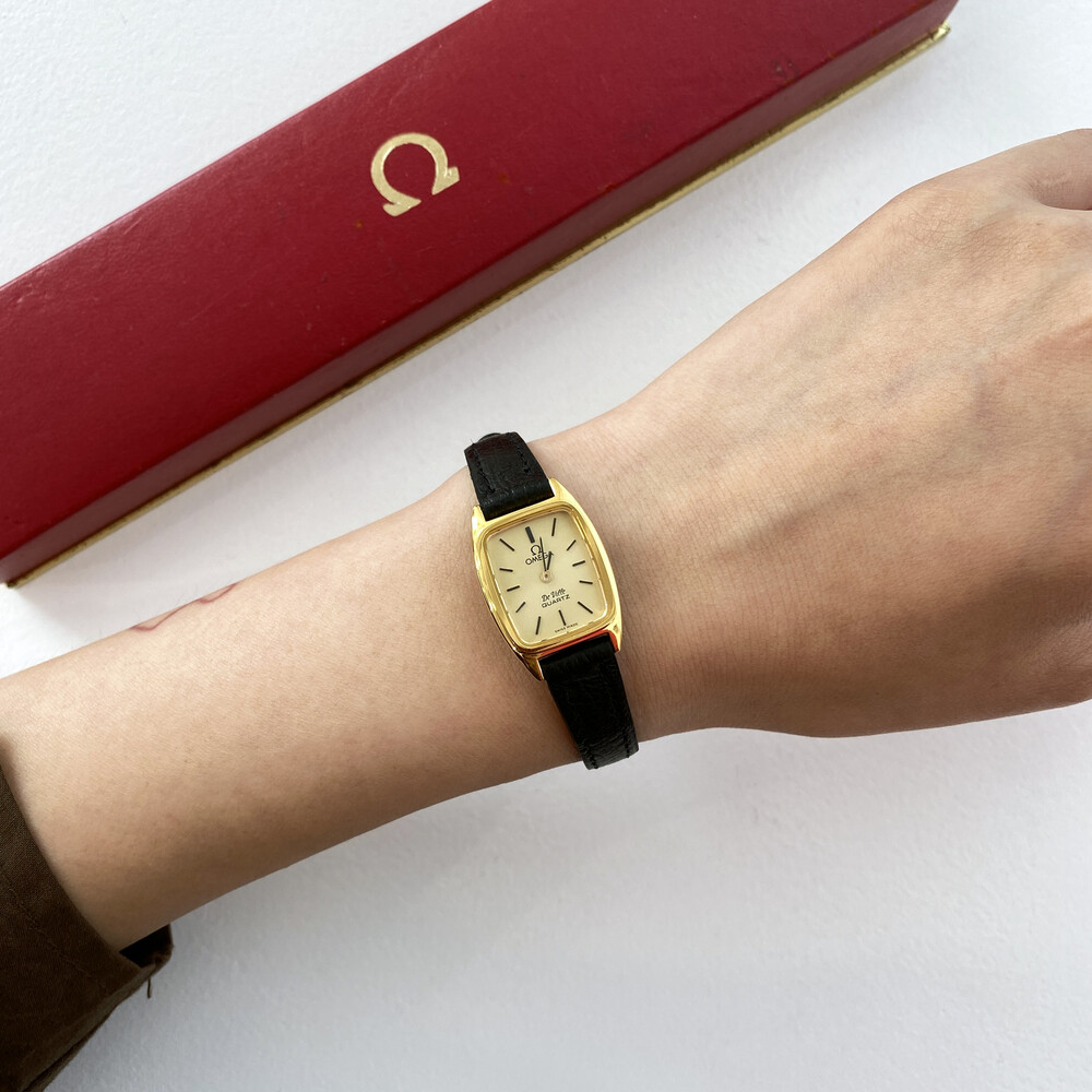 1980년대에 제작된 오메가 드빌 모델로 골드 톤 케이스와