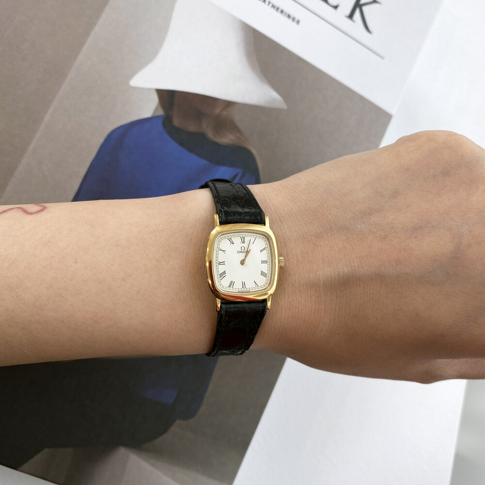1986년대에 출시된 오메가 드빌 모델로 골드 톤 케이스와