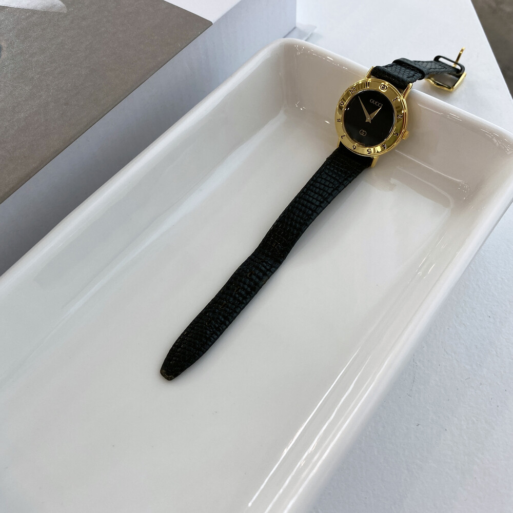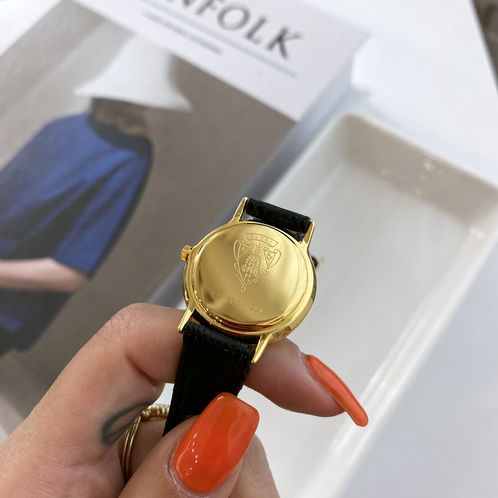 여성용으로 제작된 구찌 시계이며 스위스 쿼츠 무브먼트로 제작되었습니다.