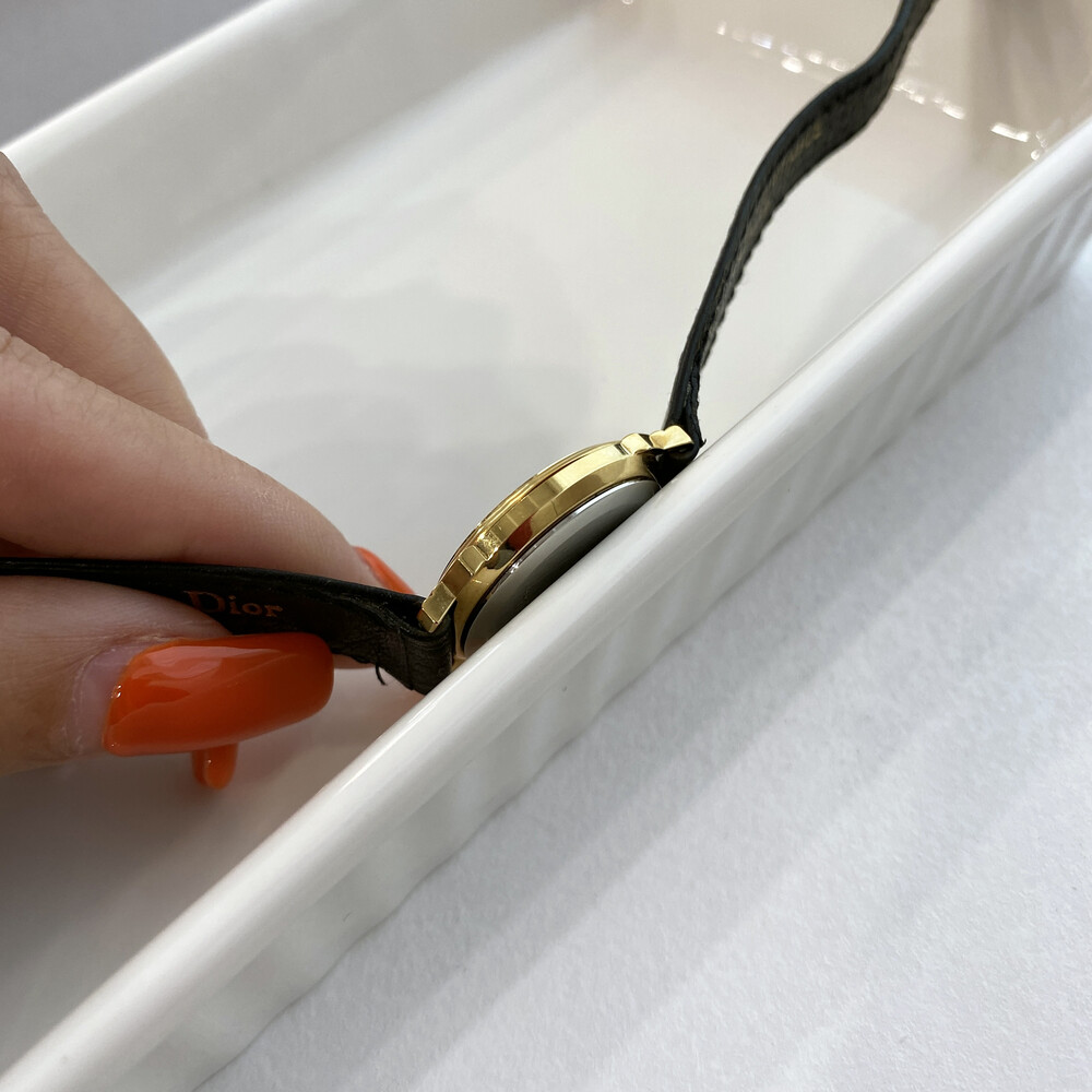 여성용으로 제작된 디올 시계이며 쿼츠 무브먼트로 제작되었습니다.