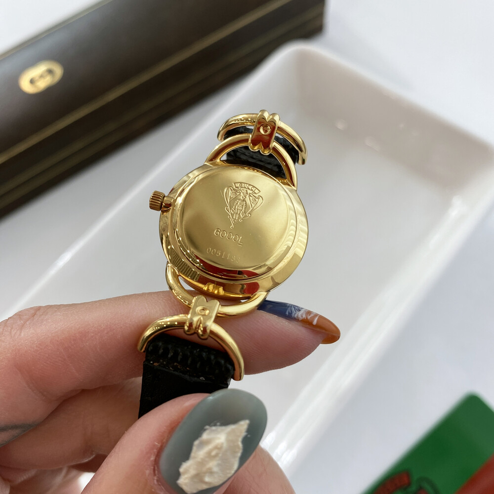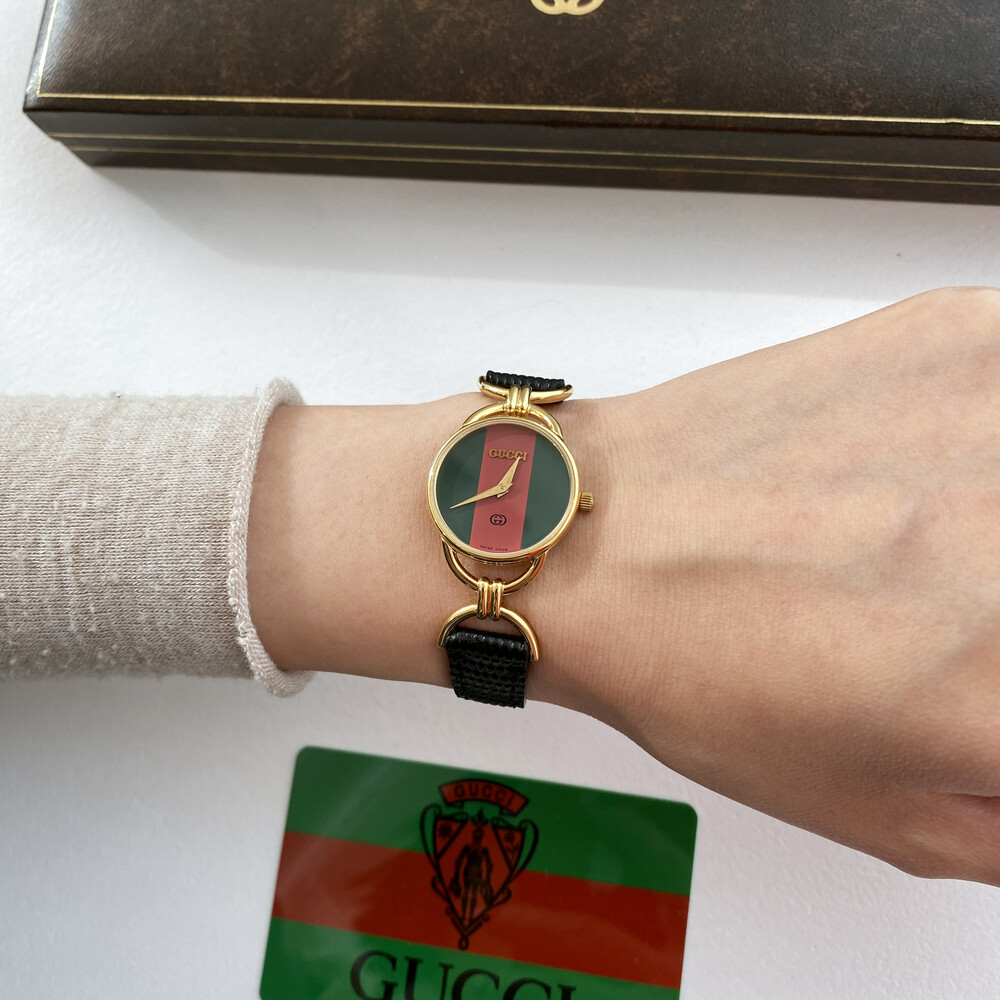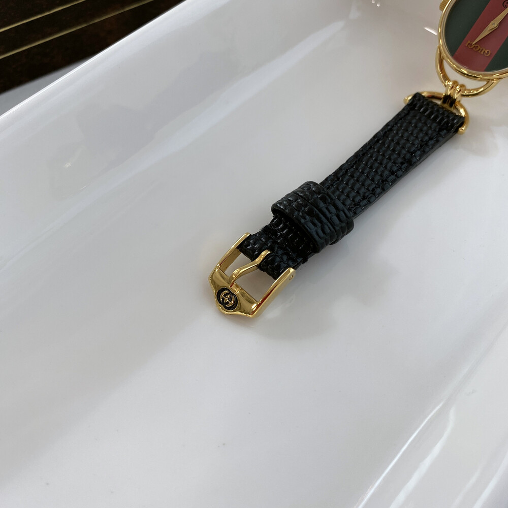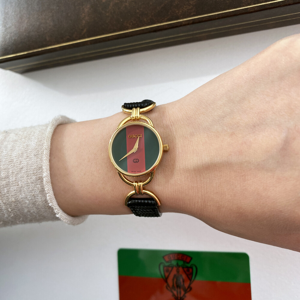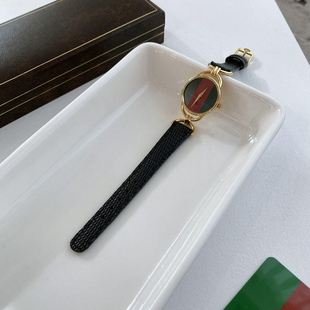 매력적인 홀스빗 타입의 러그와 구찌 시그니처 쉐리 다이얼이 아름다운 모델입니다.