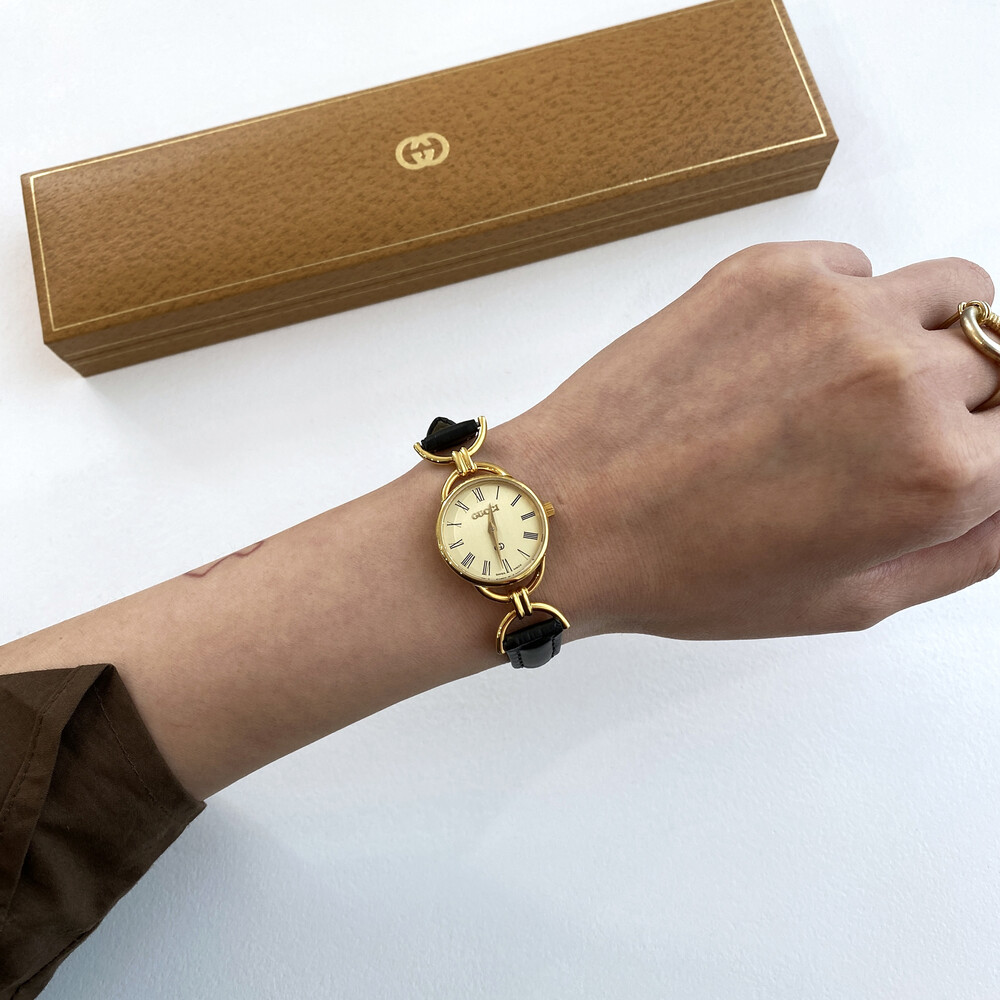 홀스빗 타입의 러그가 매력적인 구찌 시계입니다.