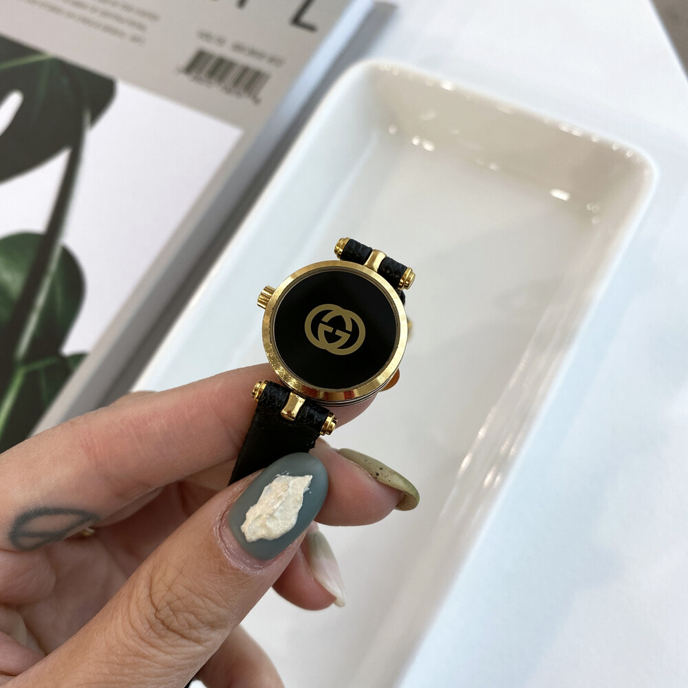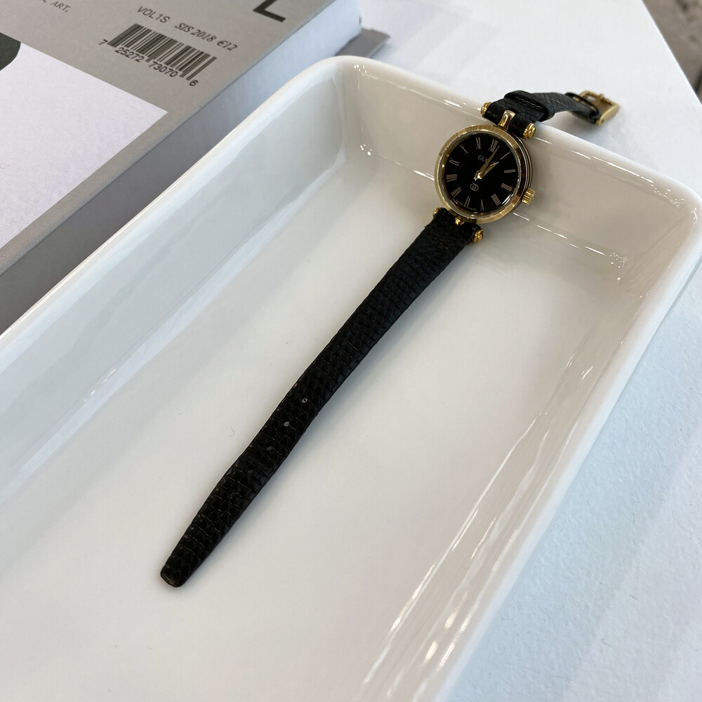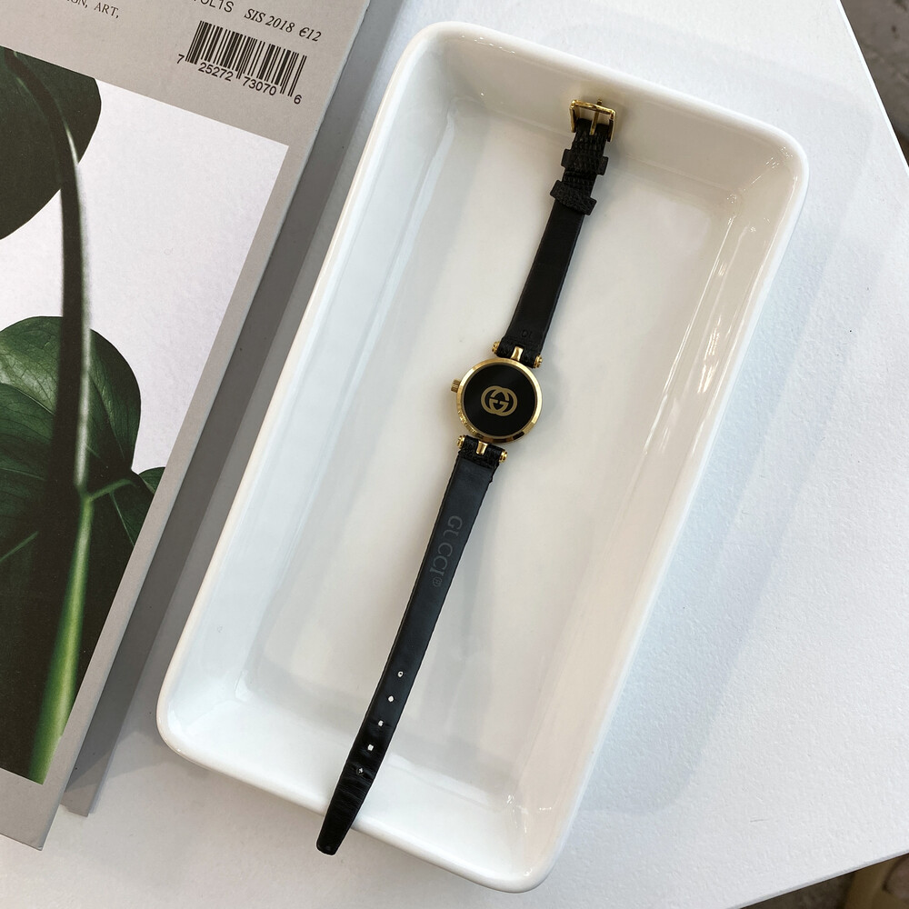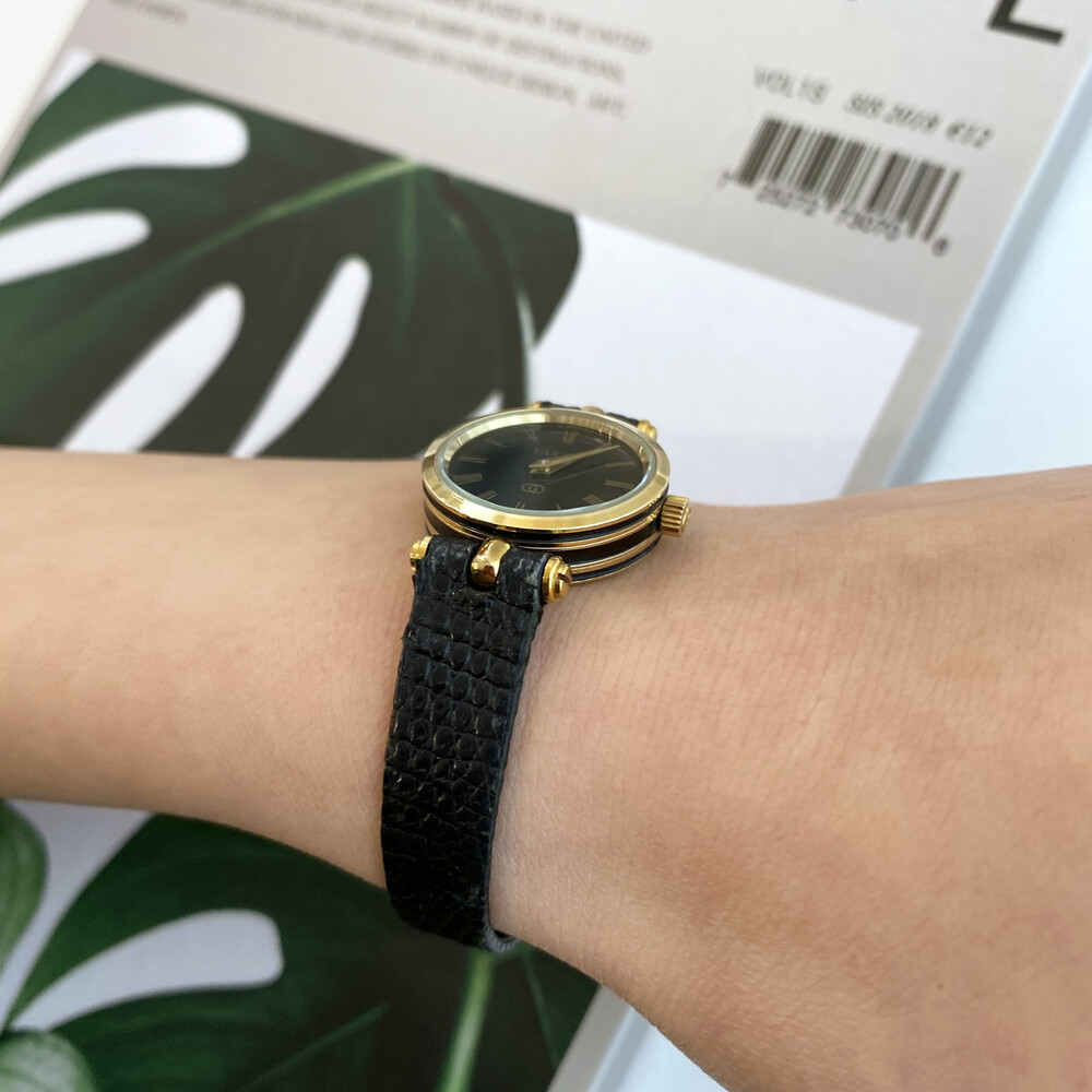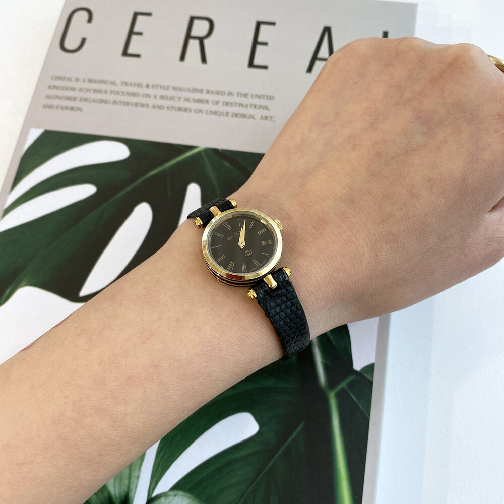 시계를 부드럽게 감싸주는 구찌 블랙 쉐리 라인이 아름다운 제품입니다.