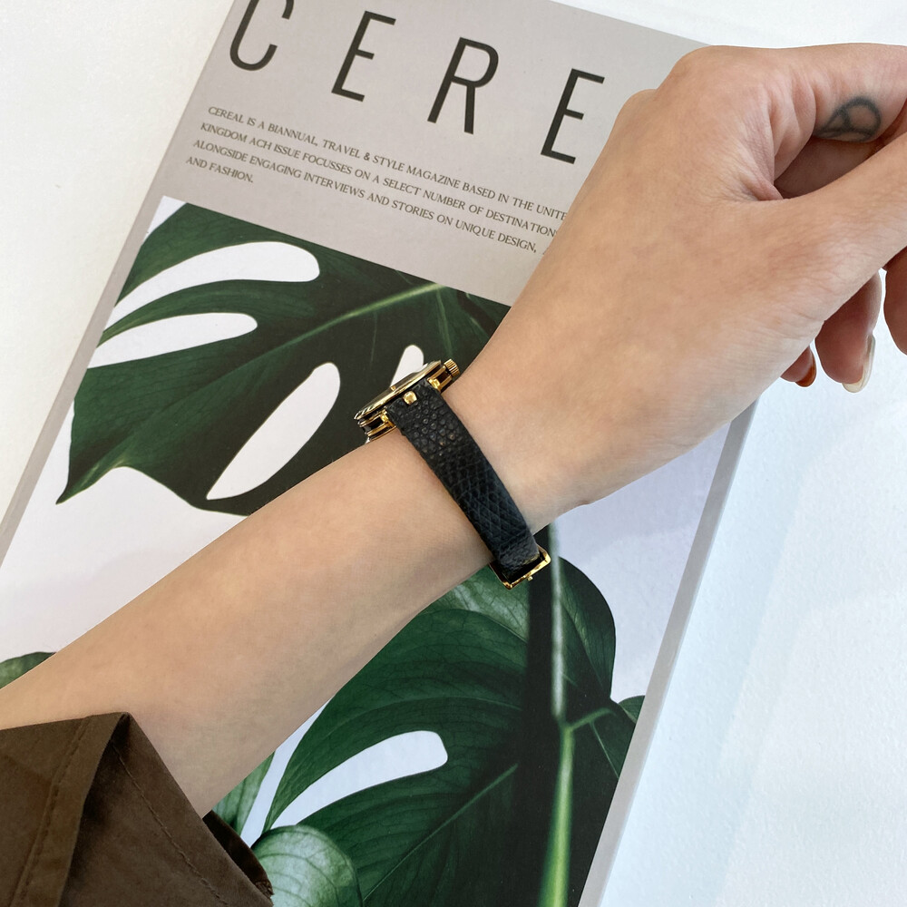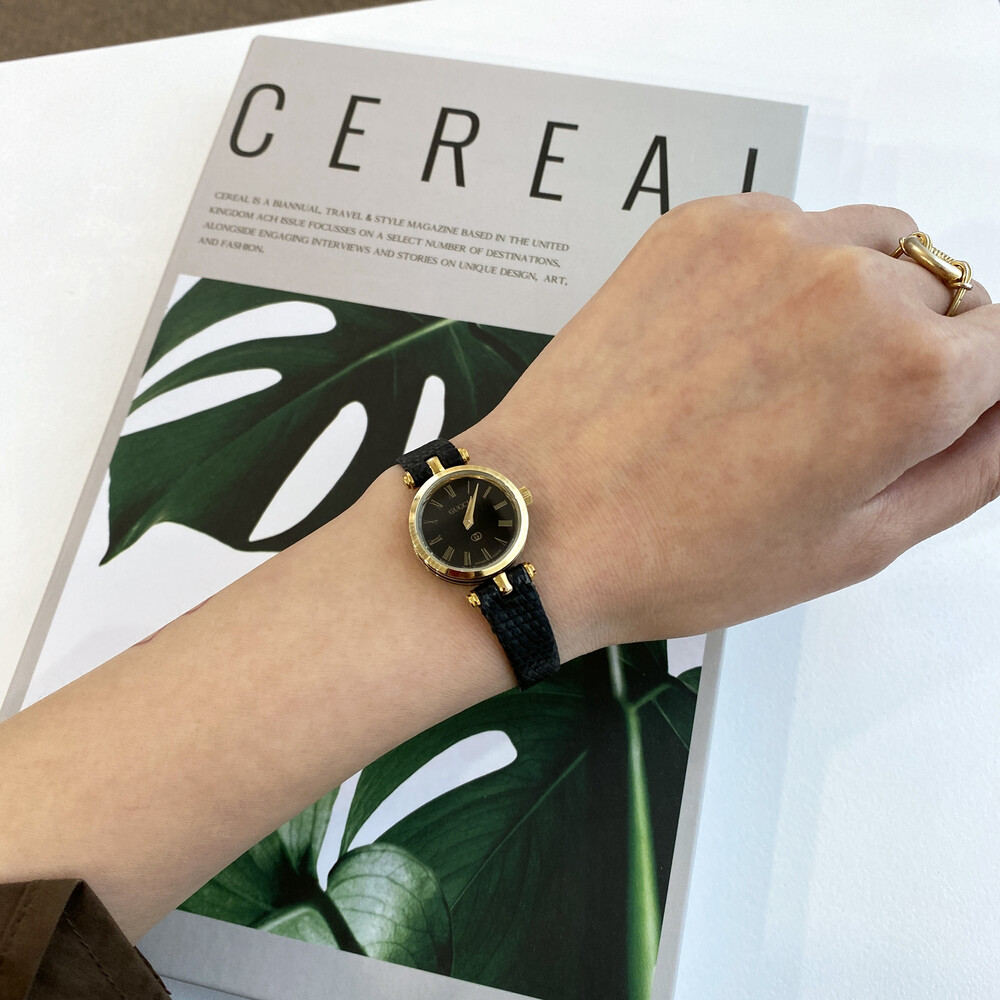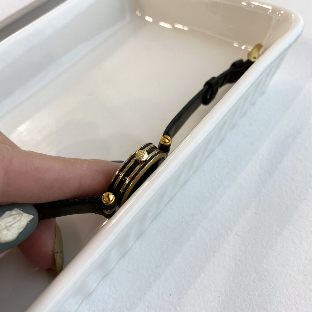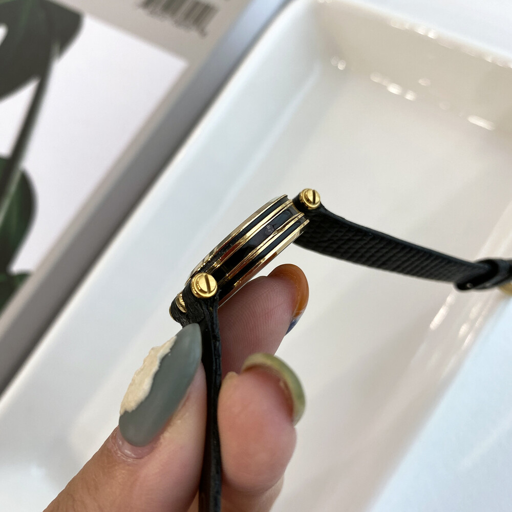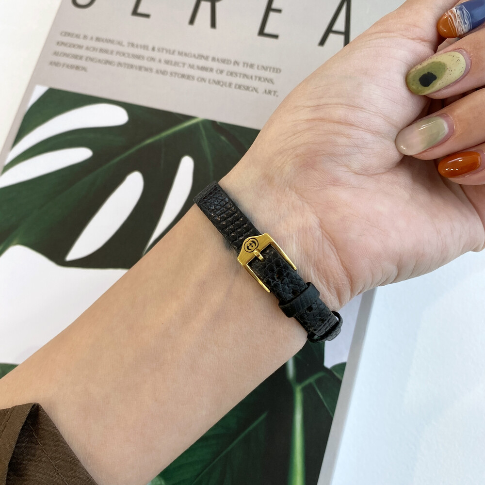 시계를 부드럽게 감싸주는 구찌 블랙 쉐리 라인이 아름다운 제품입니다.
