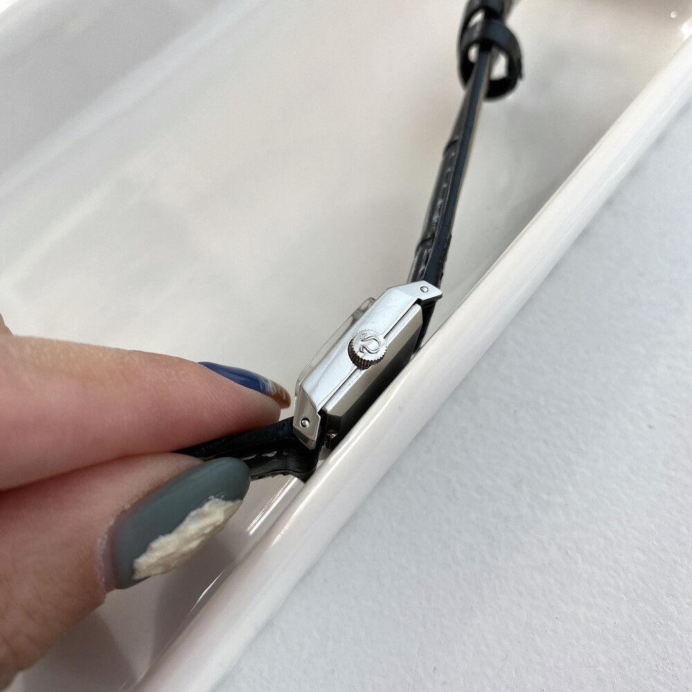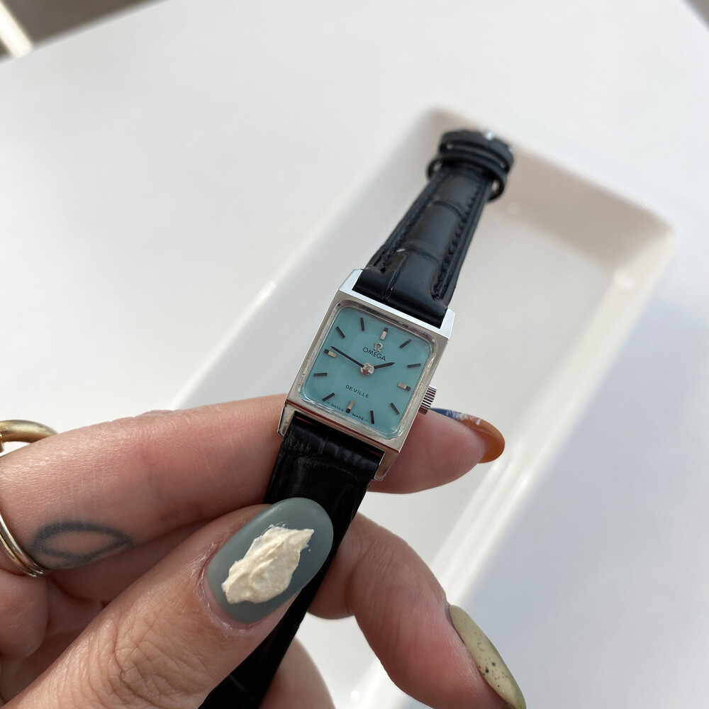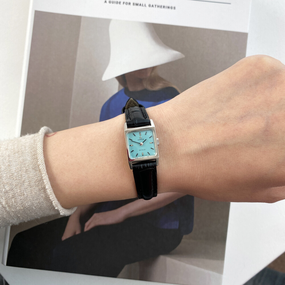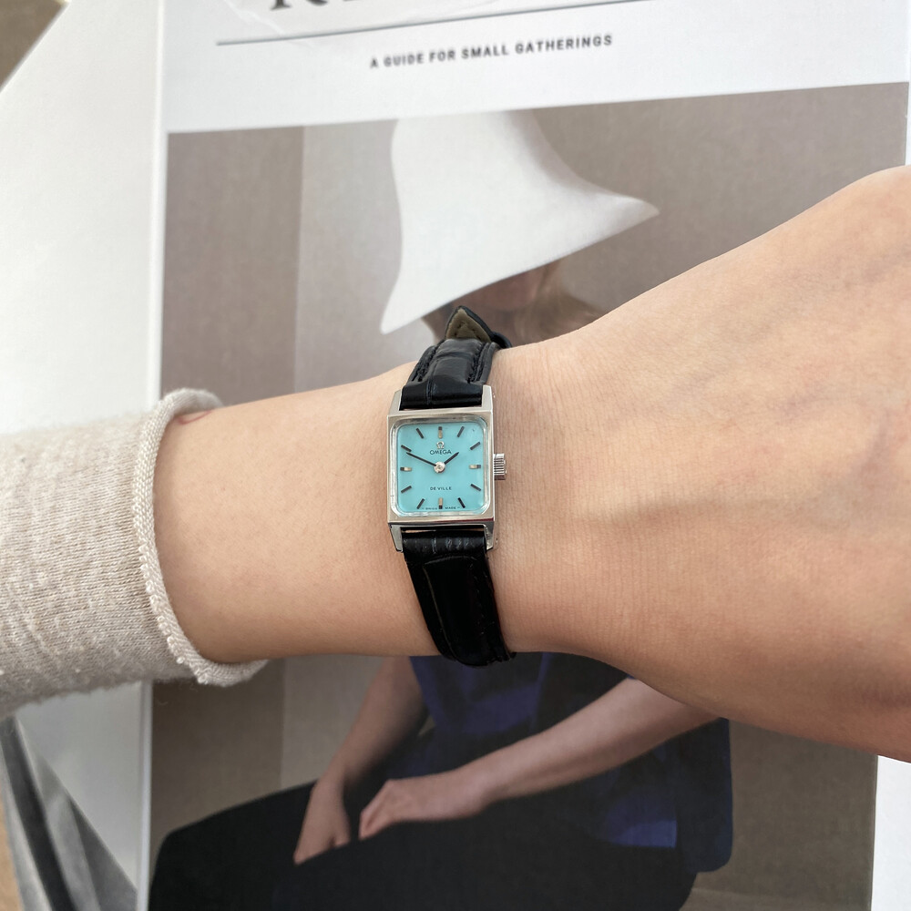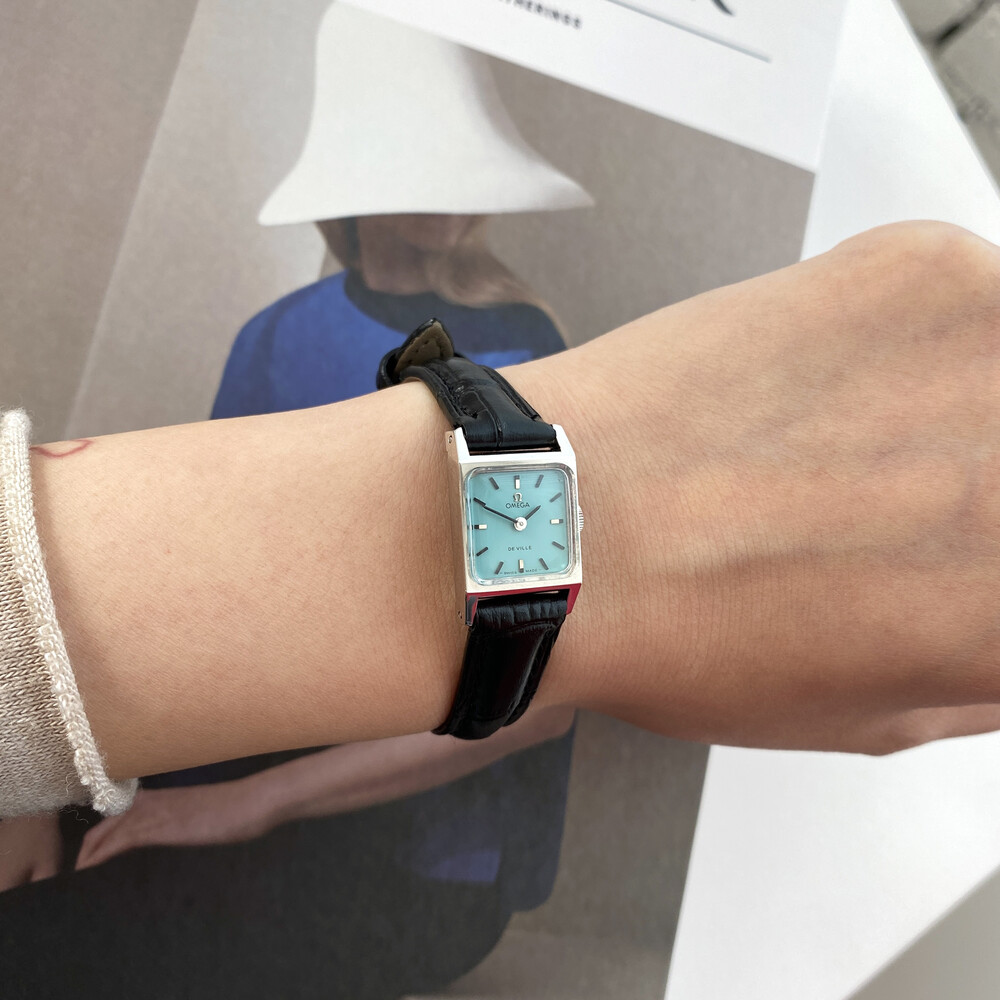 1969~70년도에 제작된 오메가 드빌 모델로 매력적인 스퀘어 타입의 케이스와