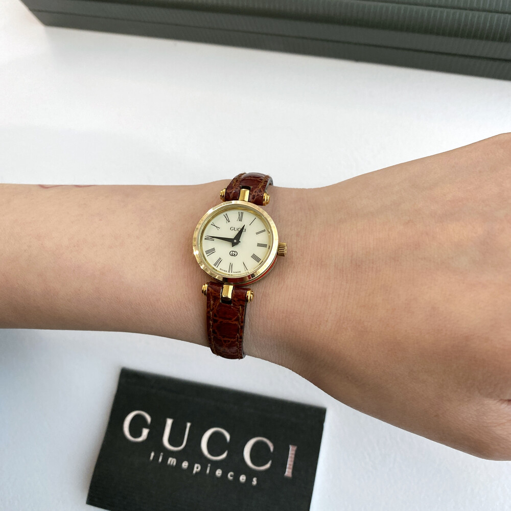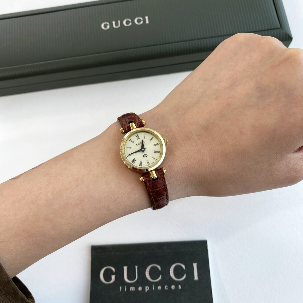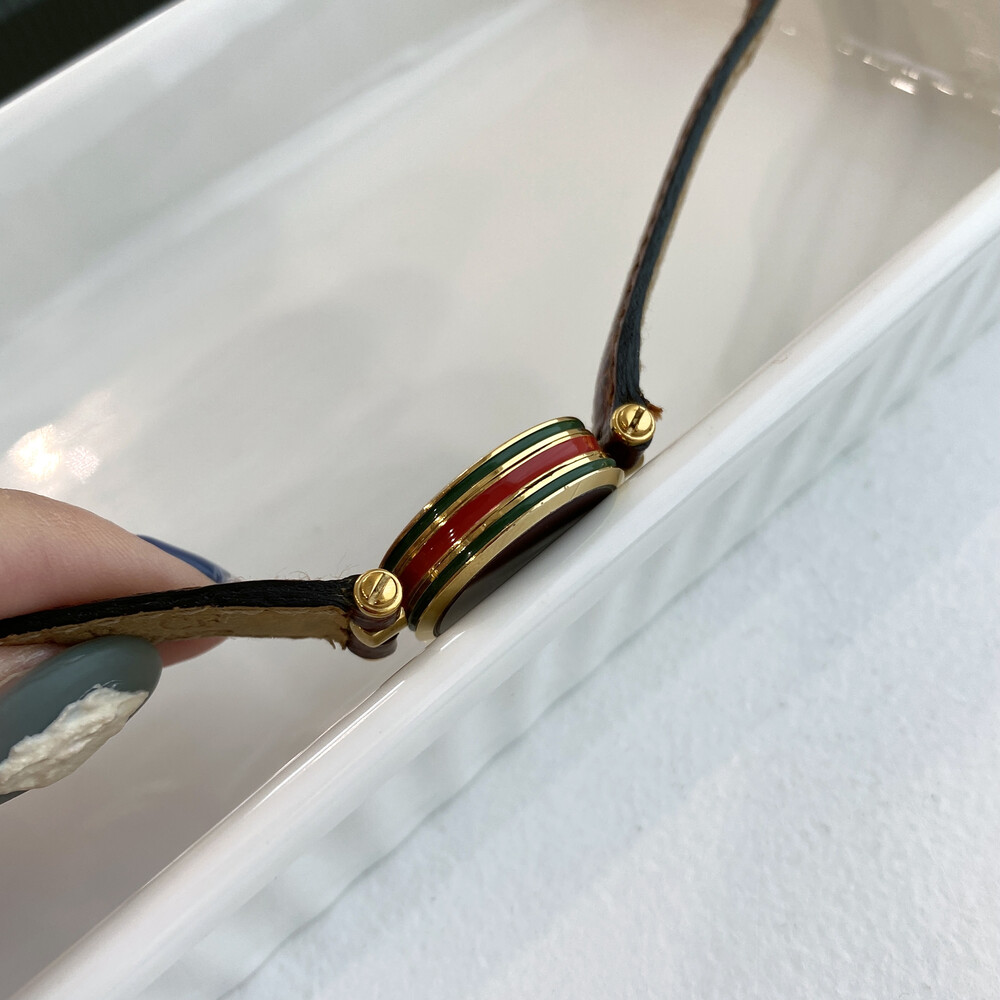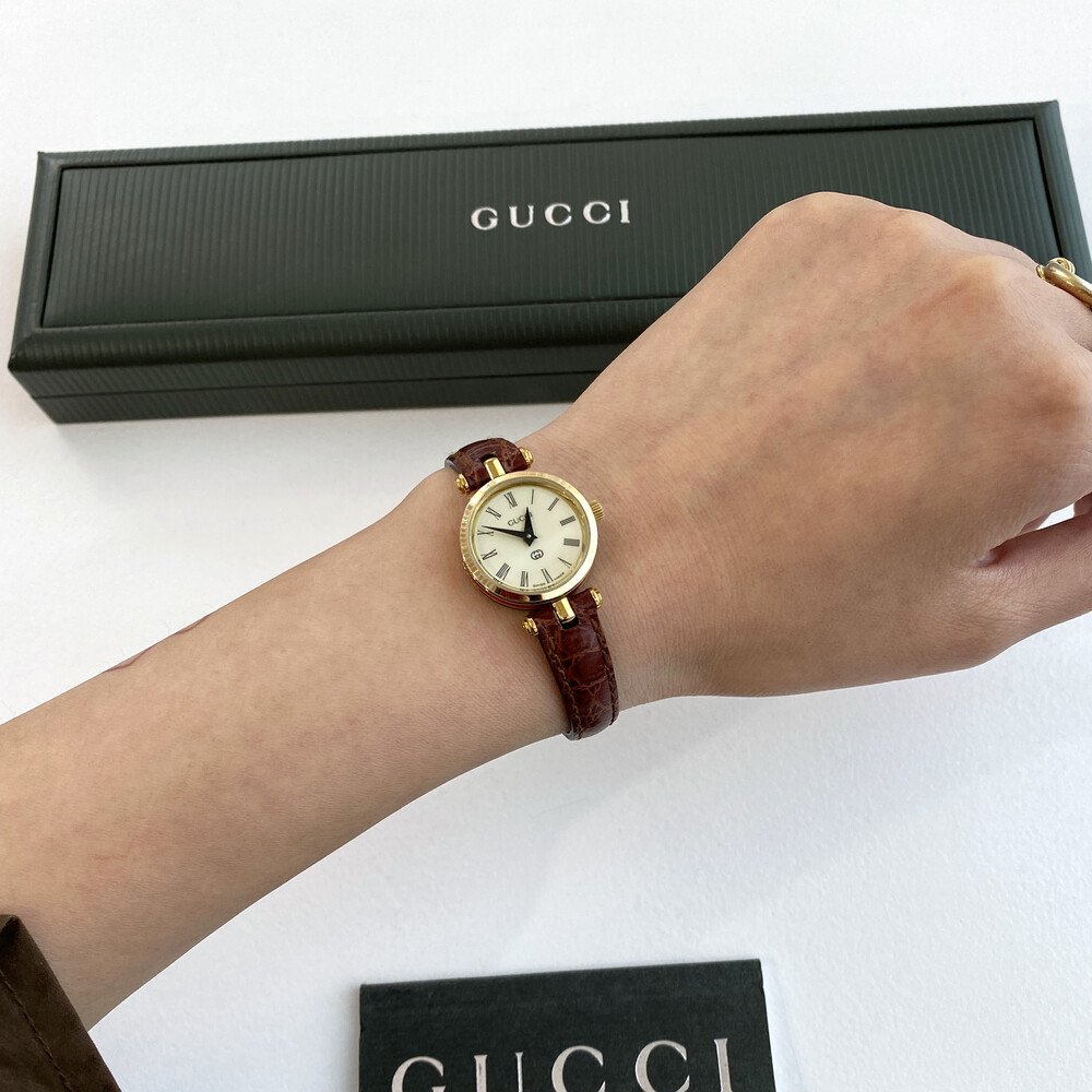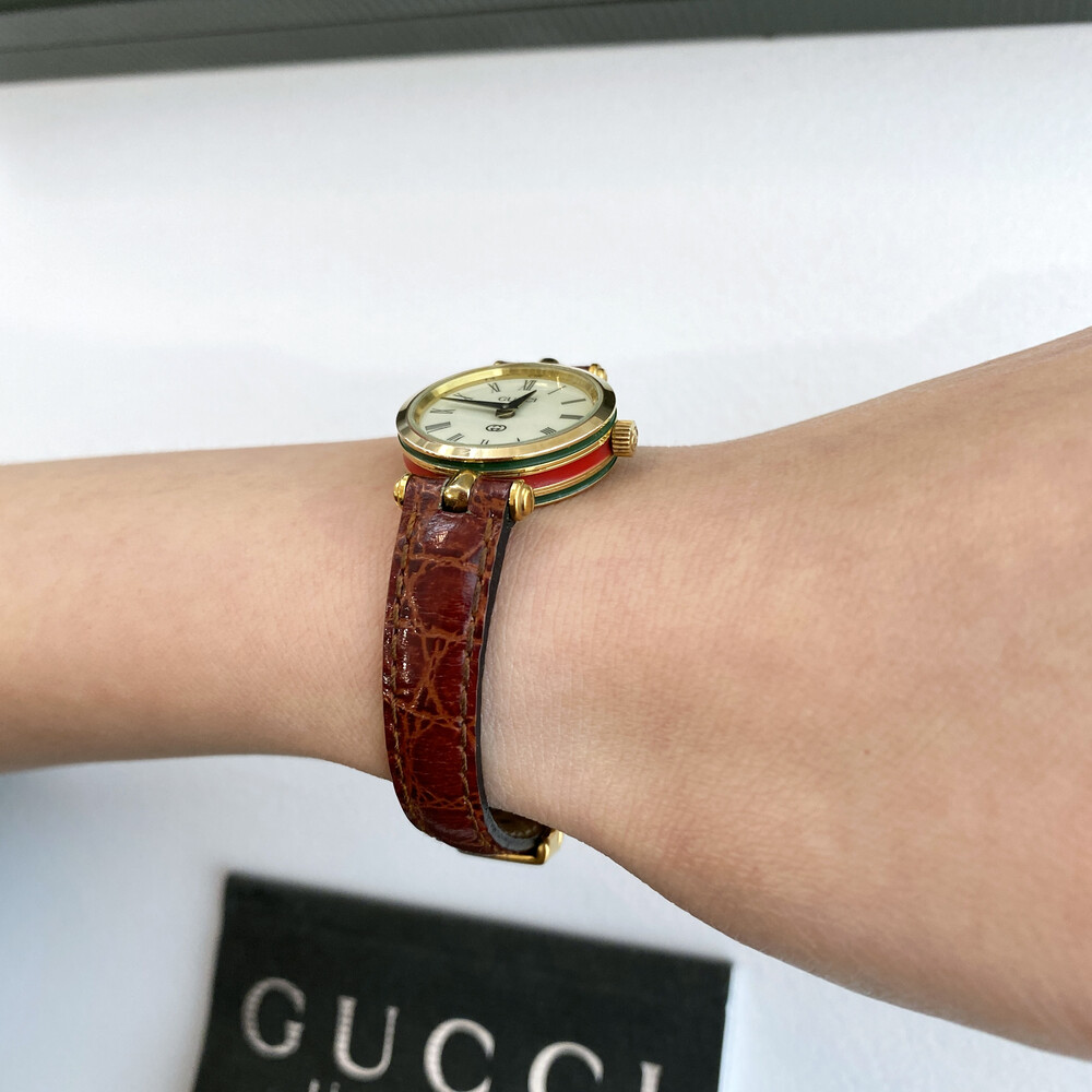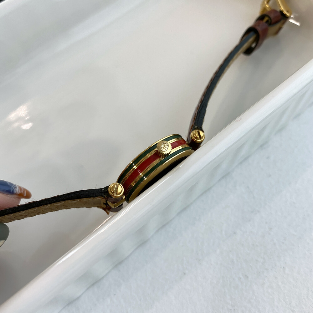 시계를 부드럽게 감싸주는 구찌 시그니처 쉐리라인이 아름다운 제품입니다.