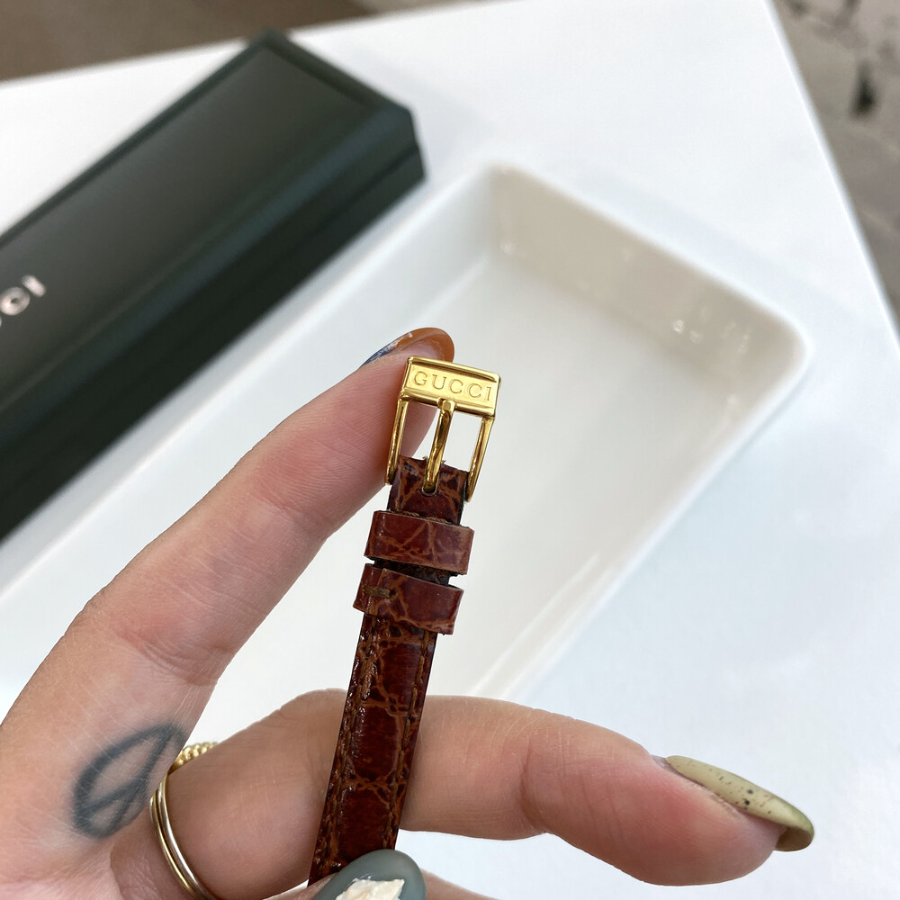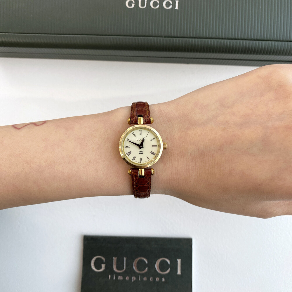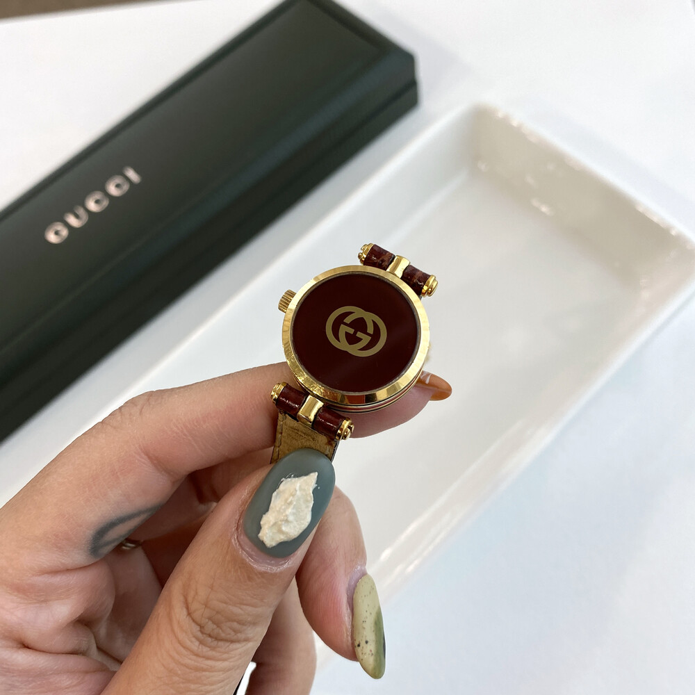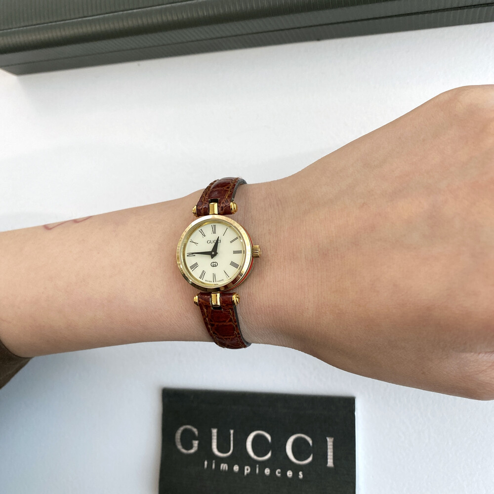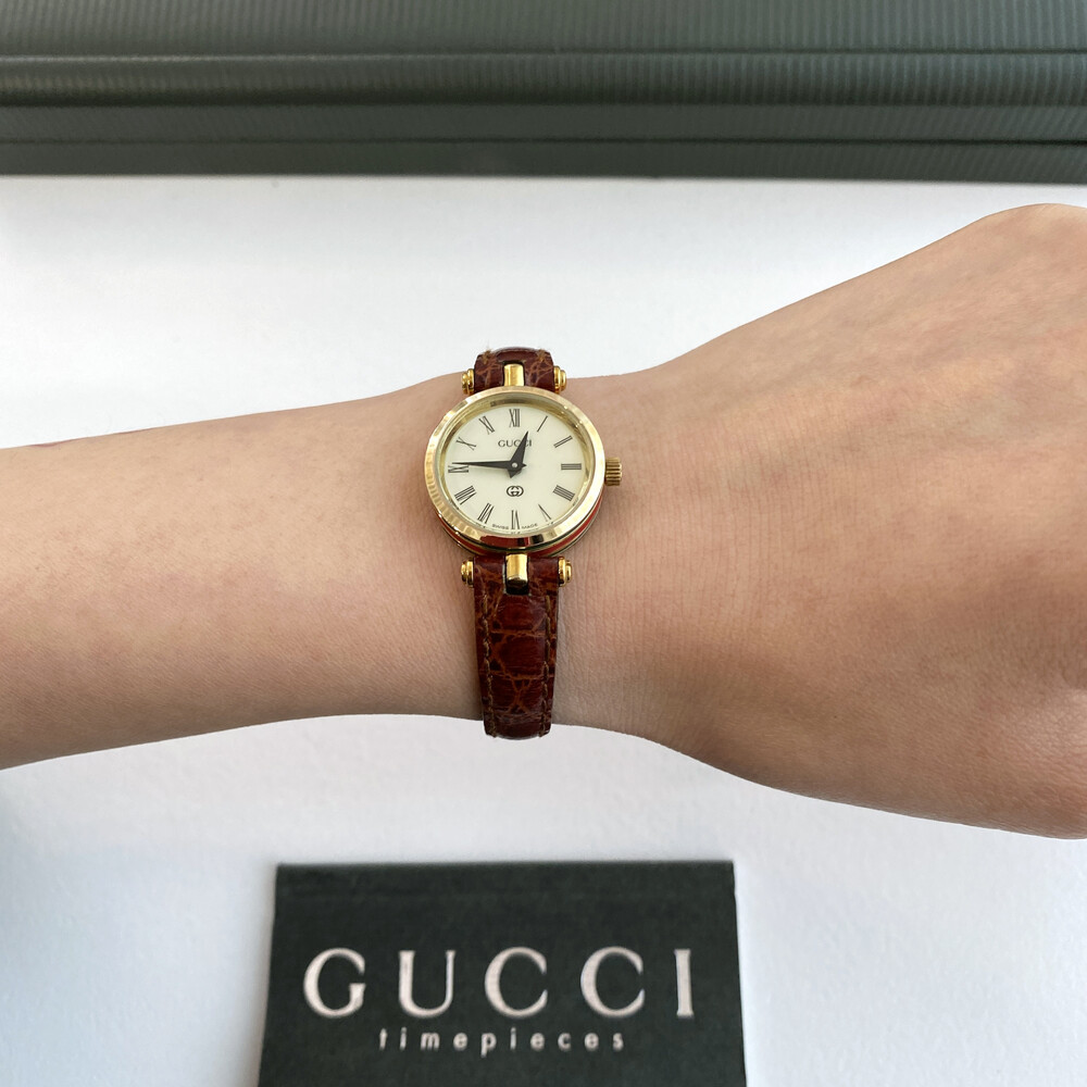 시계를 부드럽게 감싸주는 구찌 시그니처 쉐리라인이 아름다운 제품입니다.