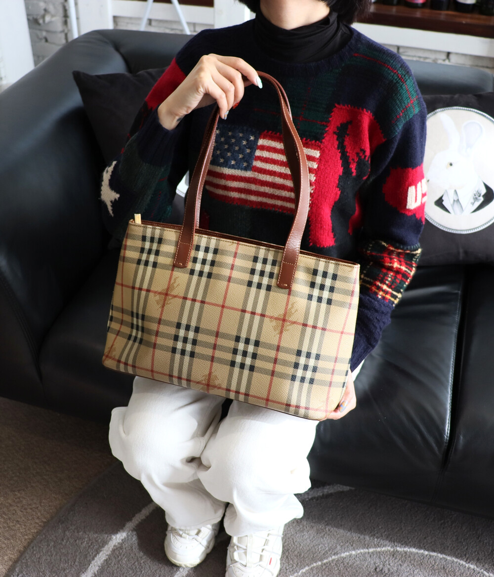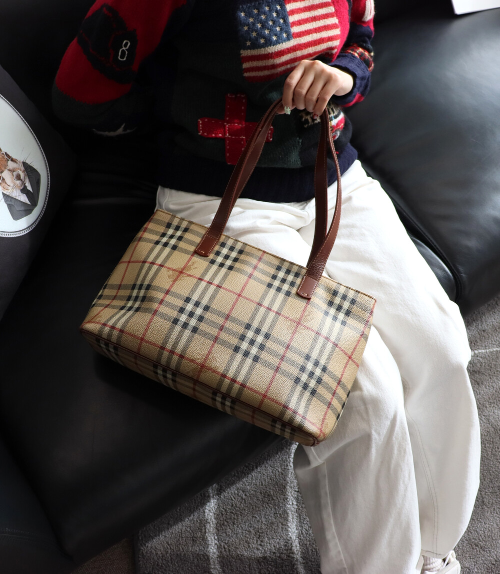 빈티지 버버리 헤이마켓 토트백입니다.