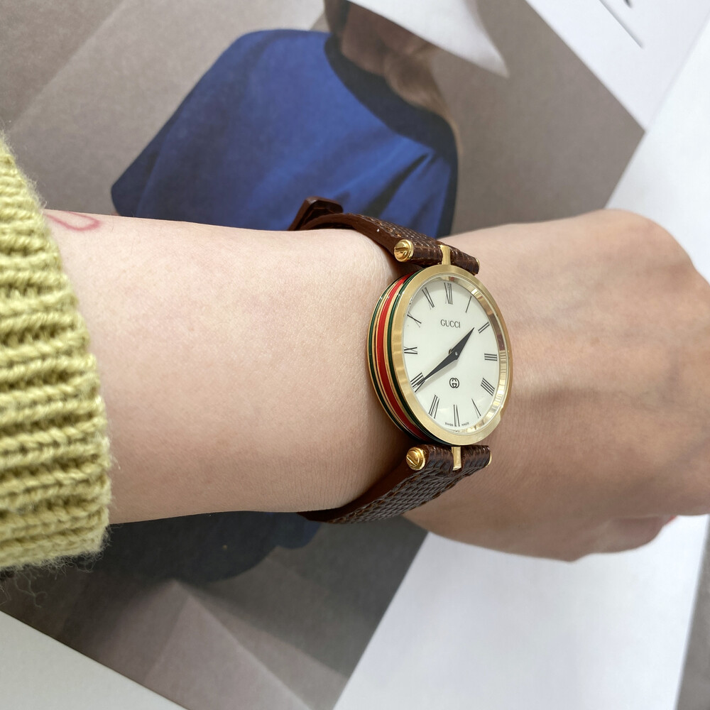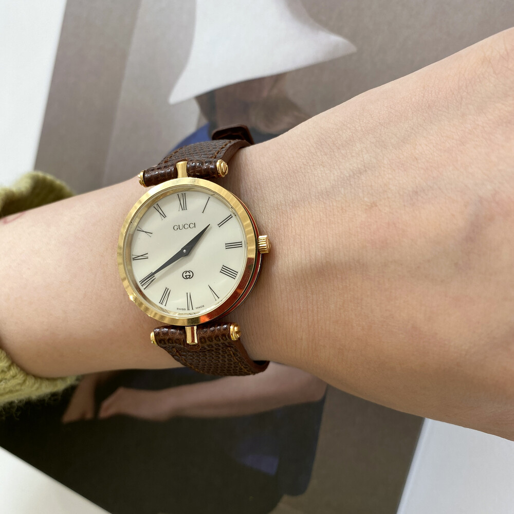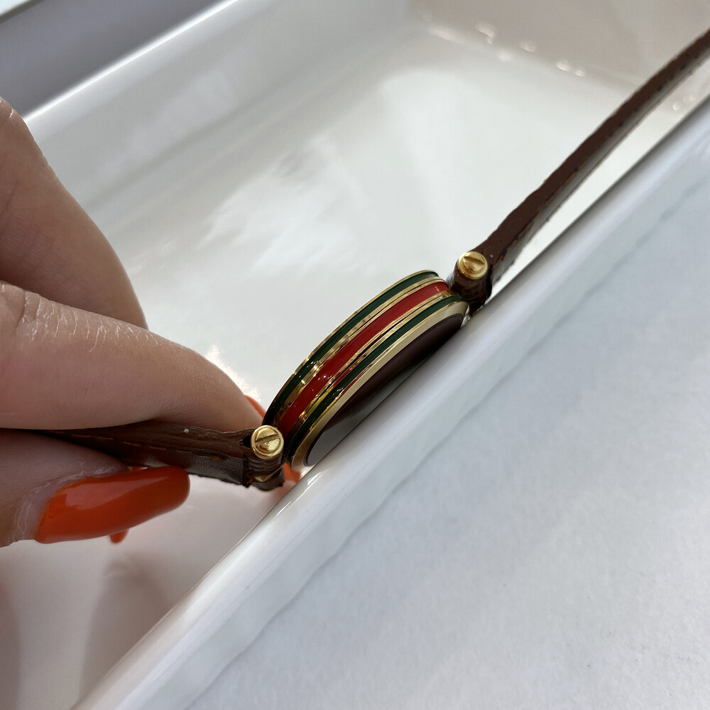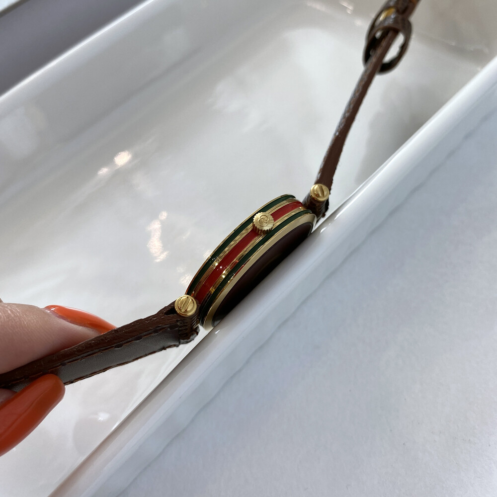 시계를 부드럽게 감싸주는 구찌 시그니처 쉐리 라인이 아름다운 제품입니다.