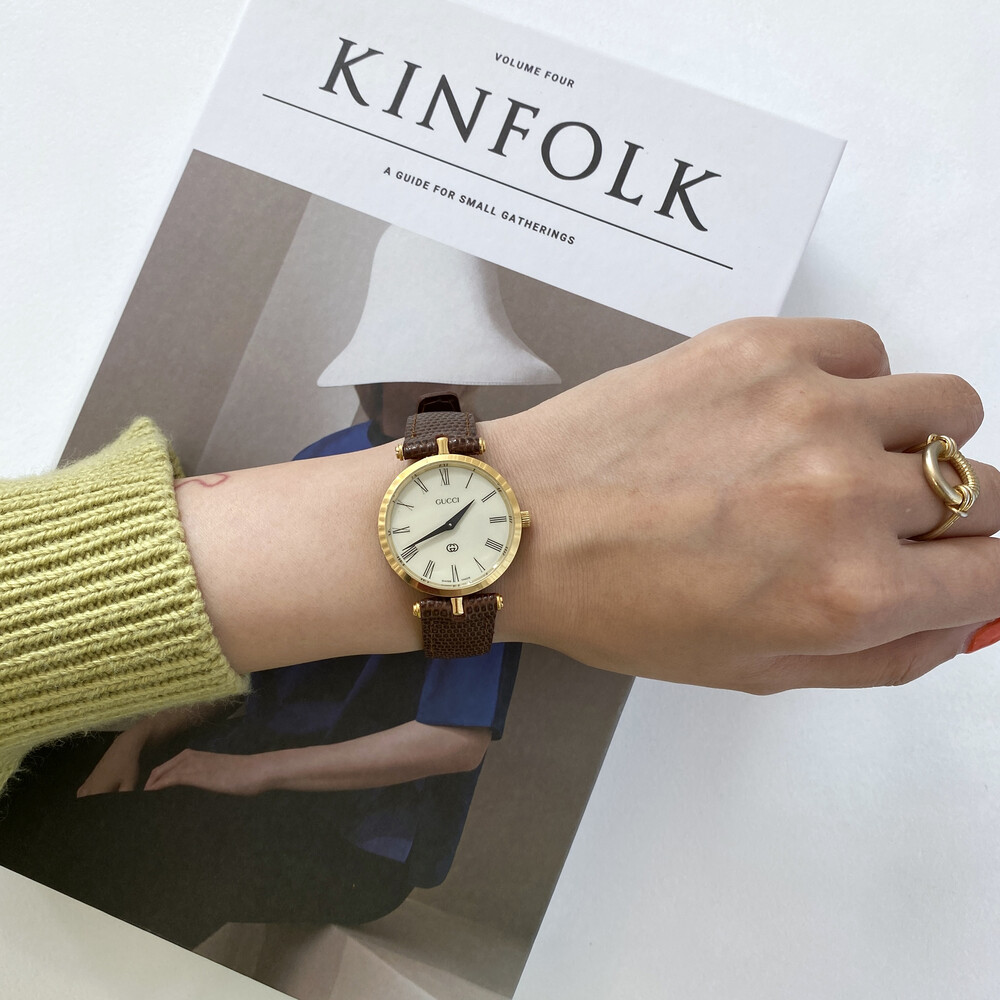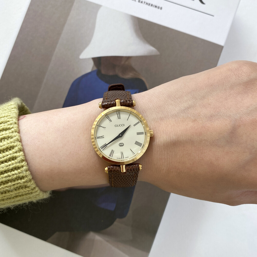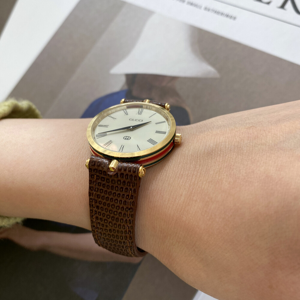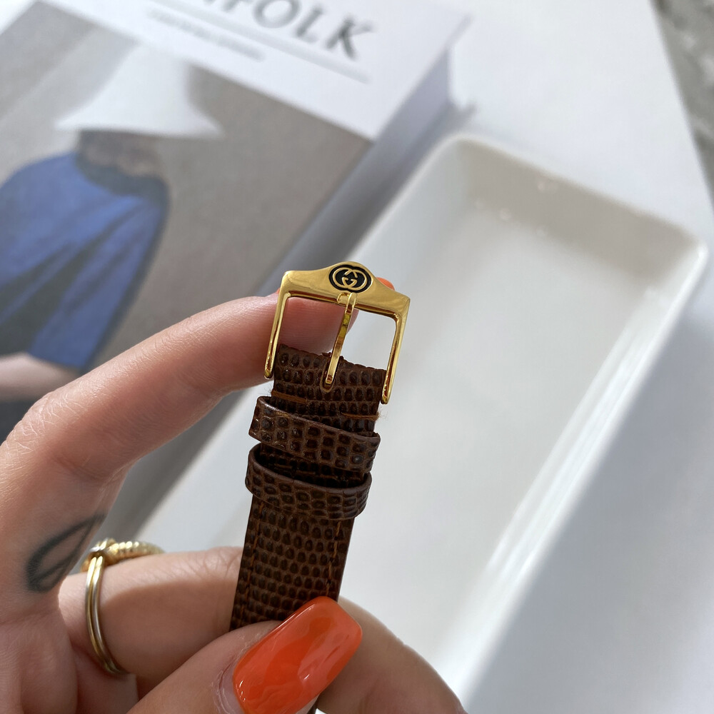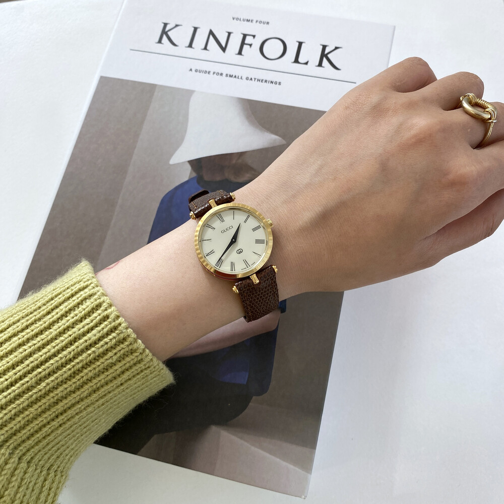 시계를 부드럽게 감싸주는 구찌 시그니처 쉐리 라인이 아름다운 제품입니다.