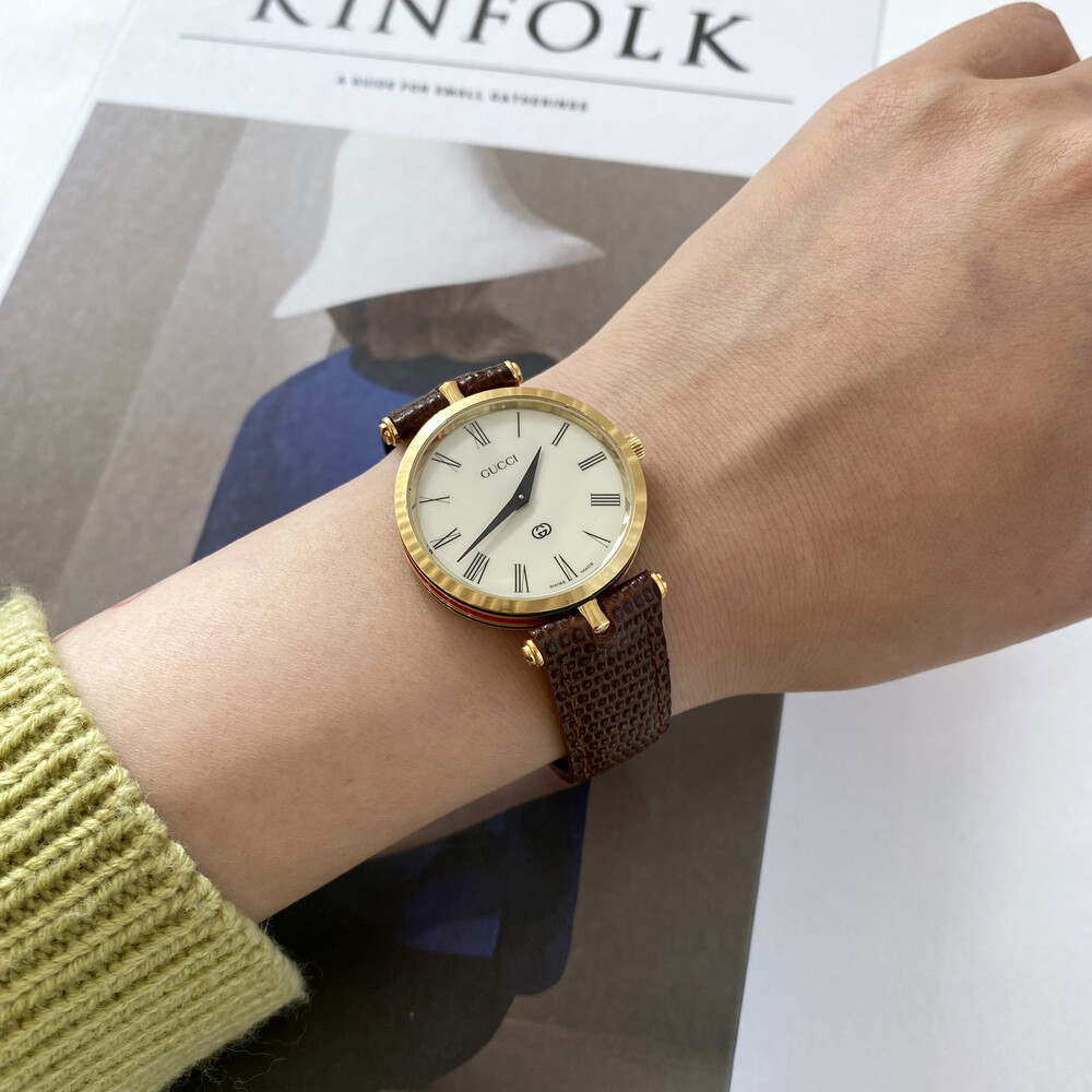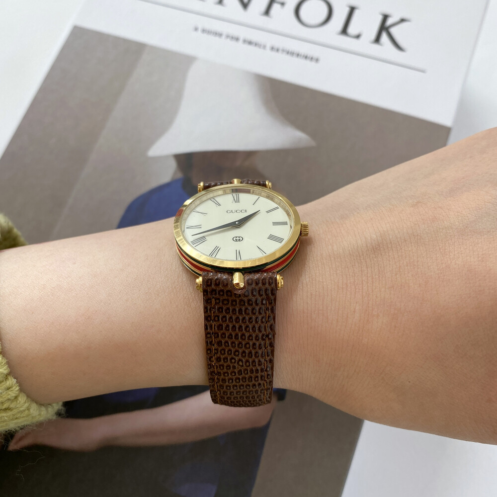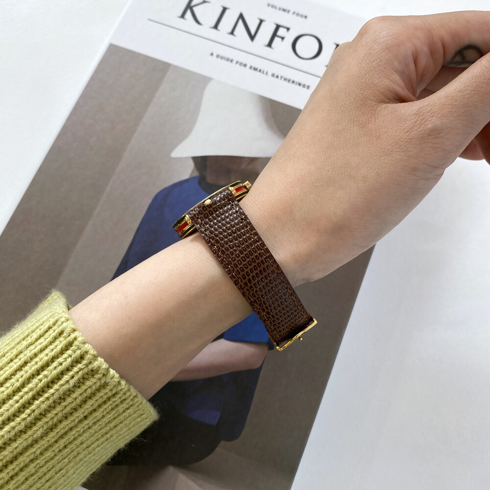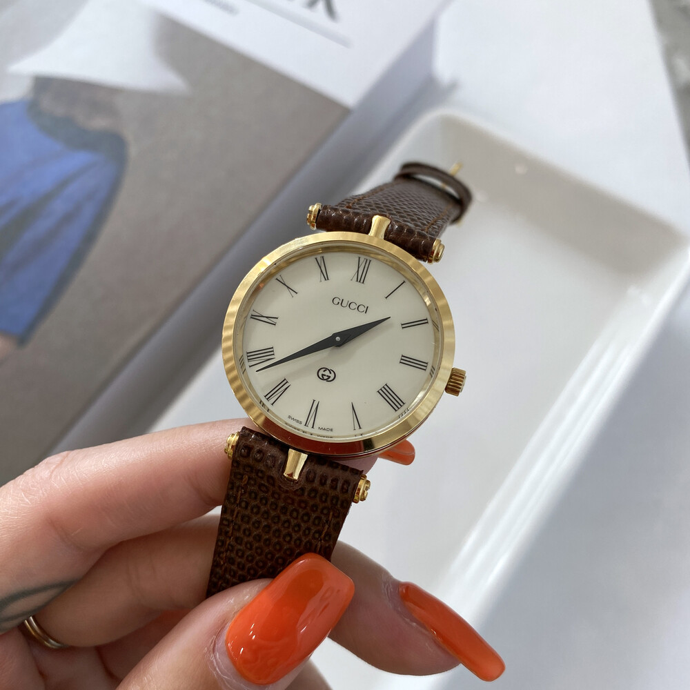 시계를 부드럽게 감싸주는 구찌 시그니처 쉐리 라인이 아름다운 제품입니다.