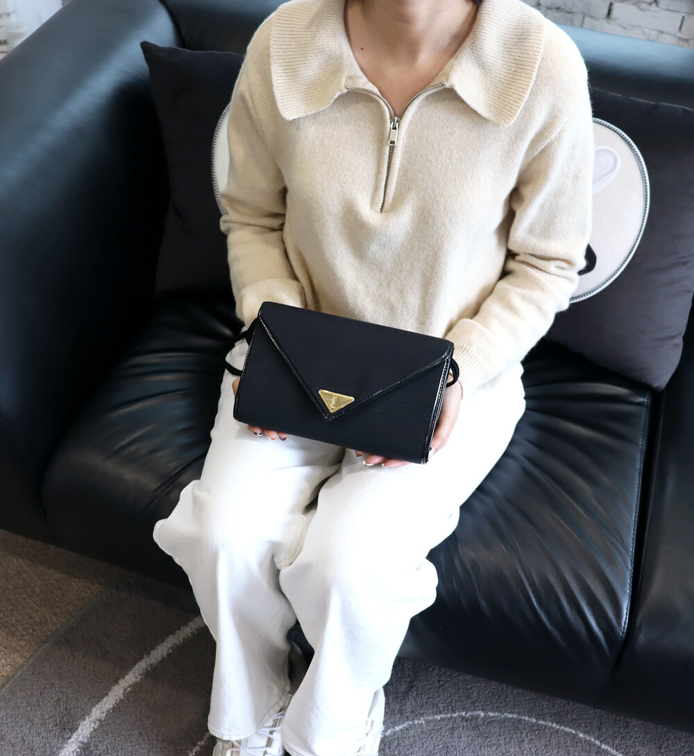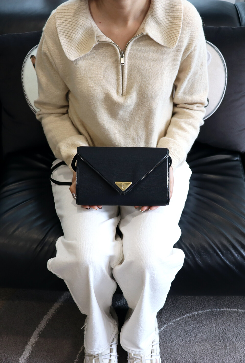 부드러운 나일론 바디와 중앙의 생로랑 클로저 장식이 매력적인 모델입니다.