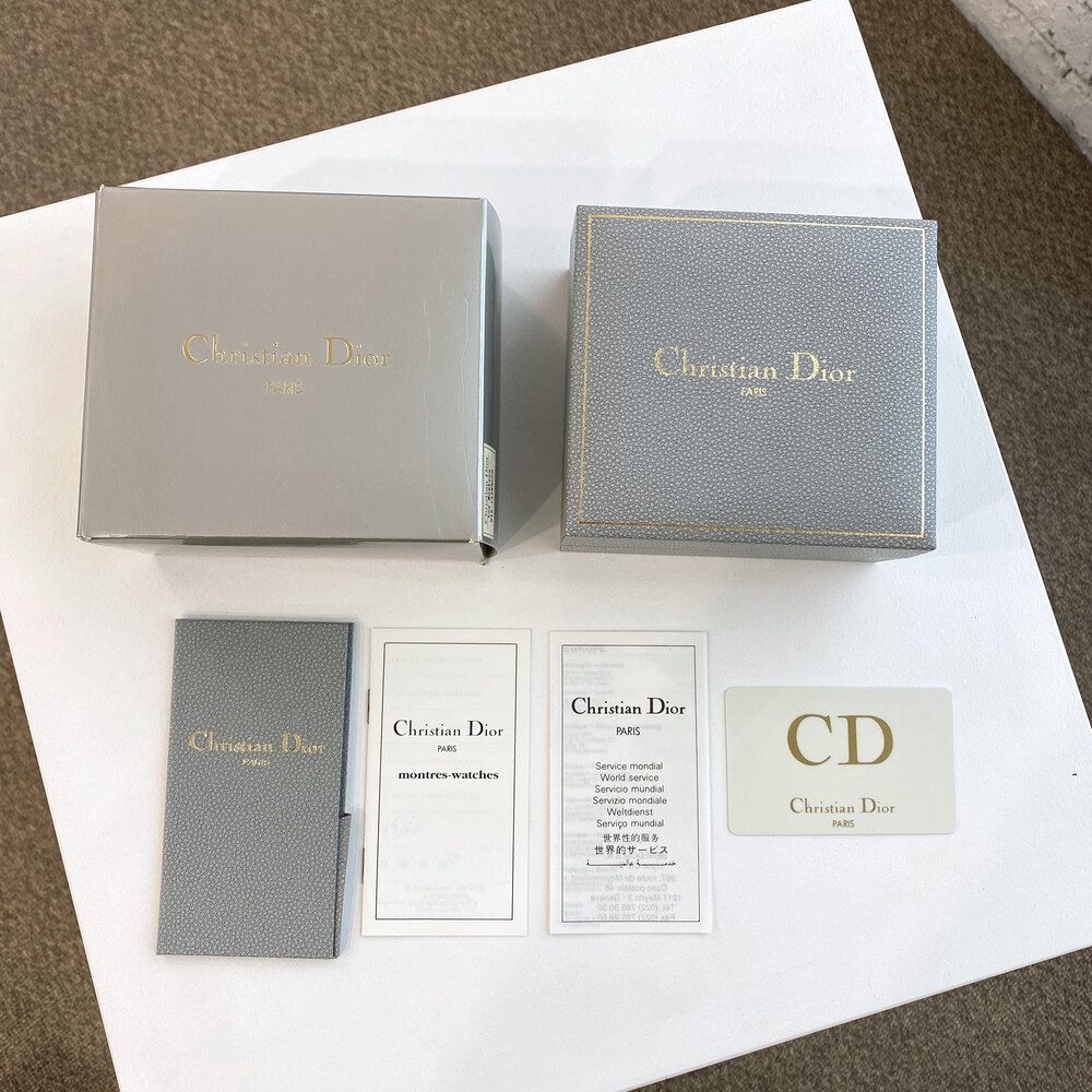 디올 시계 케이스, 상자, 서비스센터 책자, 개런티 카드가 포함된 제품입니다.