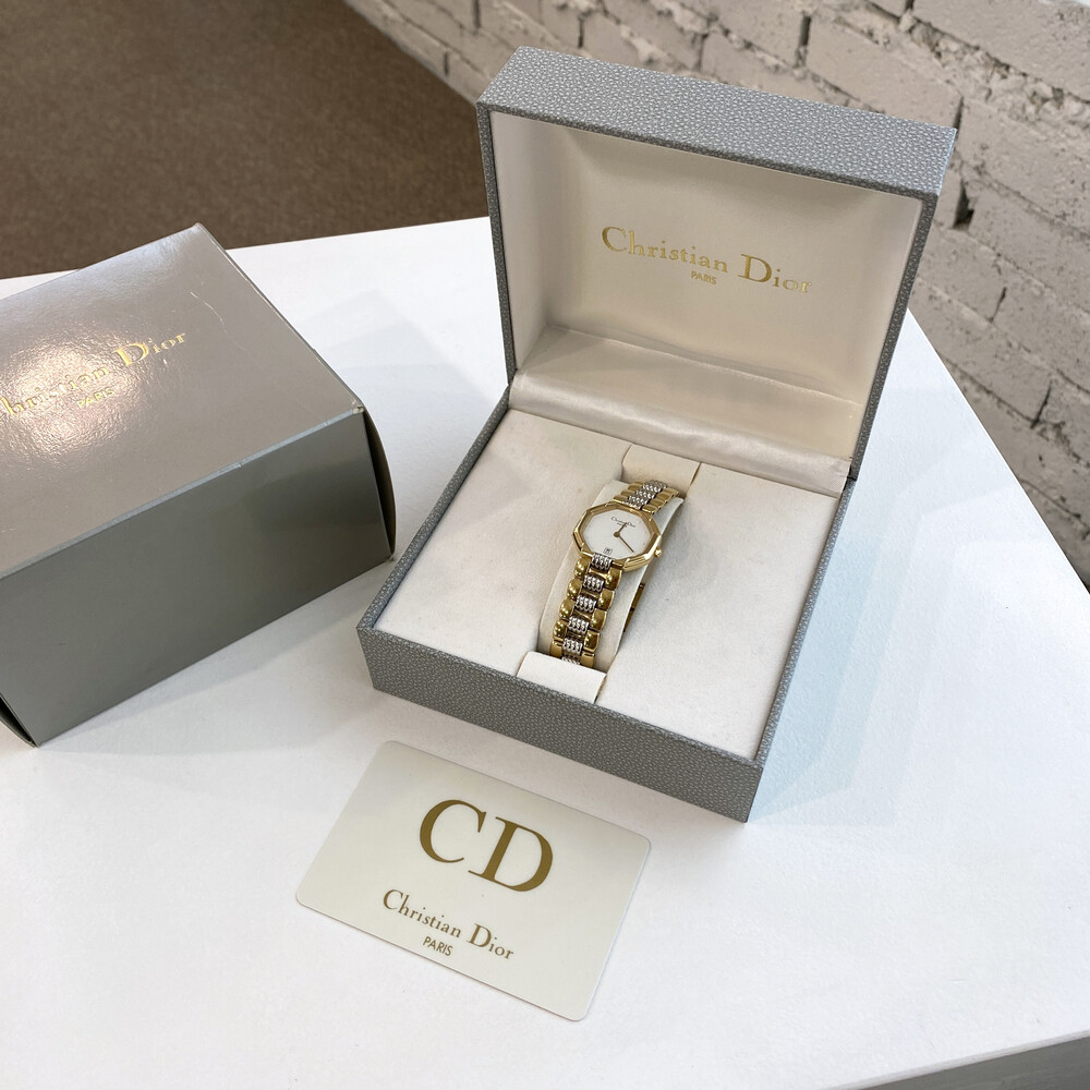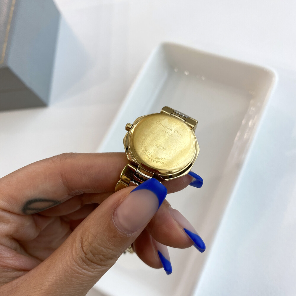 여성용으로 제작된 빈티지 디올 시계이며 스위스에서 생산된 쿼츠 무브먼트로 제작되었습니다.