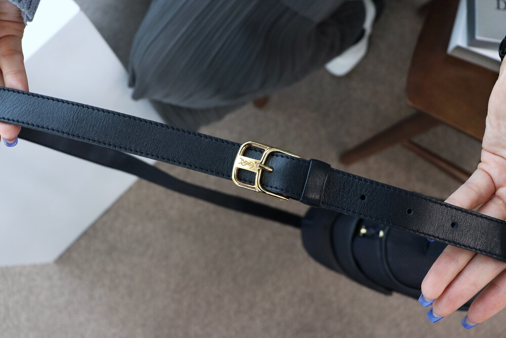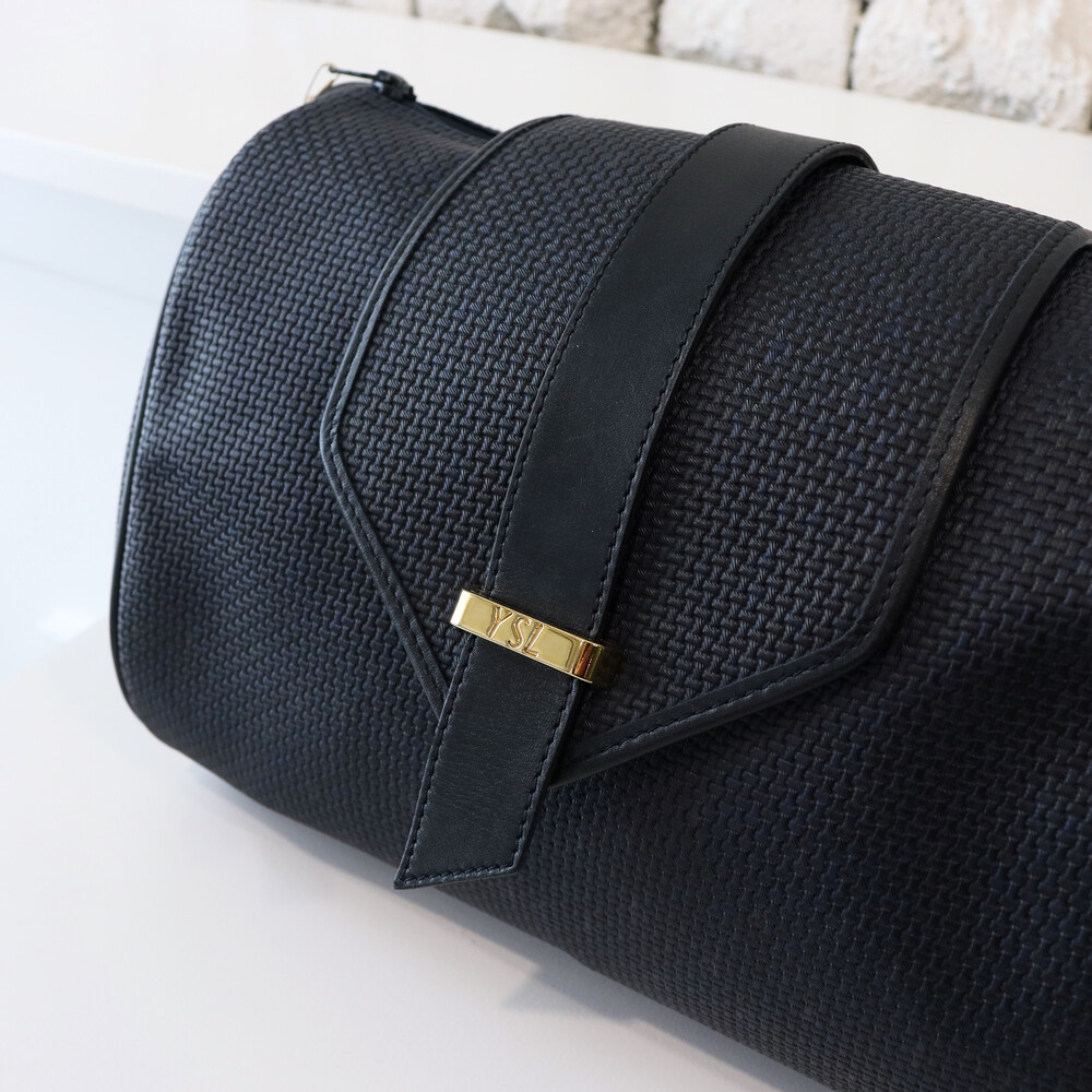 중앙의 YSL 생로랑 시그니처 금장 장식이 매력적인 크로스백입니다.