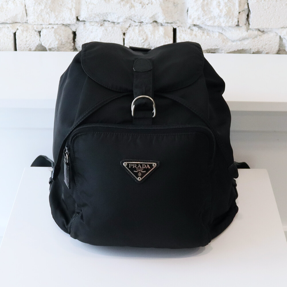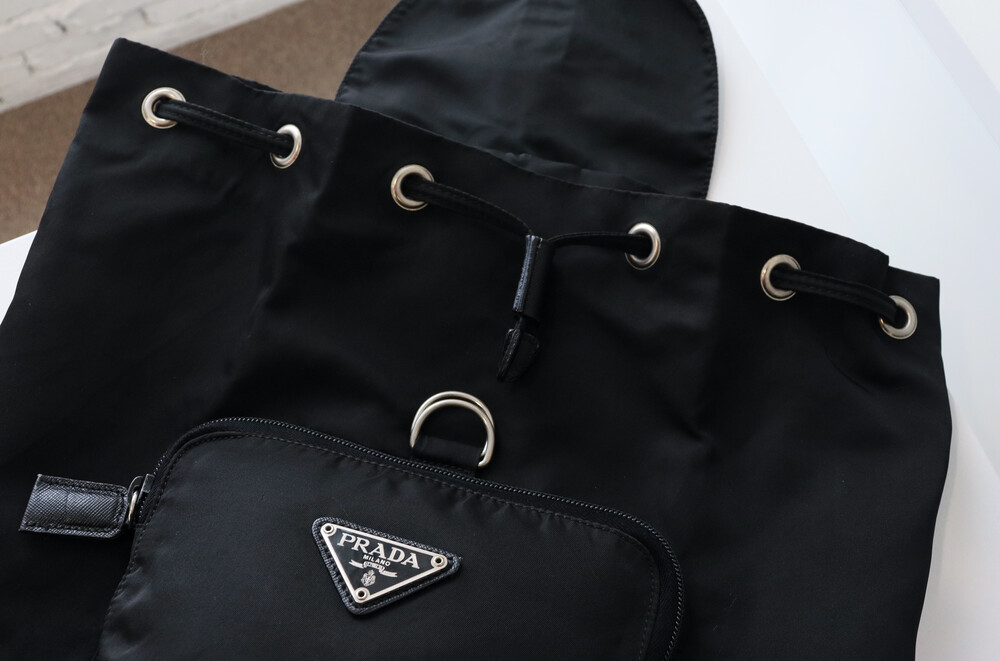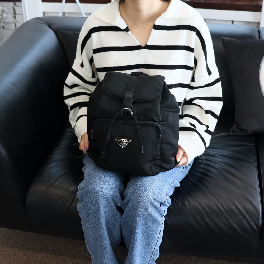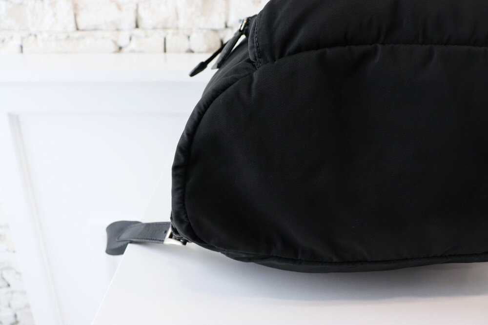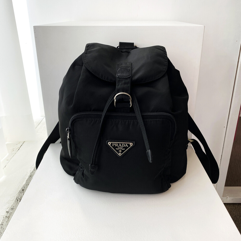 프라다 헤리티지 나일론 바디와 프라다 삼각 플레이트 장식이 매력적인 모델입니다.