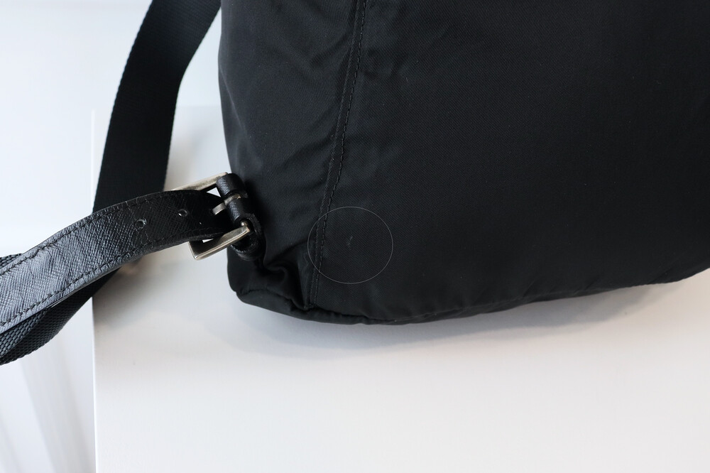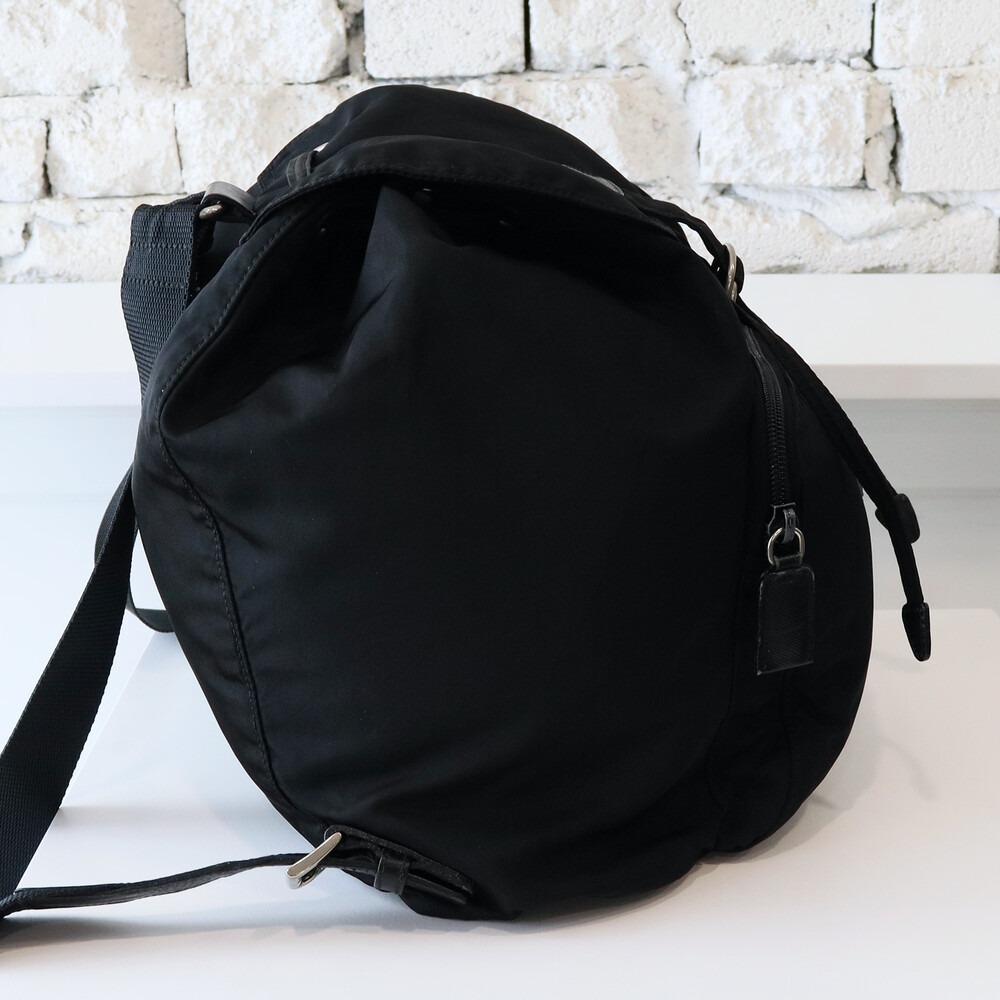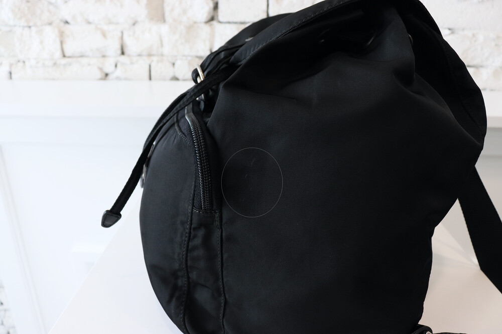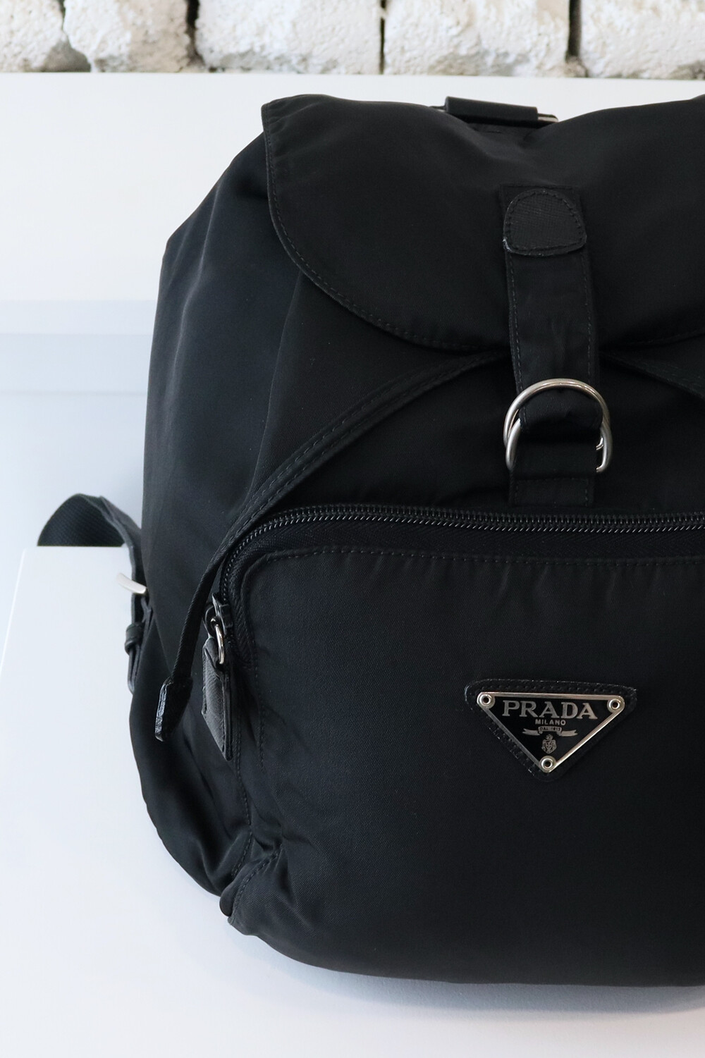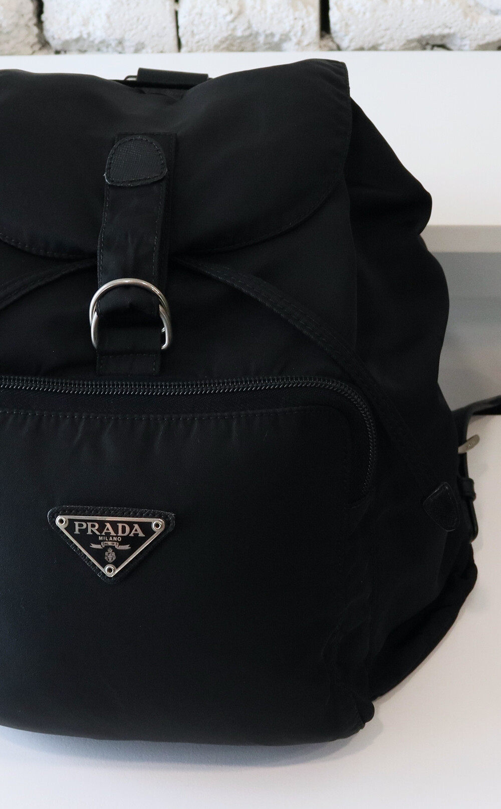 프라다 헤리티지 나일론 바디와 프라다 삼각 플레이트 장식이 매력적인 모델입니다.