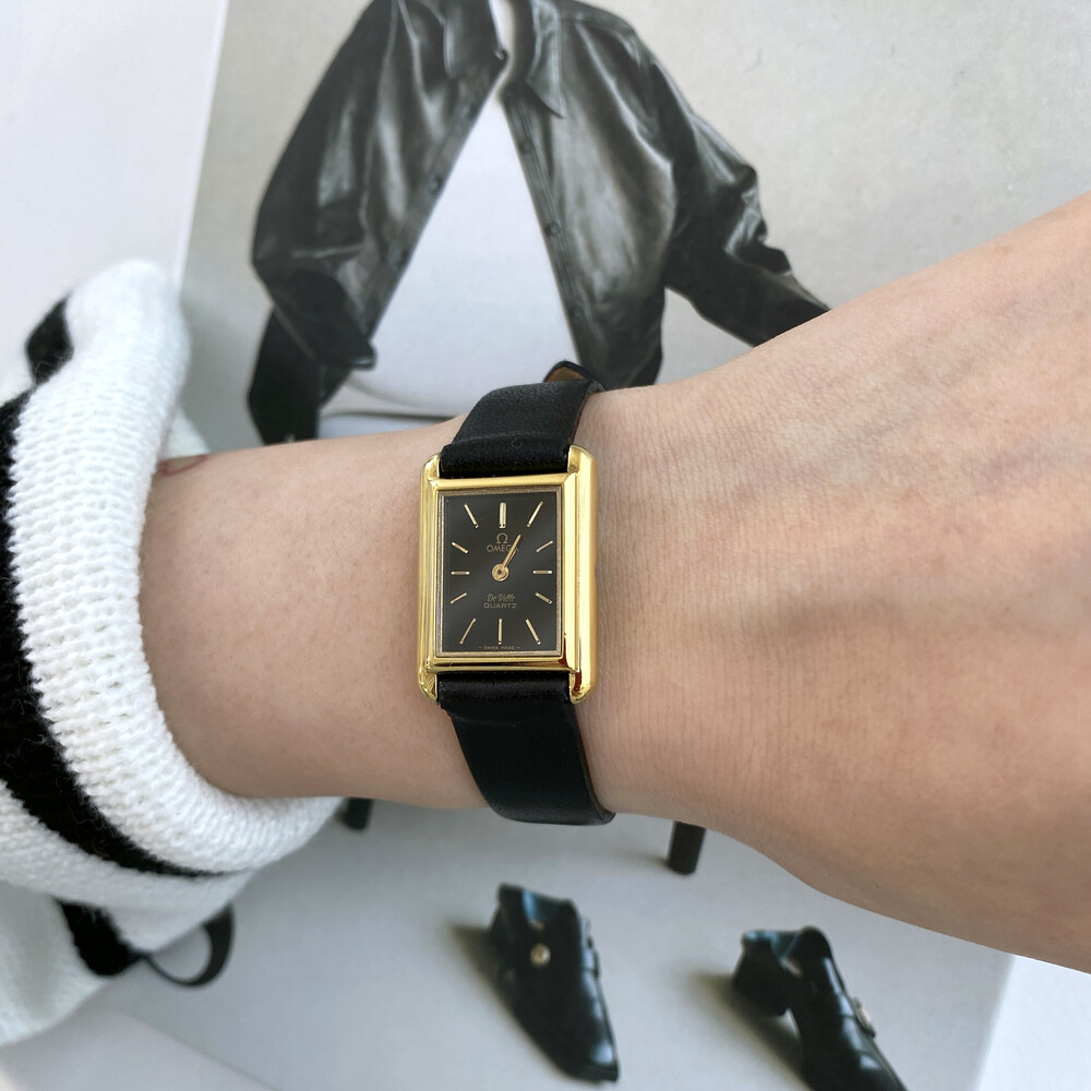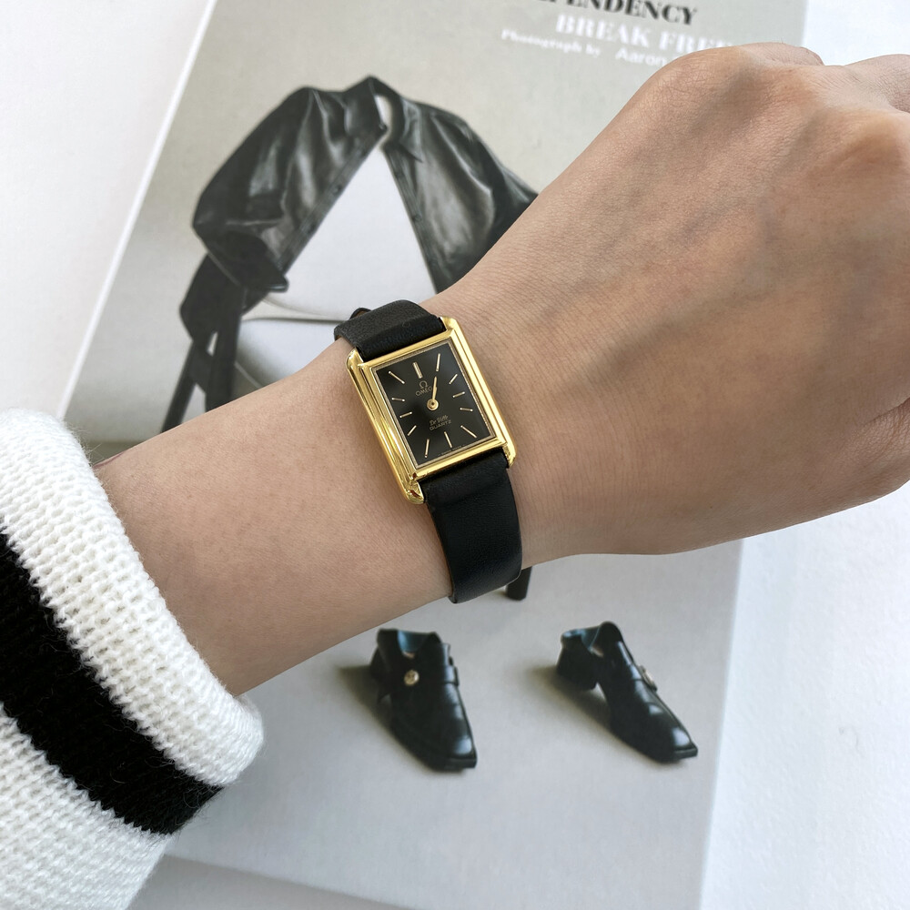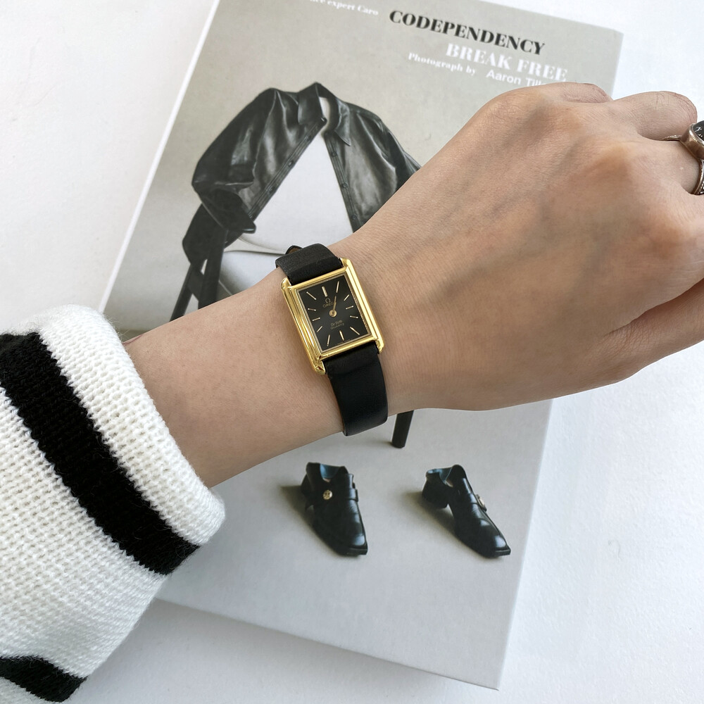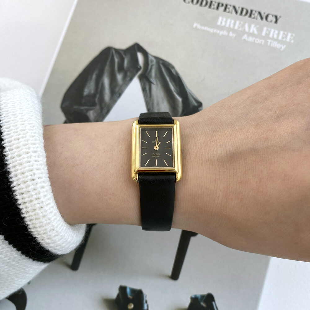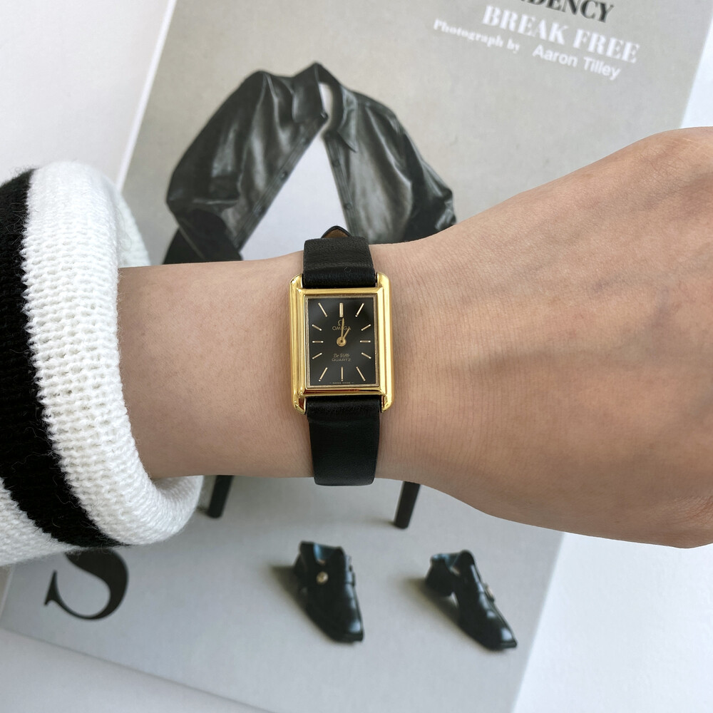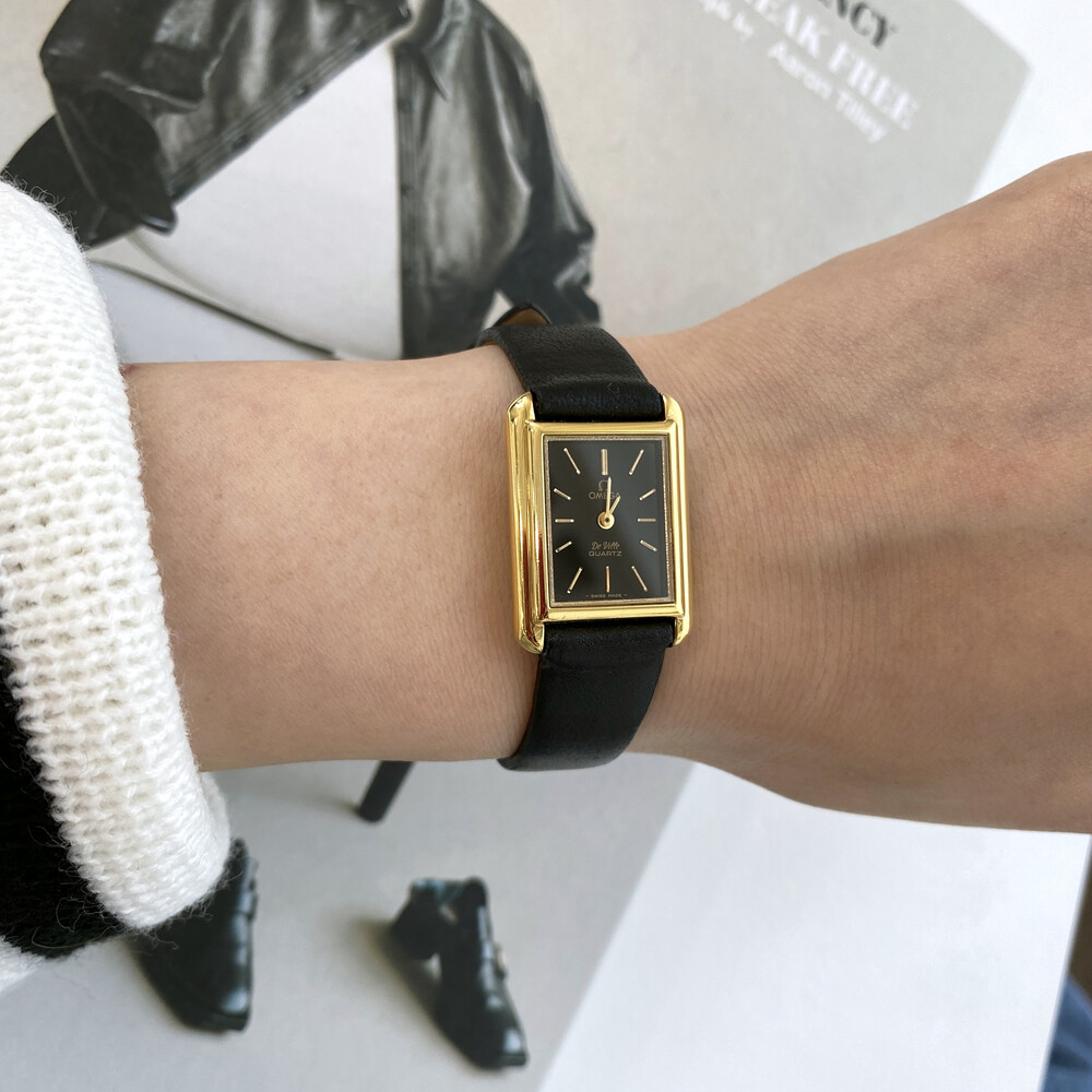 1980년도에 제작된 오메가 드빌 모델로 골드 톤 스퀘어 케이스와