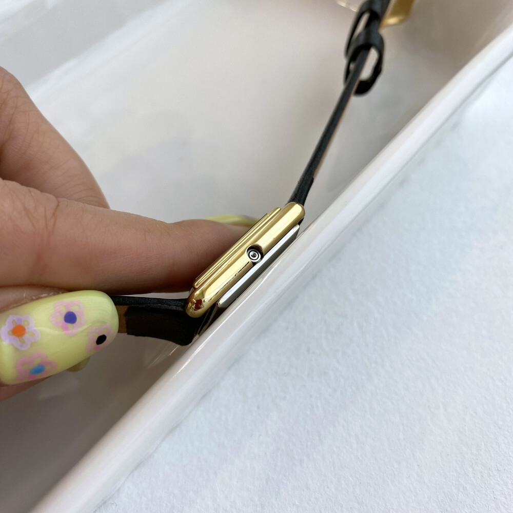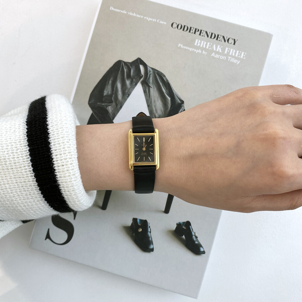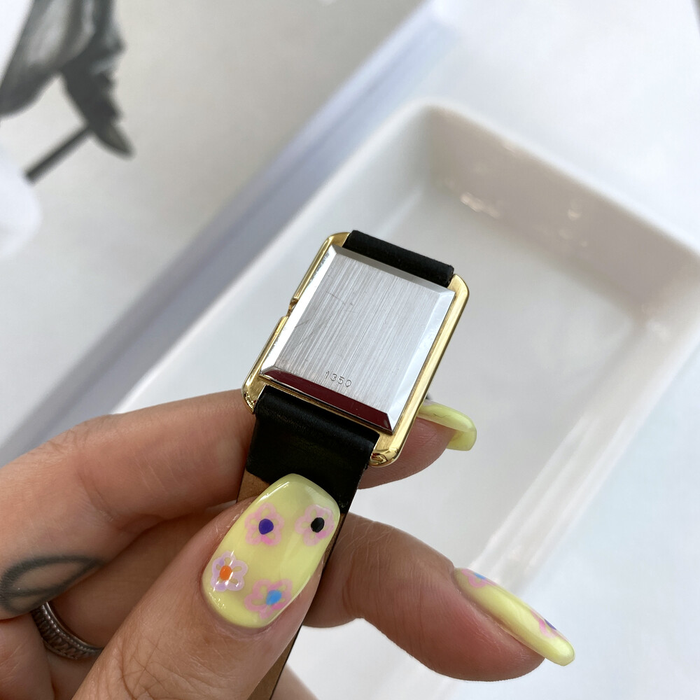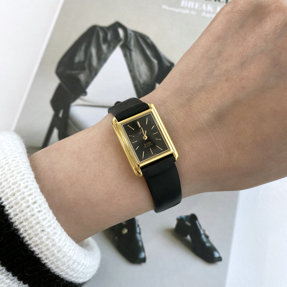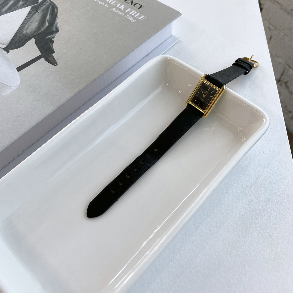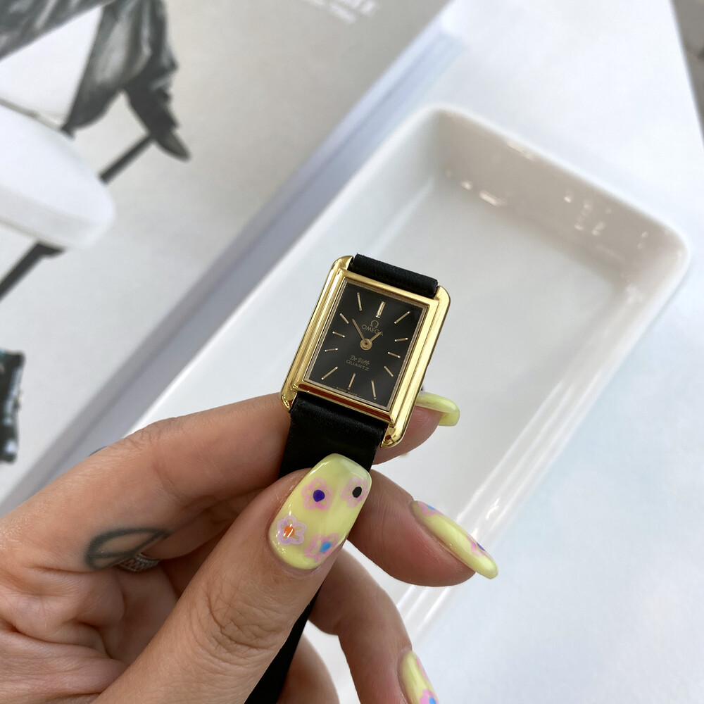 1980년도에 제작된 오메가 드빌 모델로 골드 톤 스퀘어 케이스와