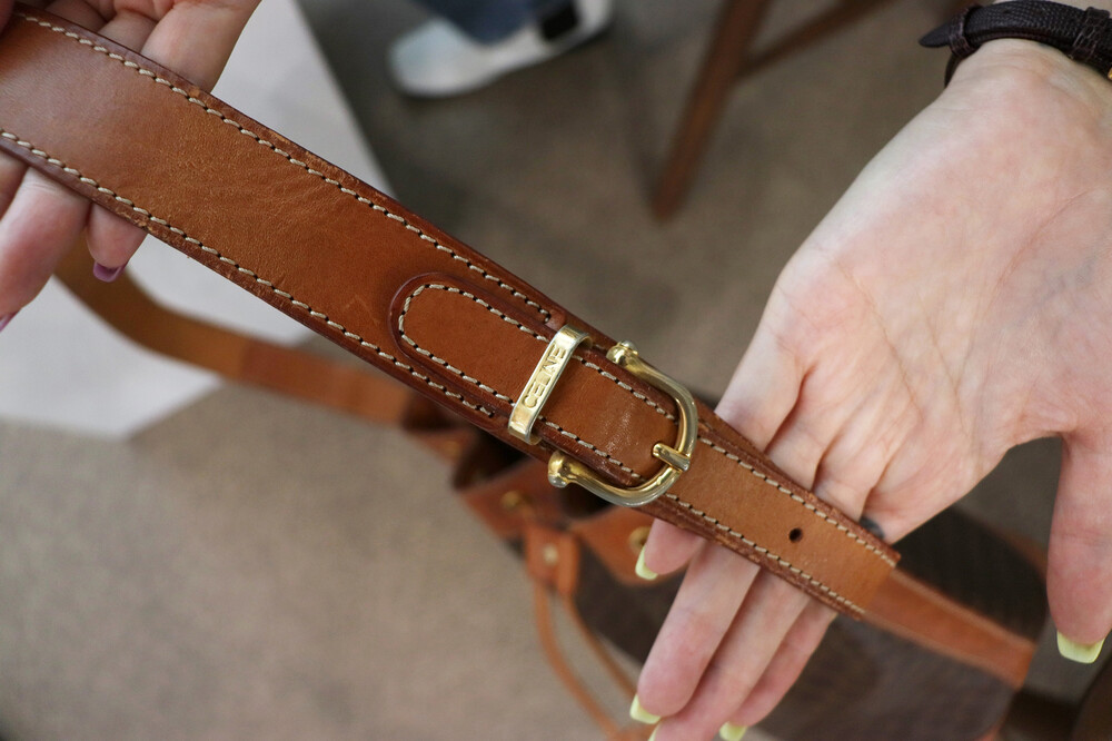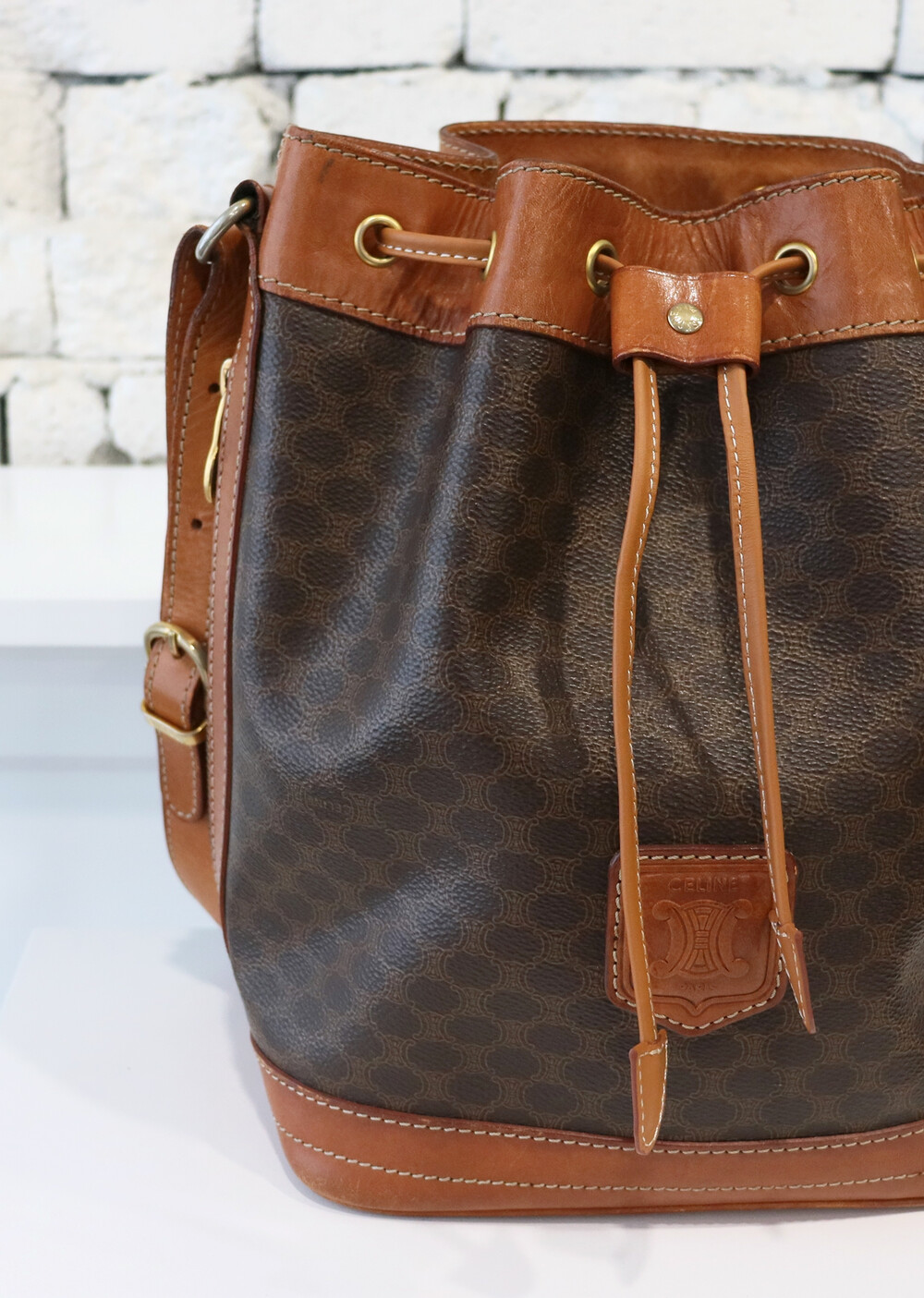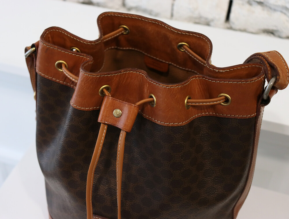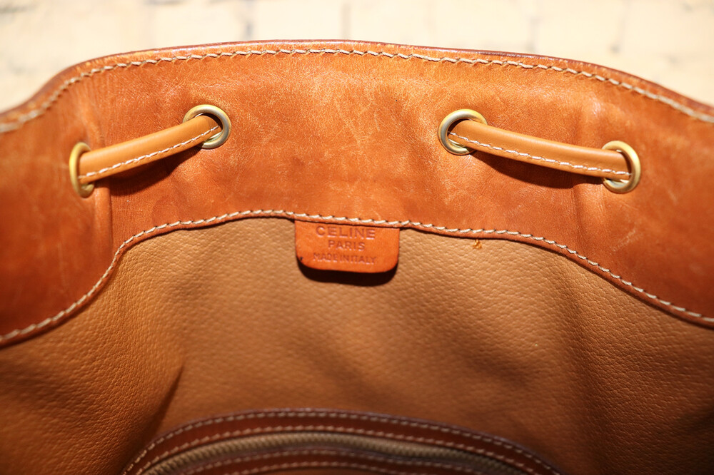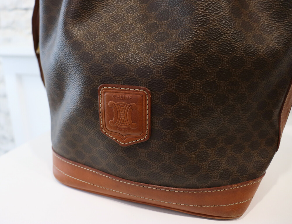 부드러운 셀린느 시그니처 마카담 바디와 에이징 된 브라운 톤의 가죽 트림이