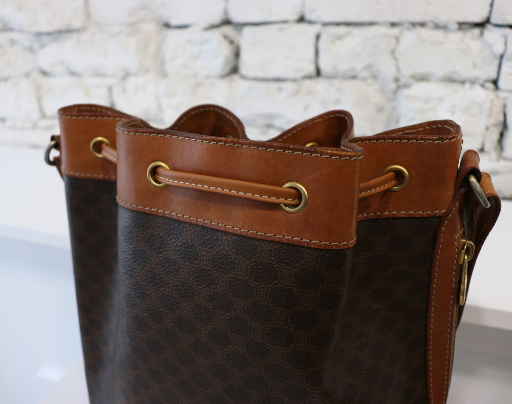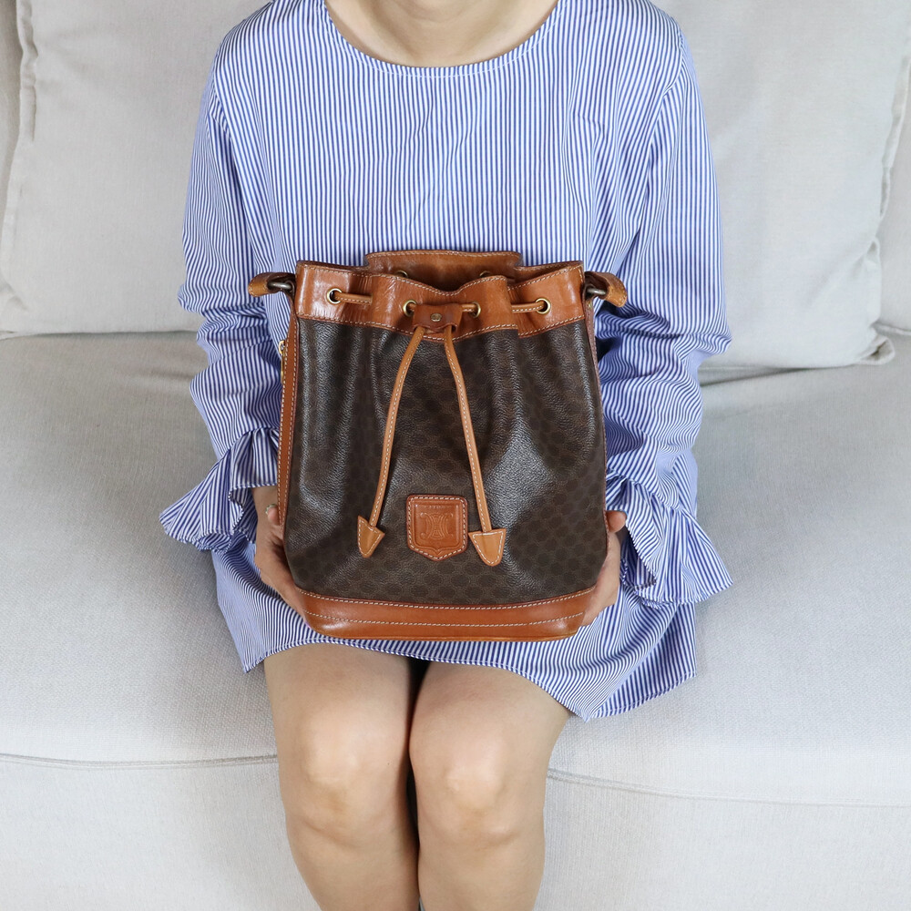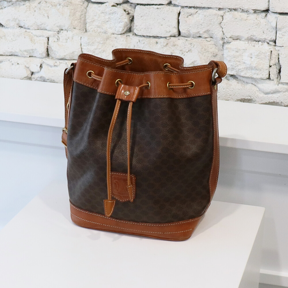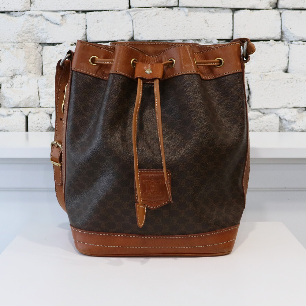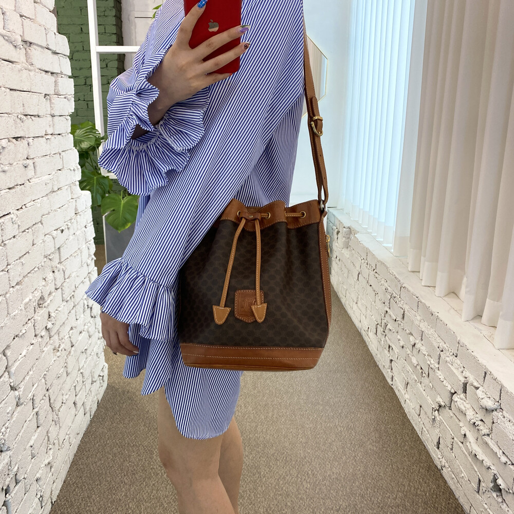 부드러운 셀린느 시그니처 마카담 바디와 에이징 된 브라운 톤의 가죽 트림이